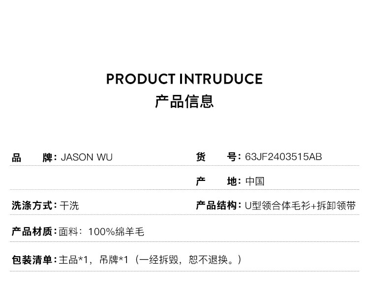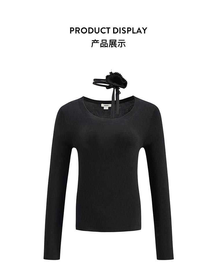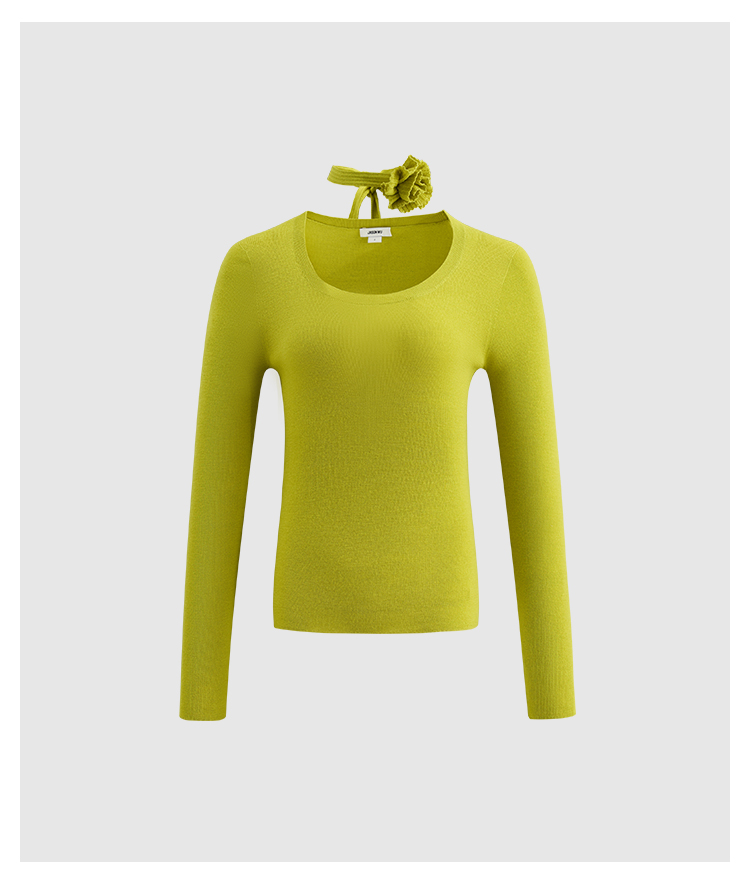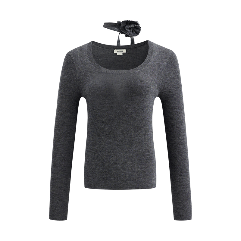 【JASON WU】(多色)秋冬新款U领花朵简约设计感羊毛无缝上衣毛衣针织衫女