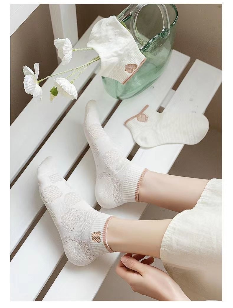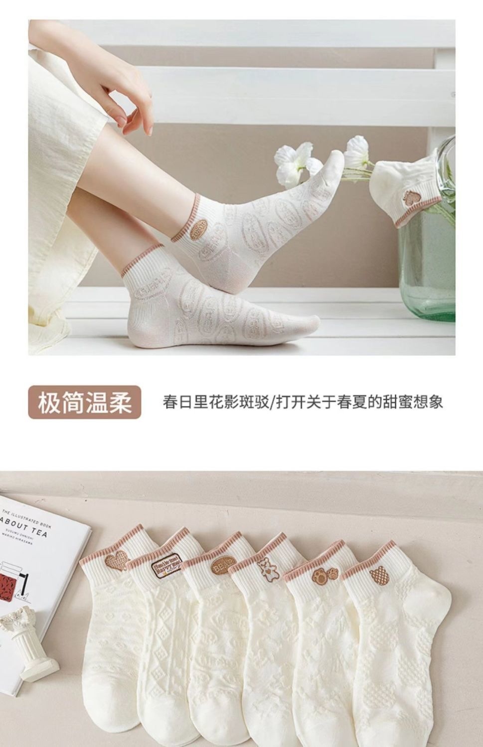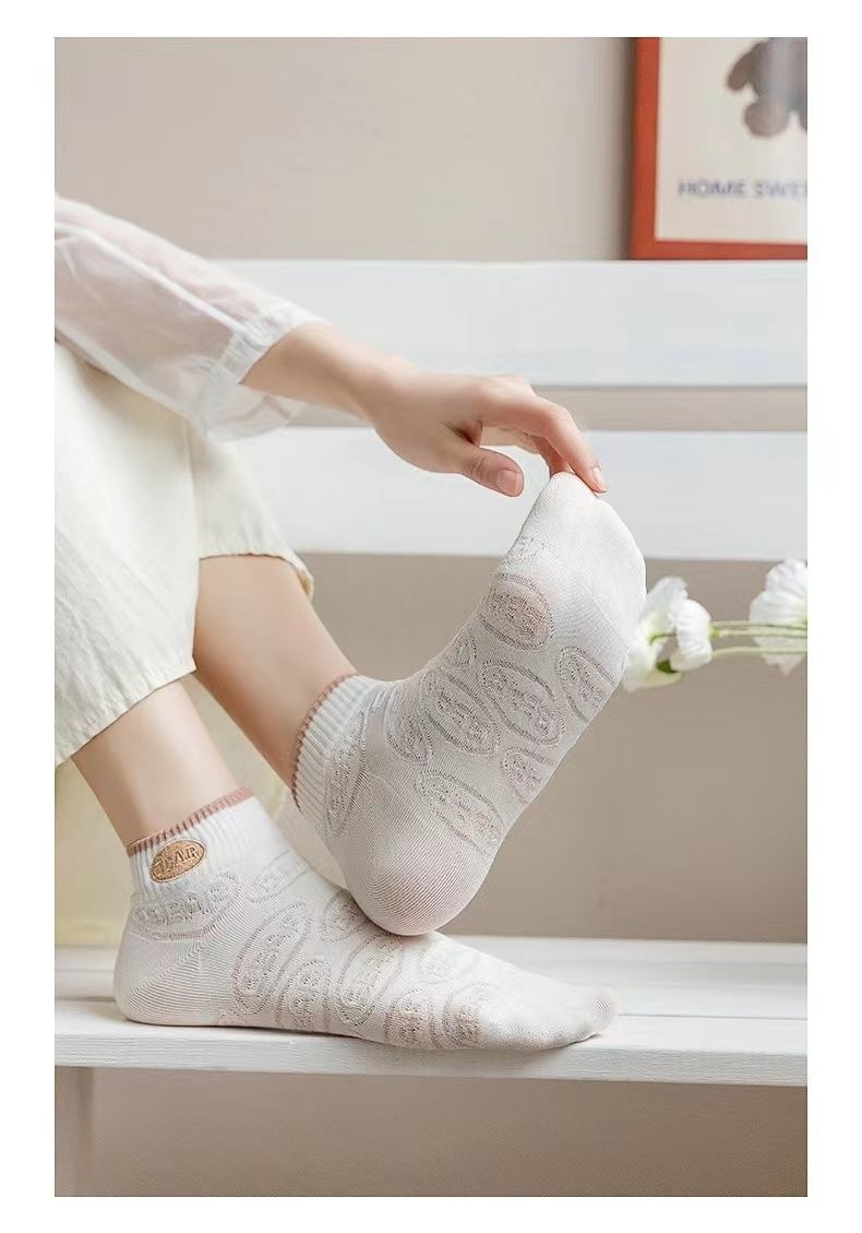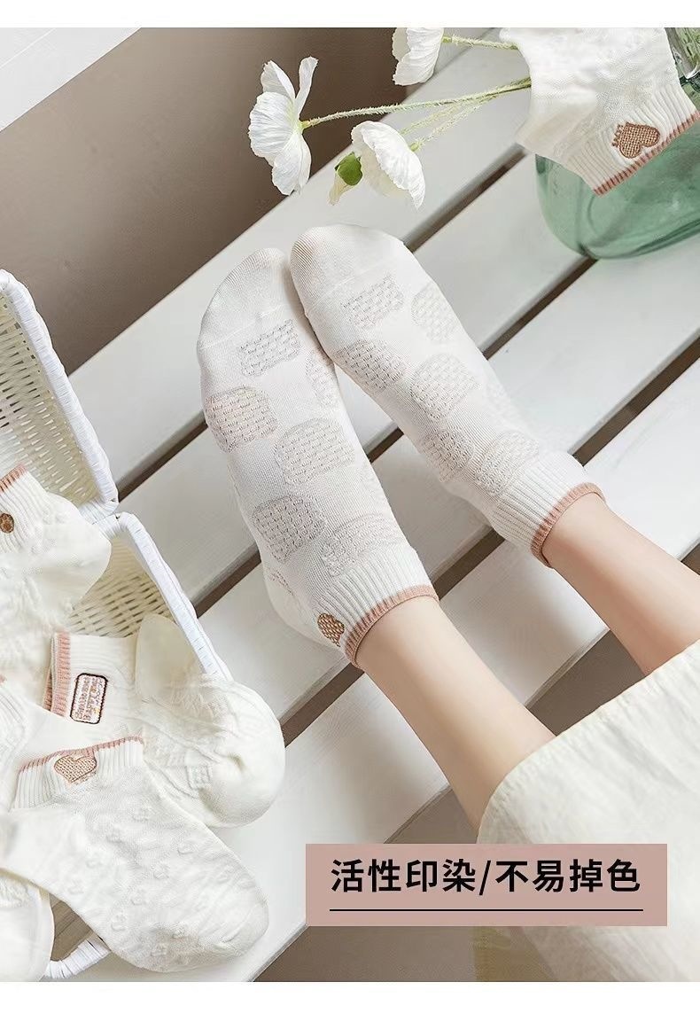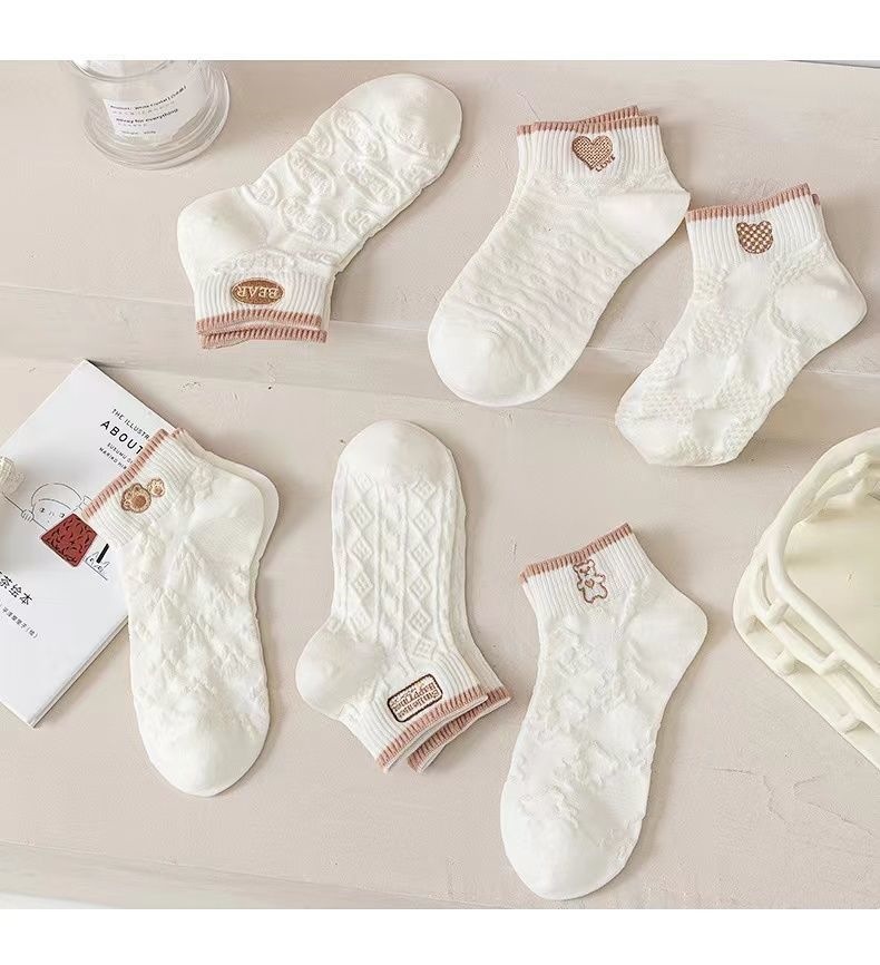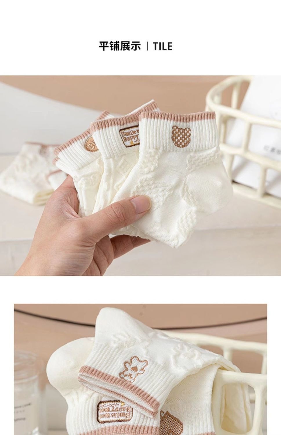 「9.9元到手5双!抖音同款」白色短袜女夏季夏天小熊透气低帮短筒船袜配饰
