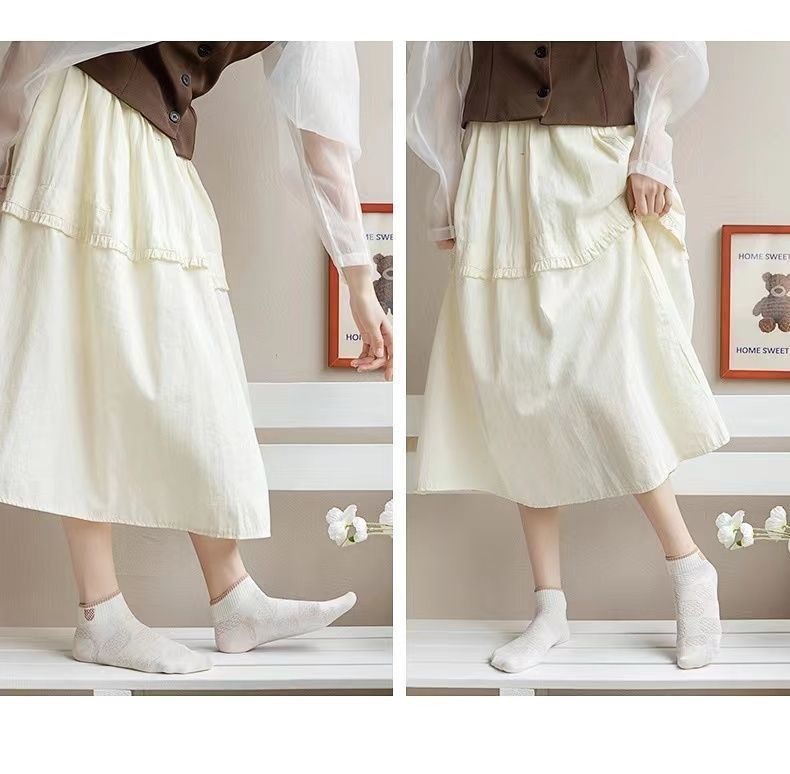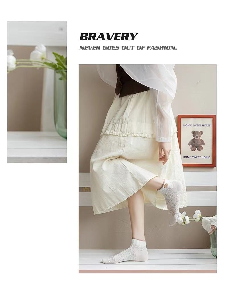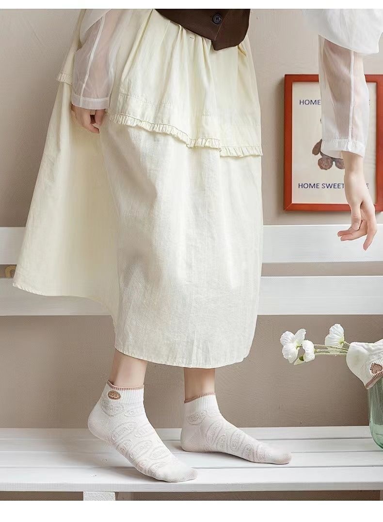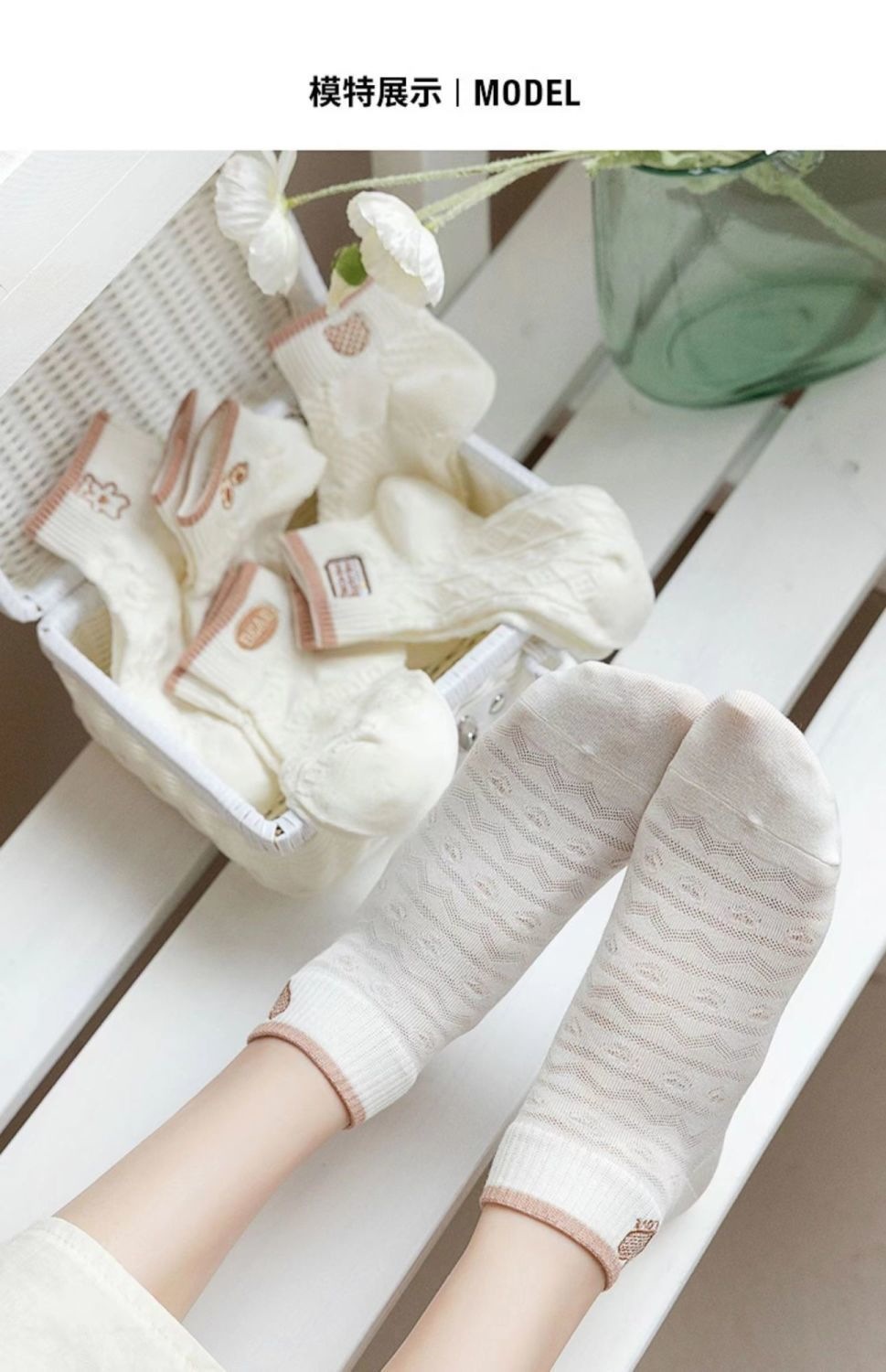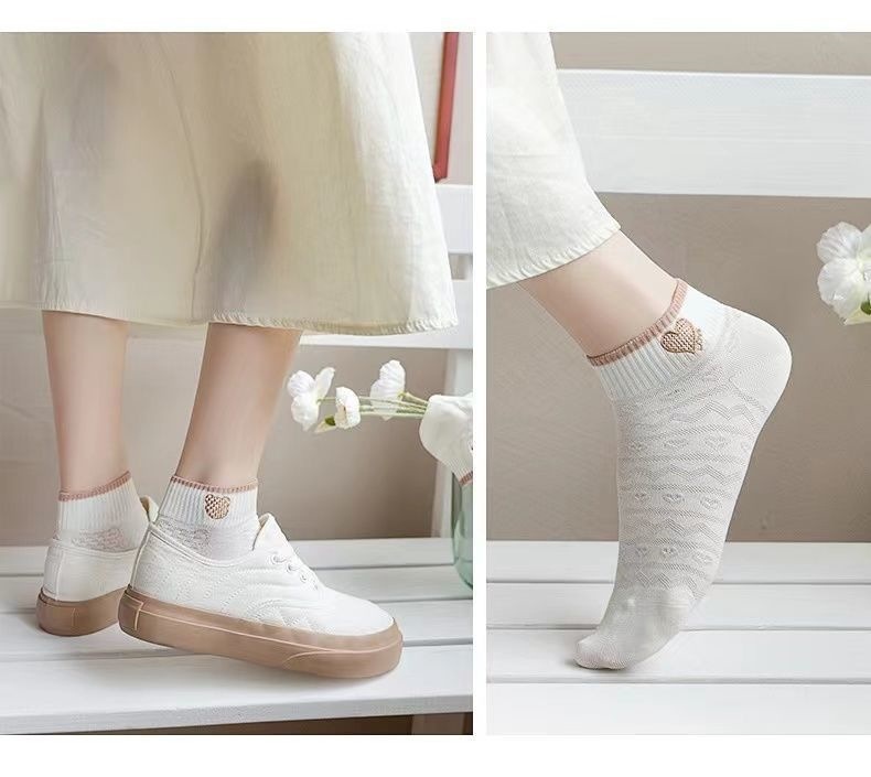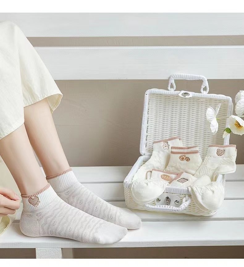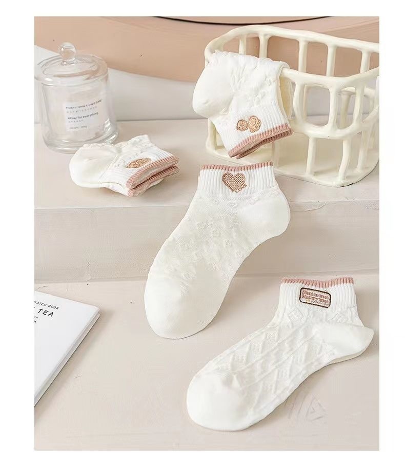 「9.9元到手5双!抖音同款」白色短袜女夏季夏天小熊透气低帮短筒船袜配饰