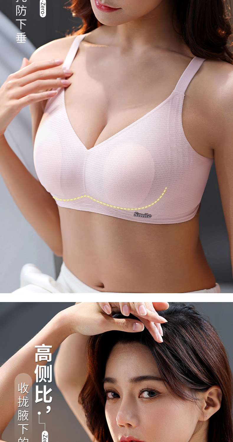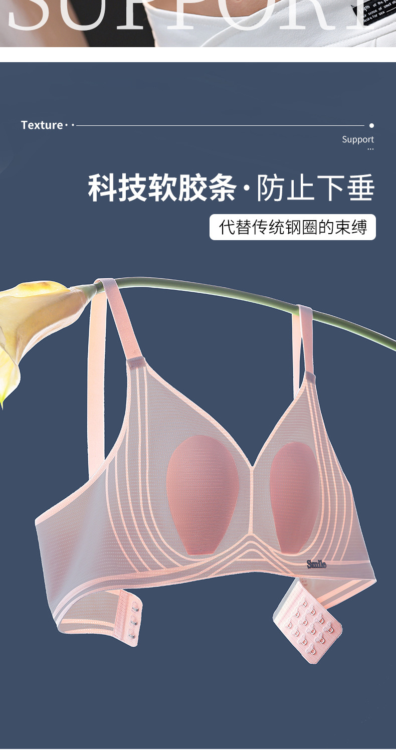 【轻薄舒适 撩人于无形!】透气贴肤不凸点 承托力绝绝子,超薄蕾丝拼接10d冰丝凉感速干透气 兔耳朵内衣大胸显小胸 女薄款防下垂聚拢收副乳 蕾丝文胸无钢圈胸罩