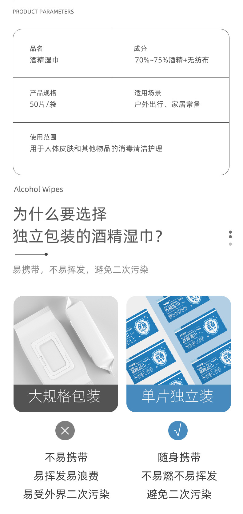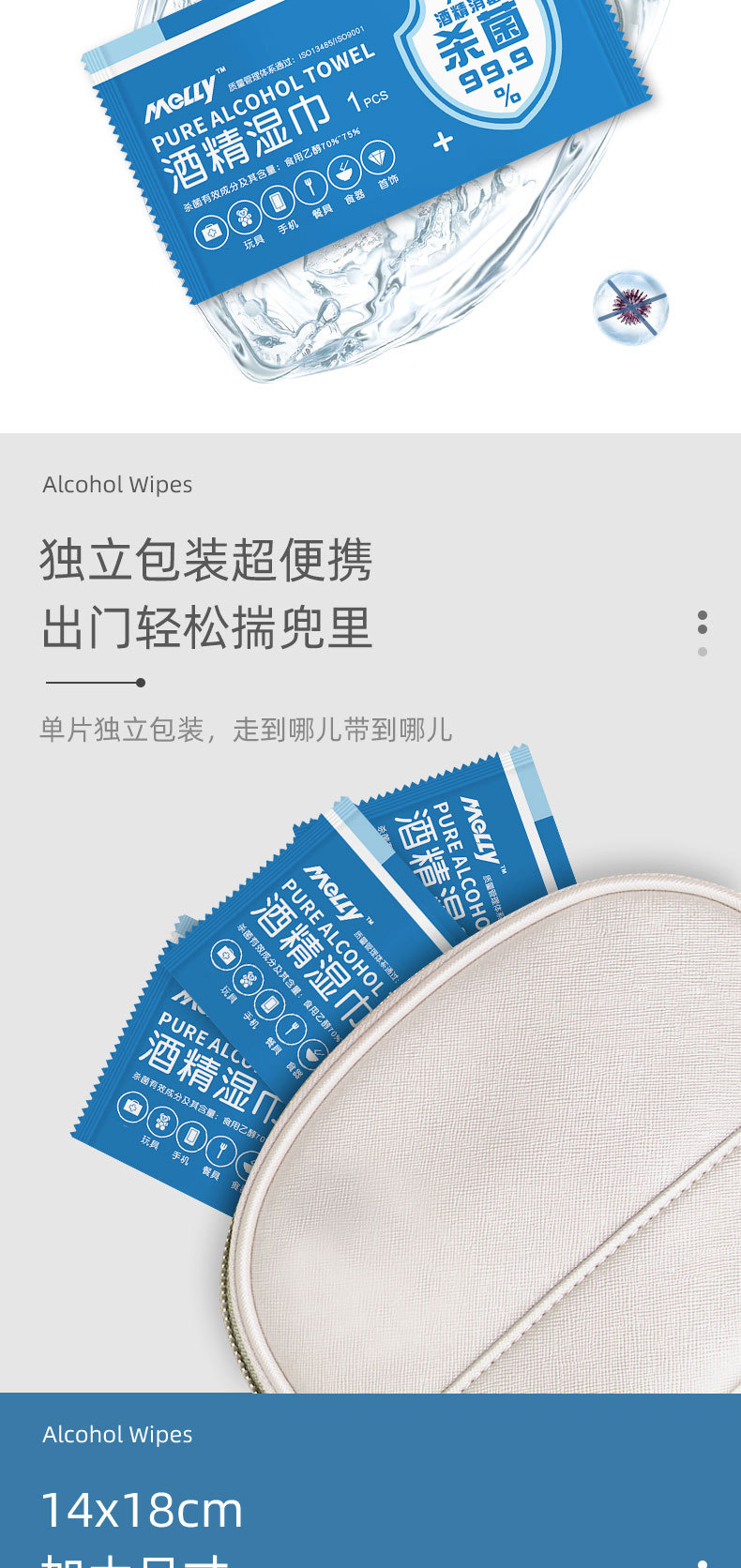 「9.9包邮!到手整袋50片」75%酒精湿巾便携一次性消毒湿巾 居家日用独立包装单片湿巾纸清洁工具