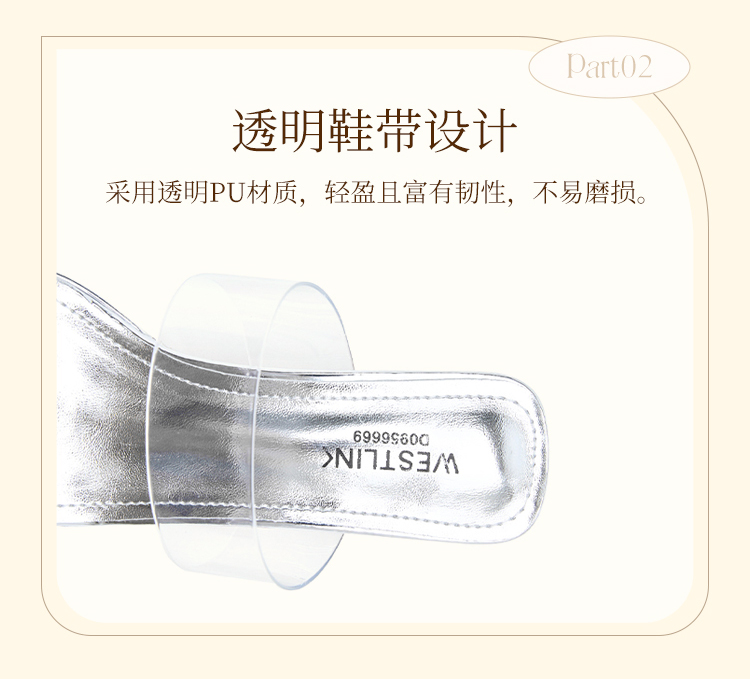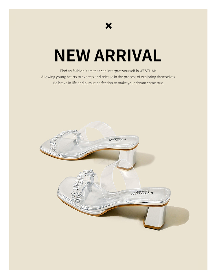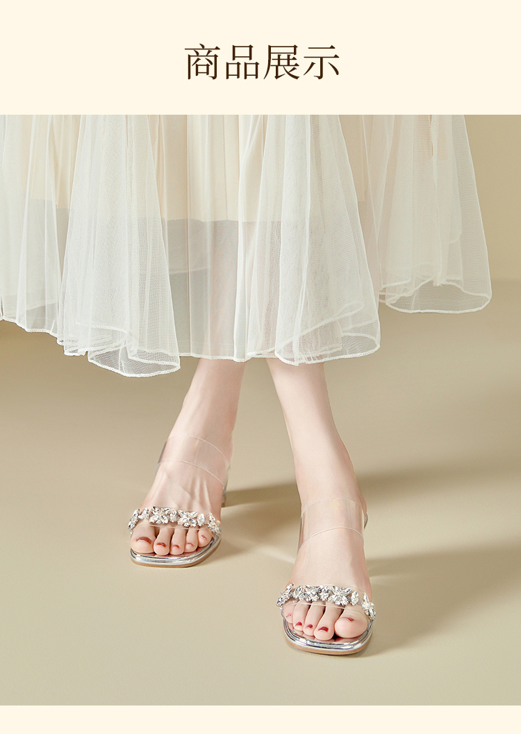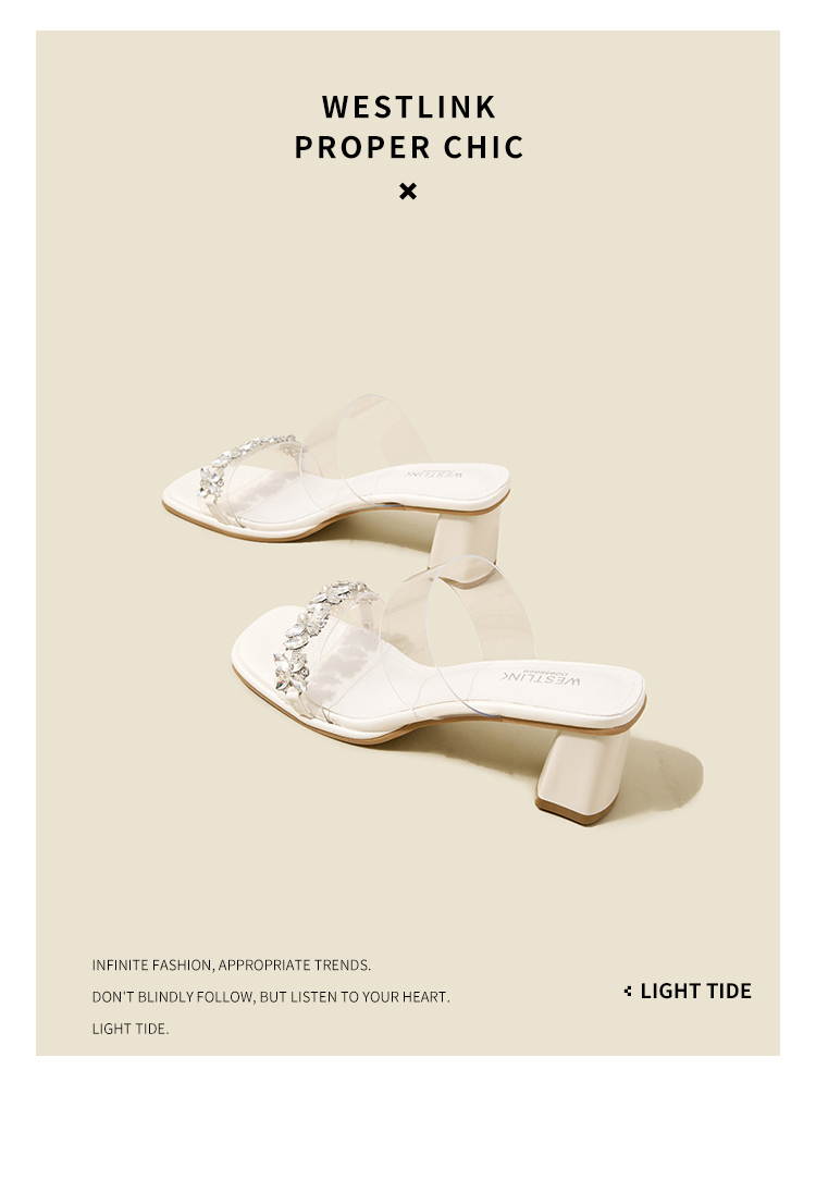 西遇外穿绝美凉拖鞋女夏季新款水钻透明一字带高跟鞋粗跟凉鞋D0956669