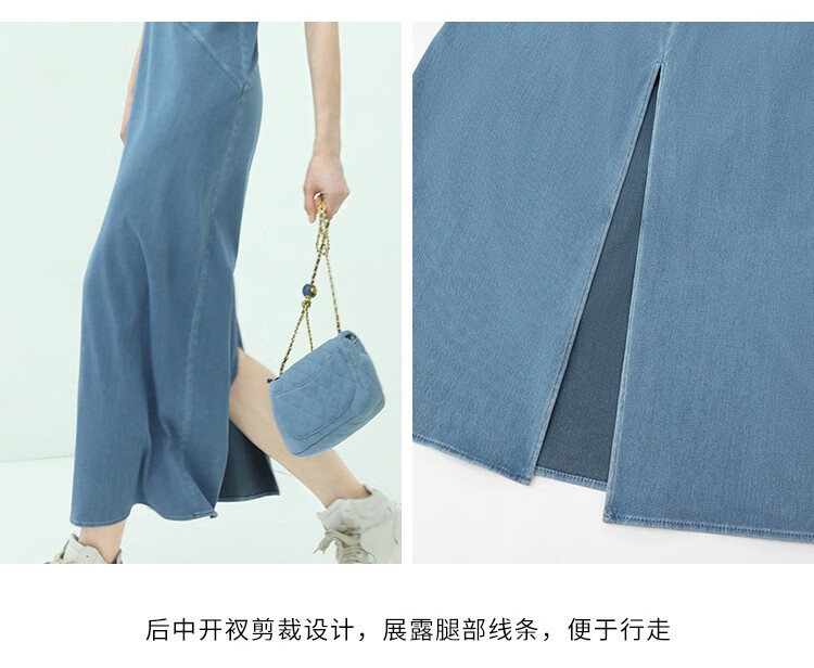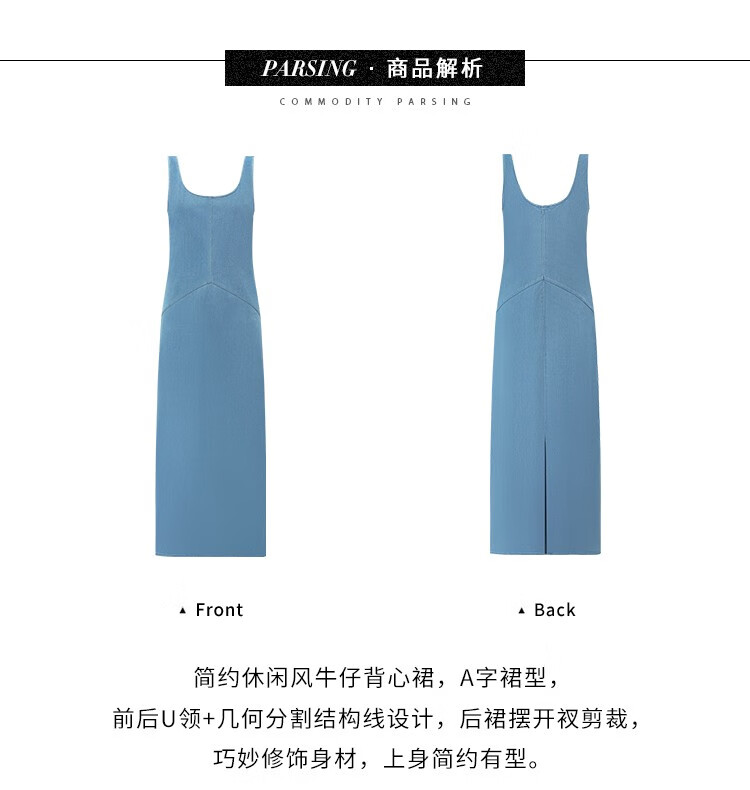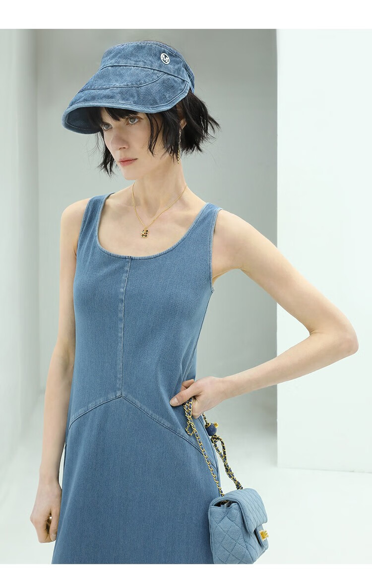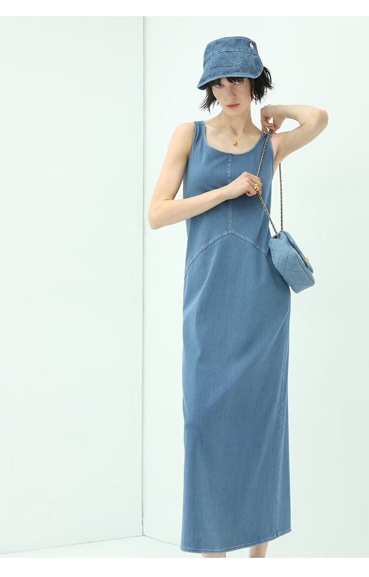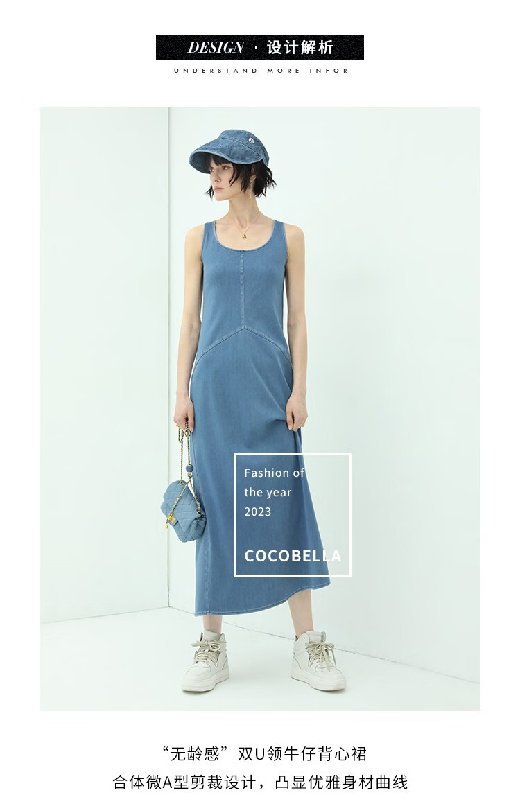 COCOBELLA简约弹力针织牛仔连衣裙设计感休闲背心长裙FR615