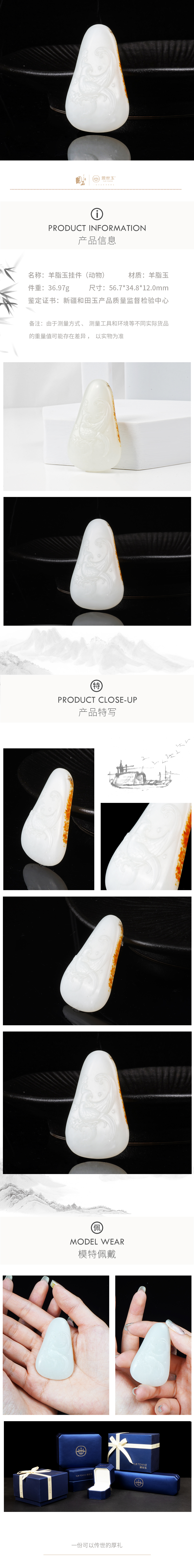 新疆国玉盟世玉和田玉羊脂玉挂件(灵凤)【带证书·顺丰物流】