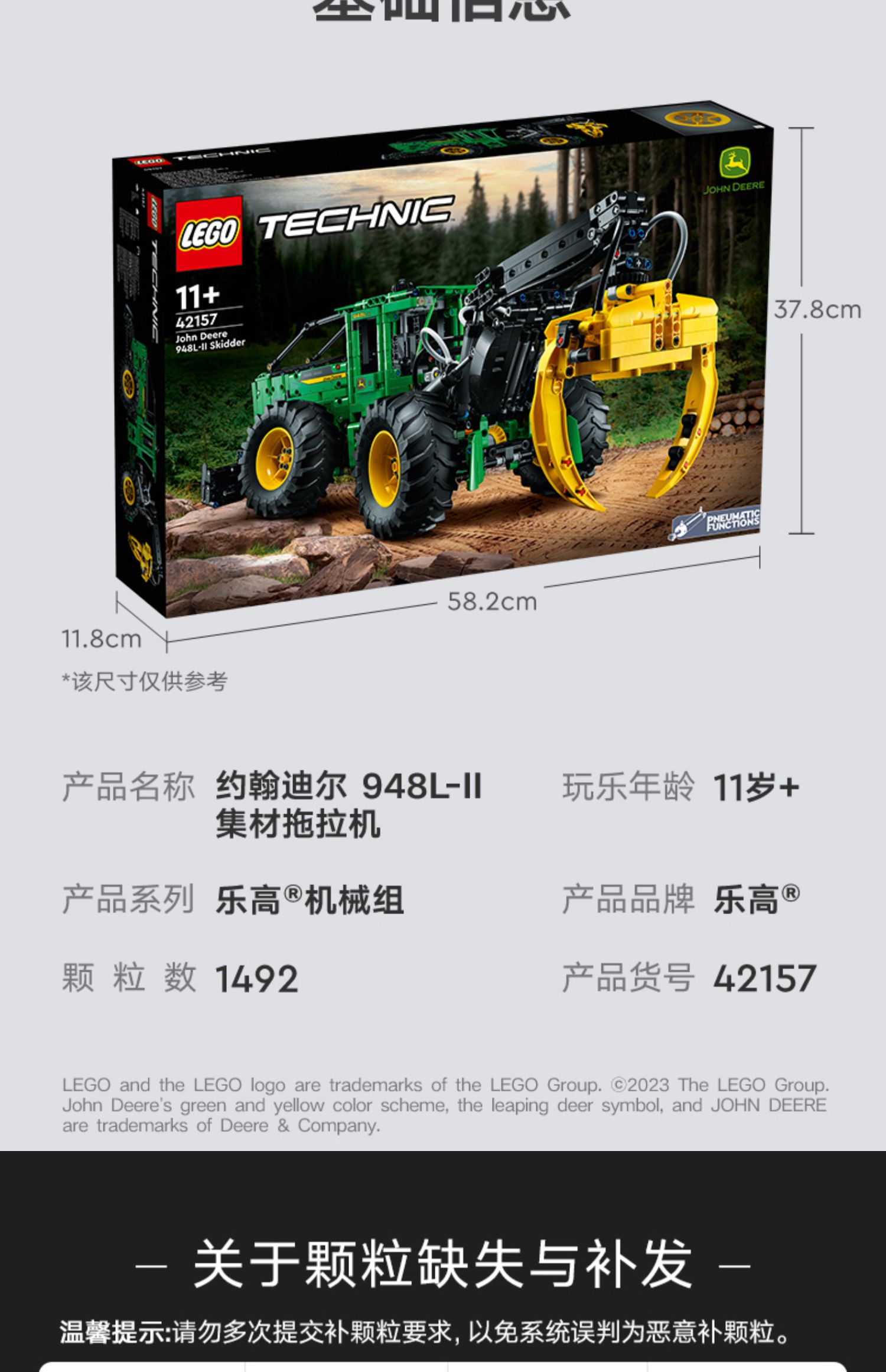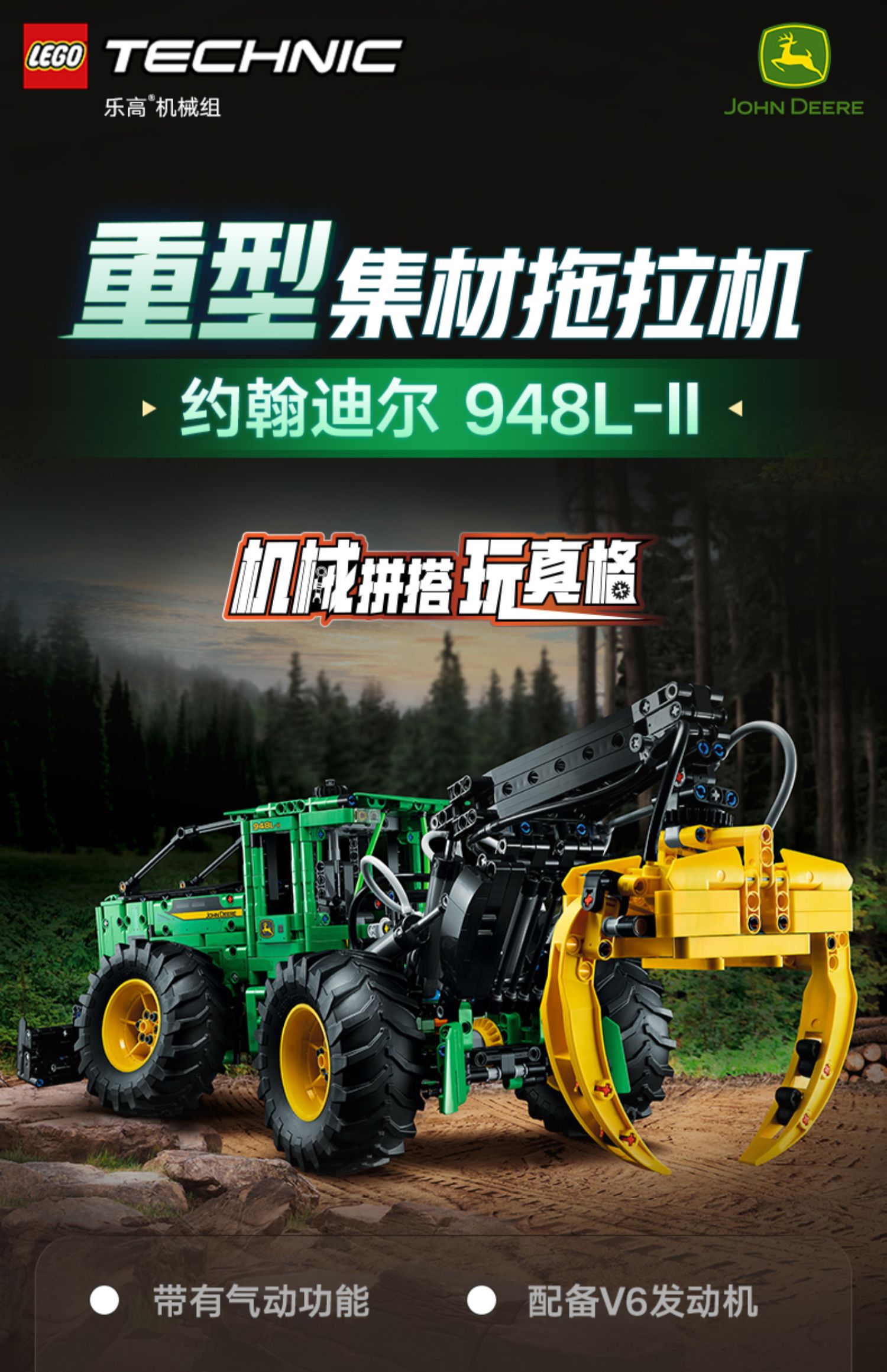 乐高积木 L42157乐高机械组系列约翰迪尔 948L-II 集材拖拉机