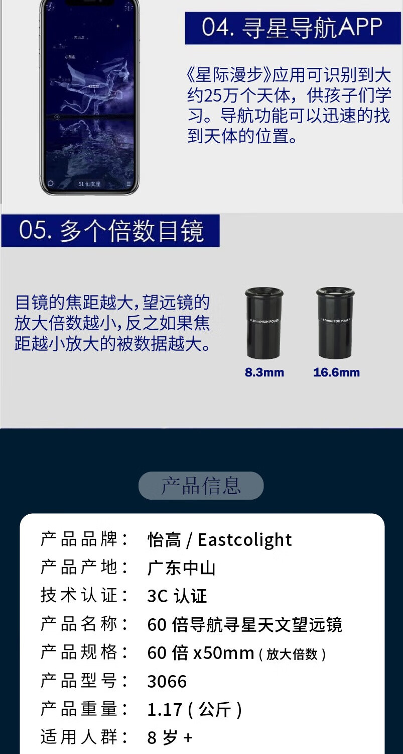 怡高 3066 50×60mm导航寻星天文望远镜工具箱套装