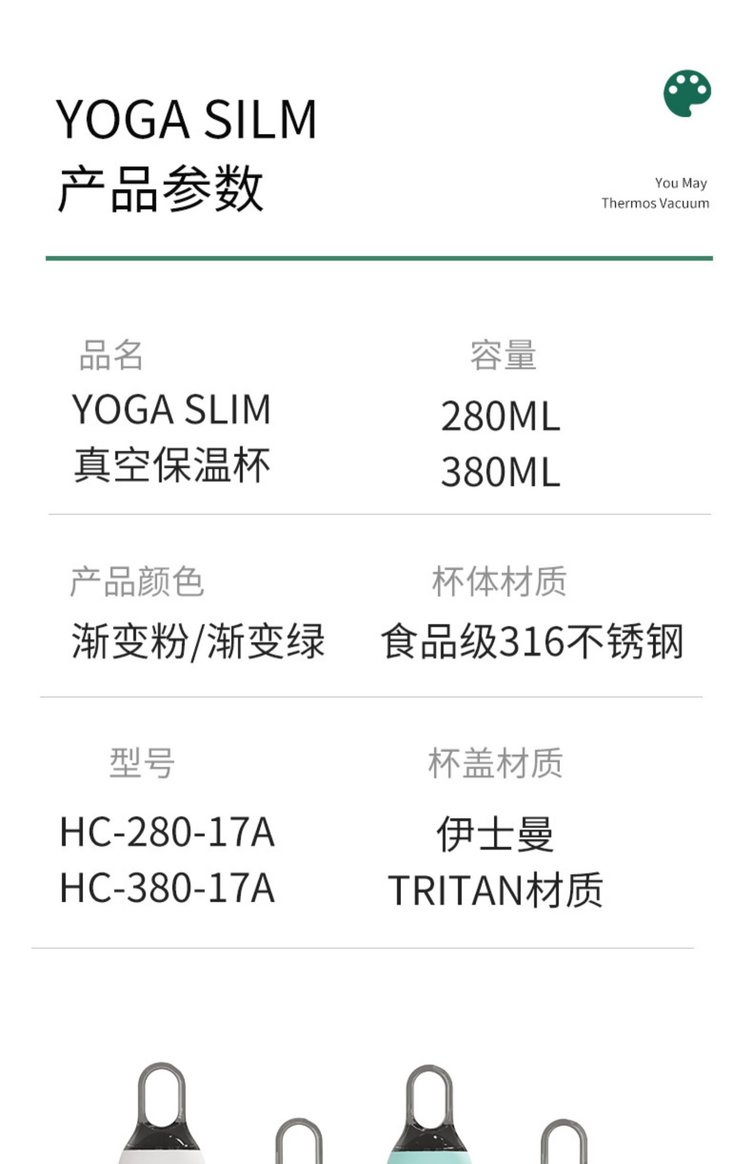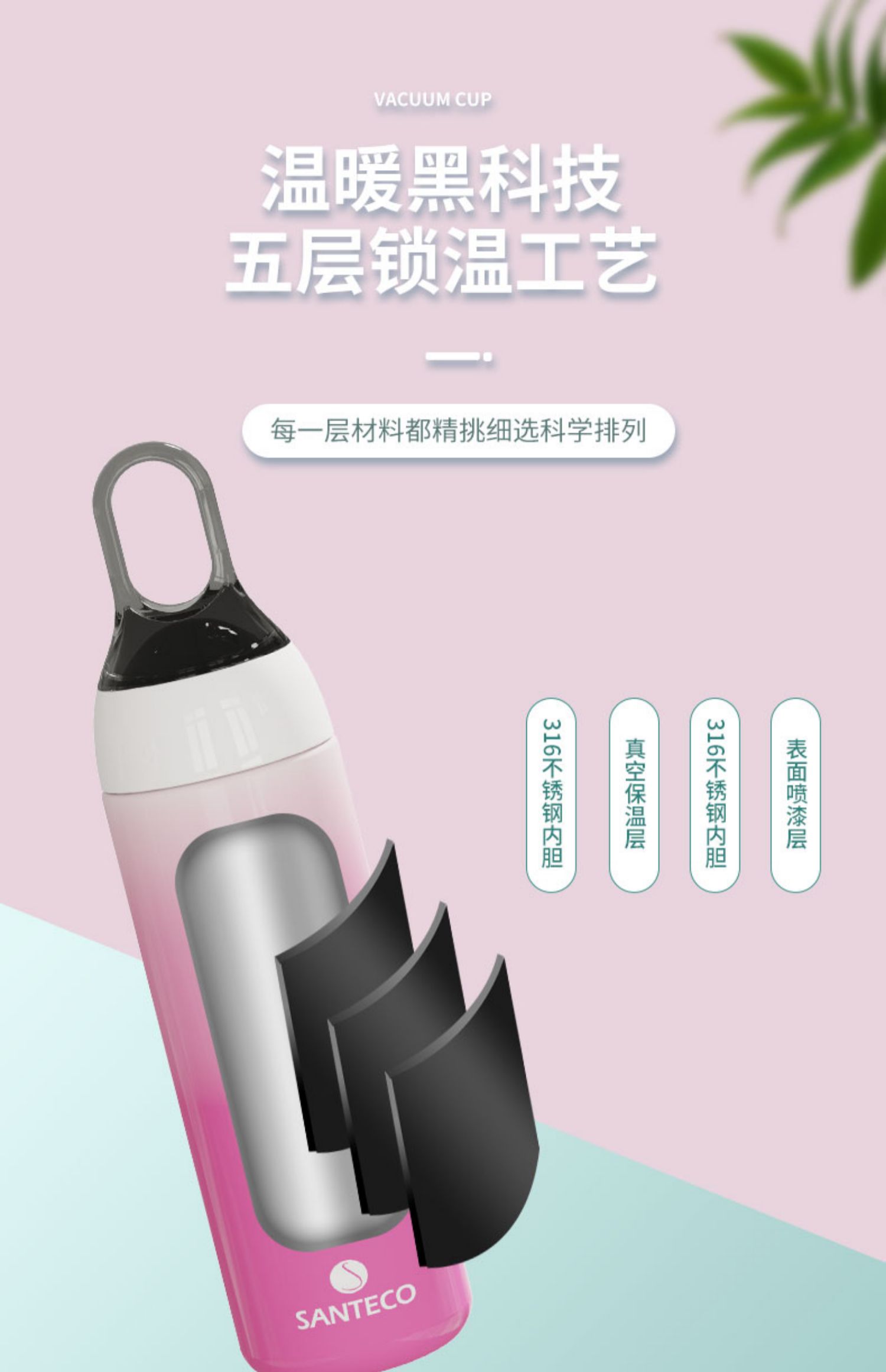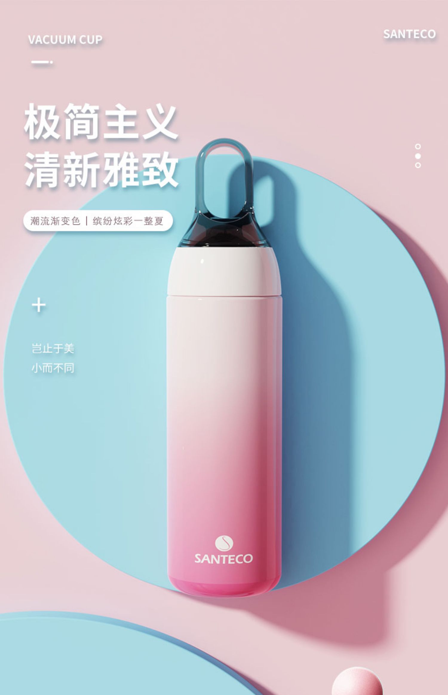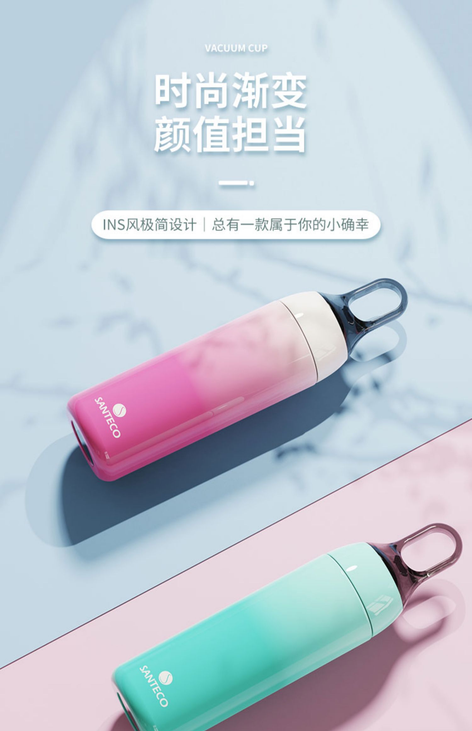 A-SA-280-17A 提手杯280ML 渐变色 法国santeco 保温杯