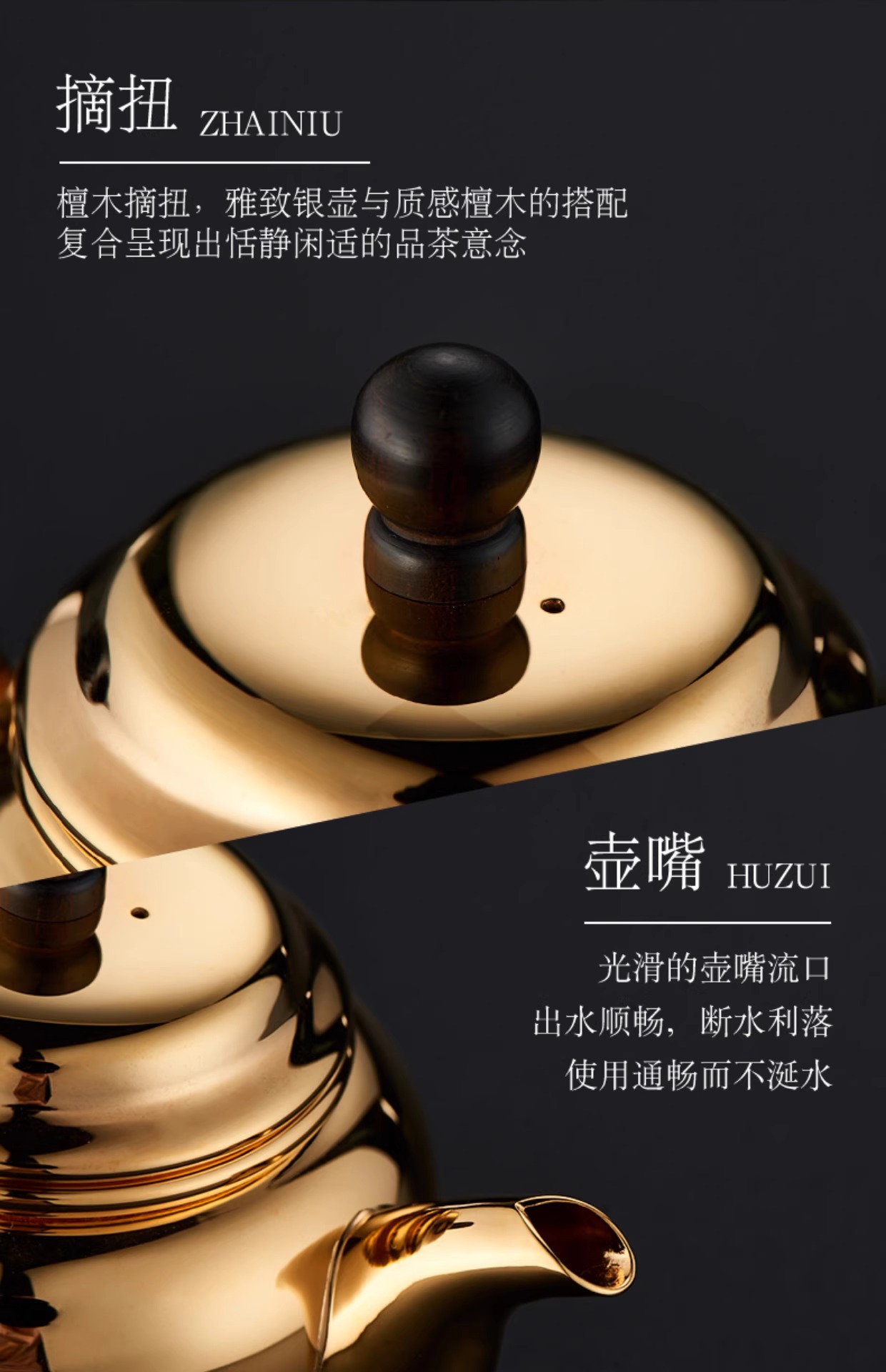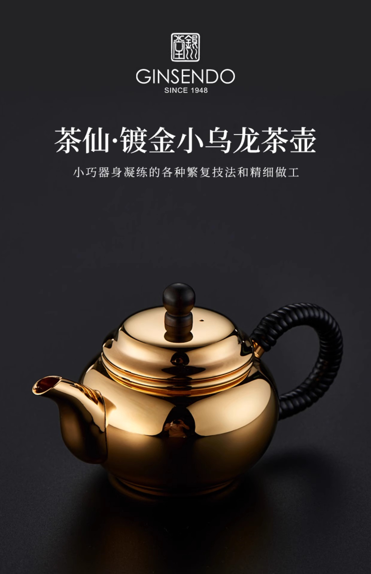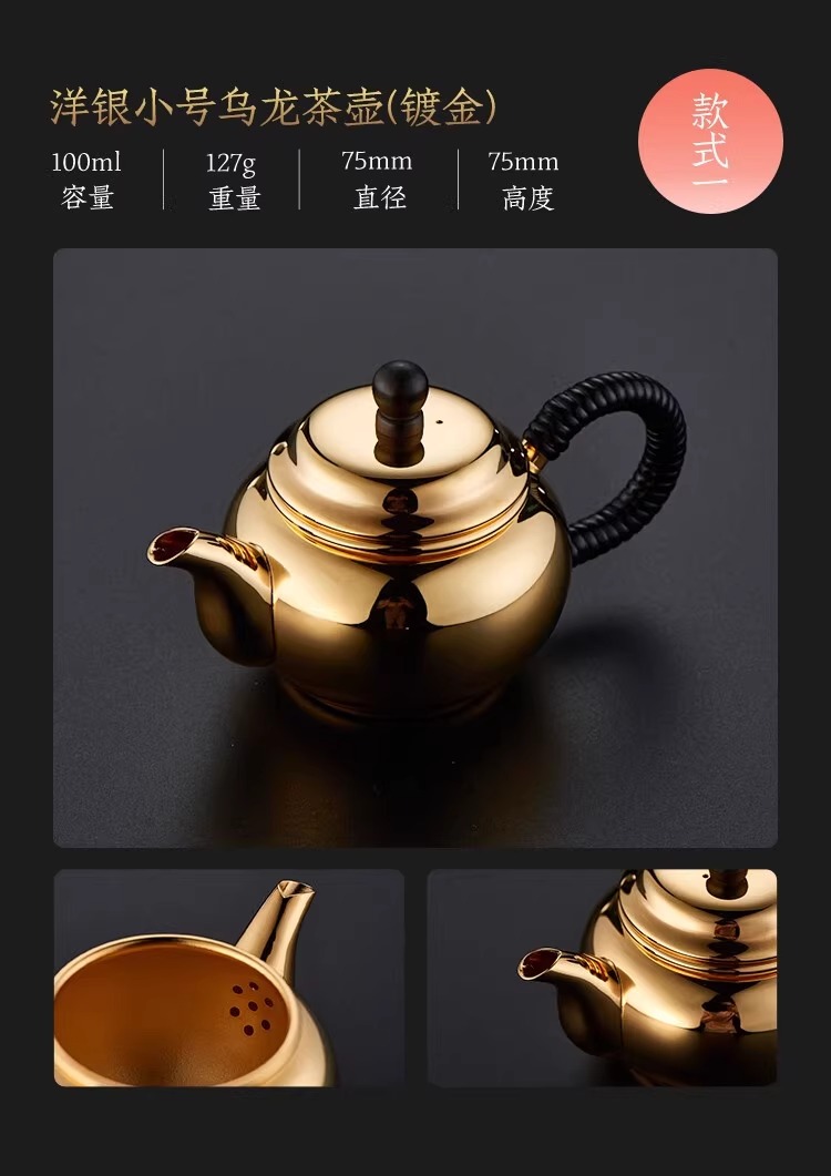 银本铺泡茶壶银壶镀金日本进口纯手工茶具乌龙日式茶壶公道杯一体茶仙洋银乌龙小茶壶
