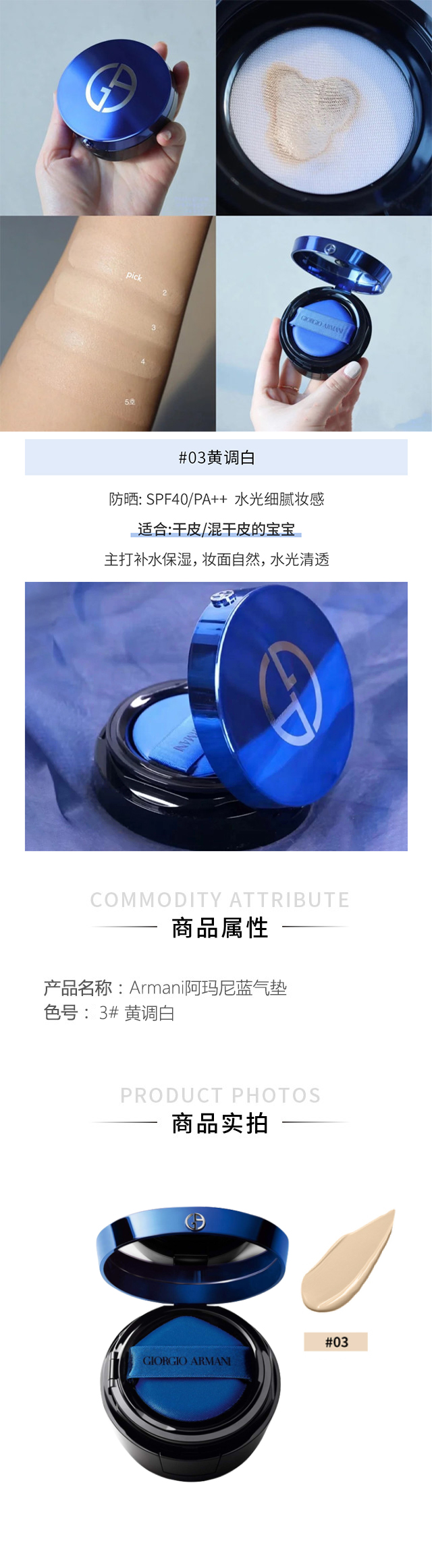 【大牌折扣】Armani阿玛尼BB蓝气垫2#/ 3#/ 4#(口红,粉底类产品非质量问题不退货)