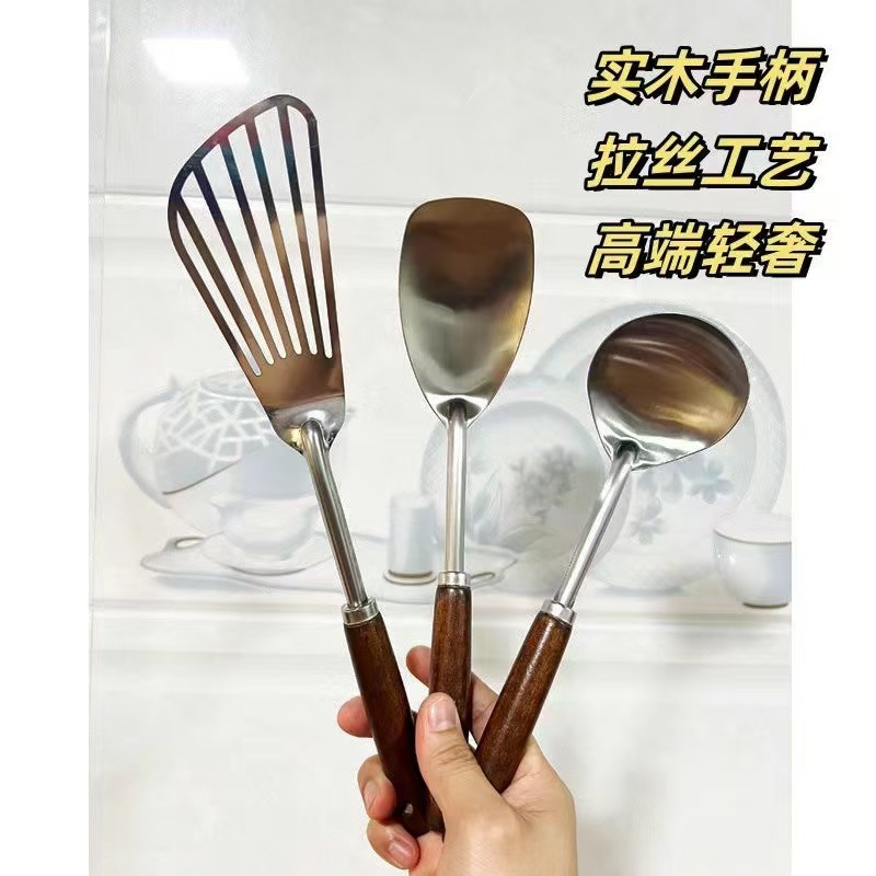 「19.9到手3支!木柄加厚」不锈钢勺铲子套件 木柄加厚厨房用品炒菜勺铲三件套煎铲汤壳家用