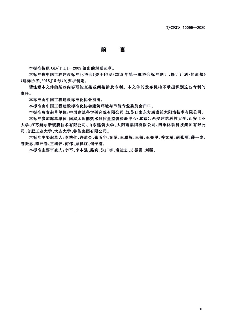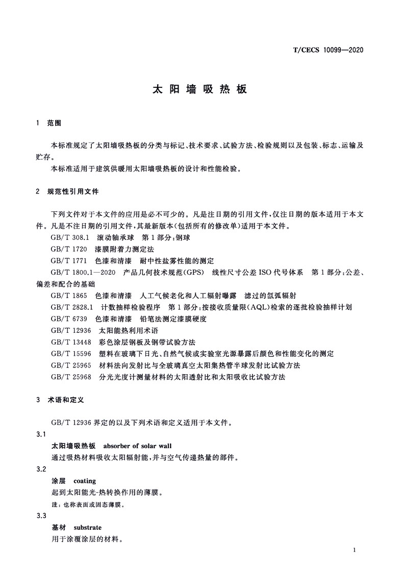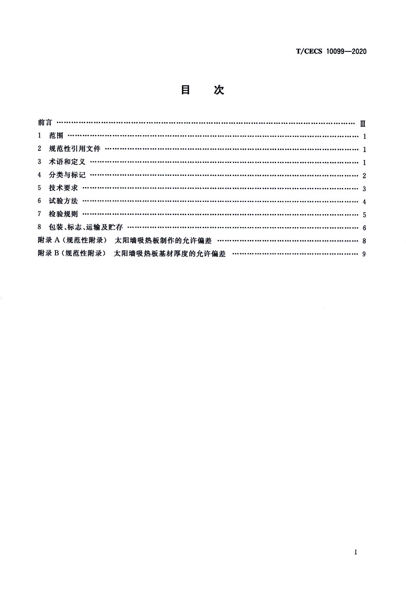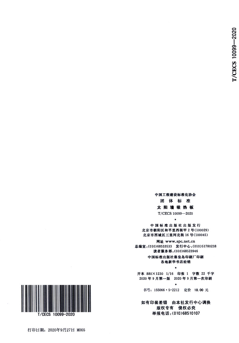 | T/CECS 10099-2020 太阳墙吸热板 | ||