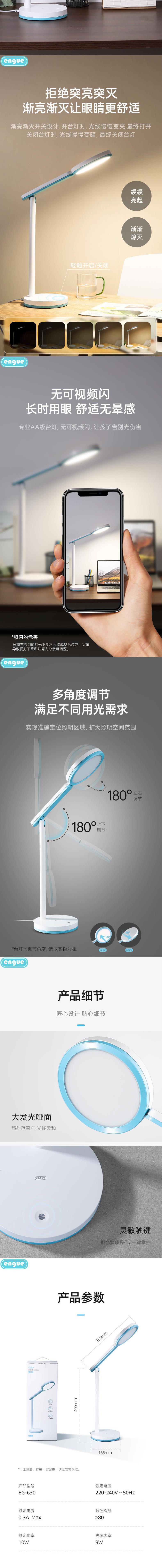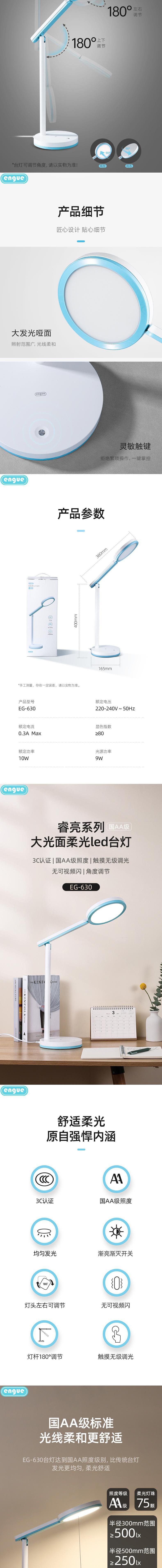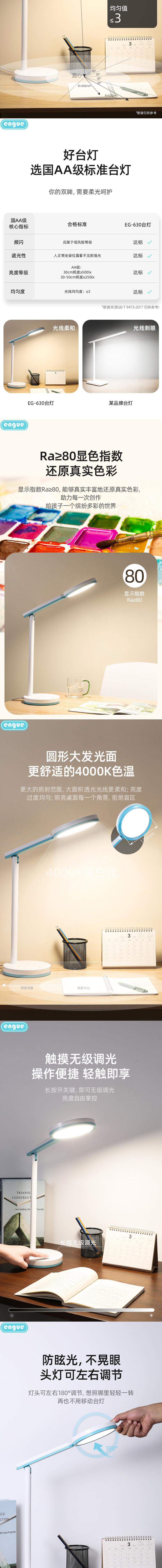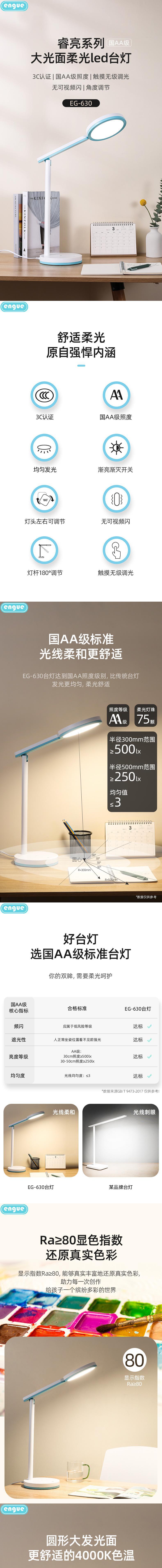 engue恩谷国双AA-柔光LED睿亮护眼大台灯 EG-630国AA照度均匀光线无频闪