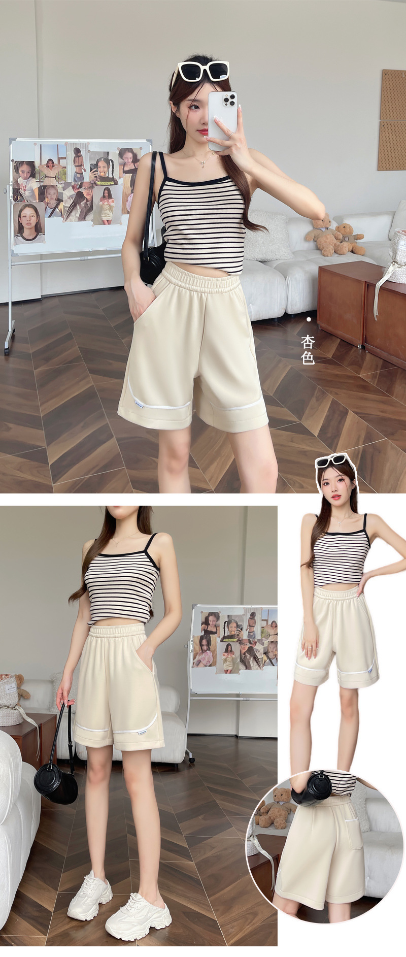 【奶油空气棉运动短裤】女夏韩版纯色休闲宽松高腰显瘦阔腿裤百搭热裤