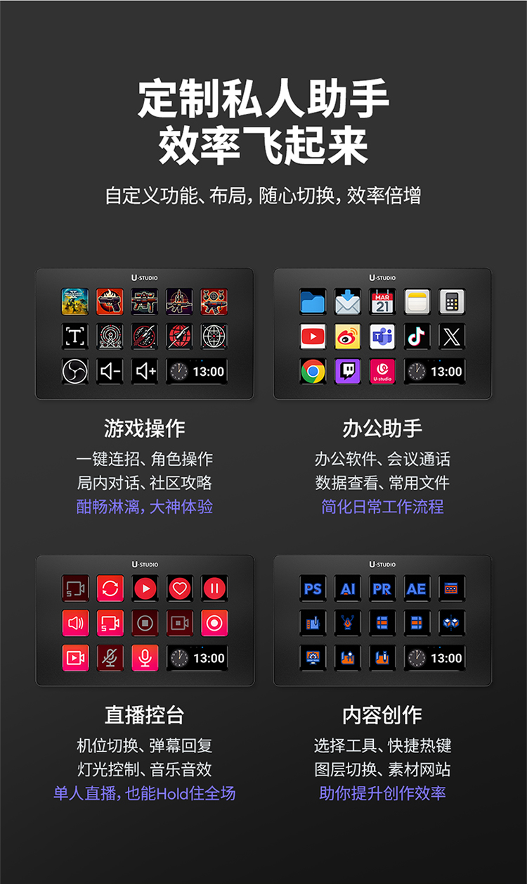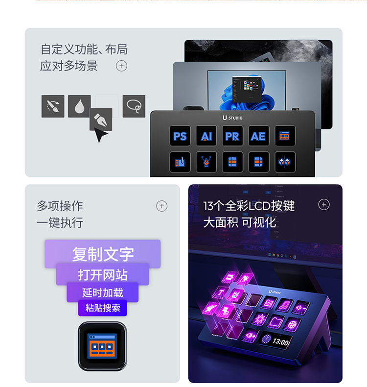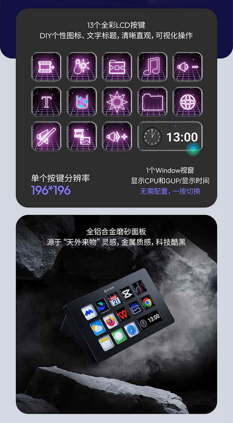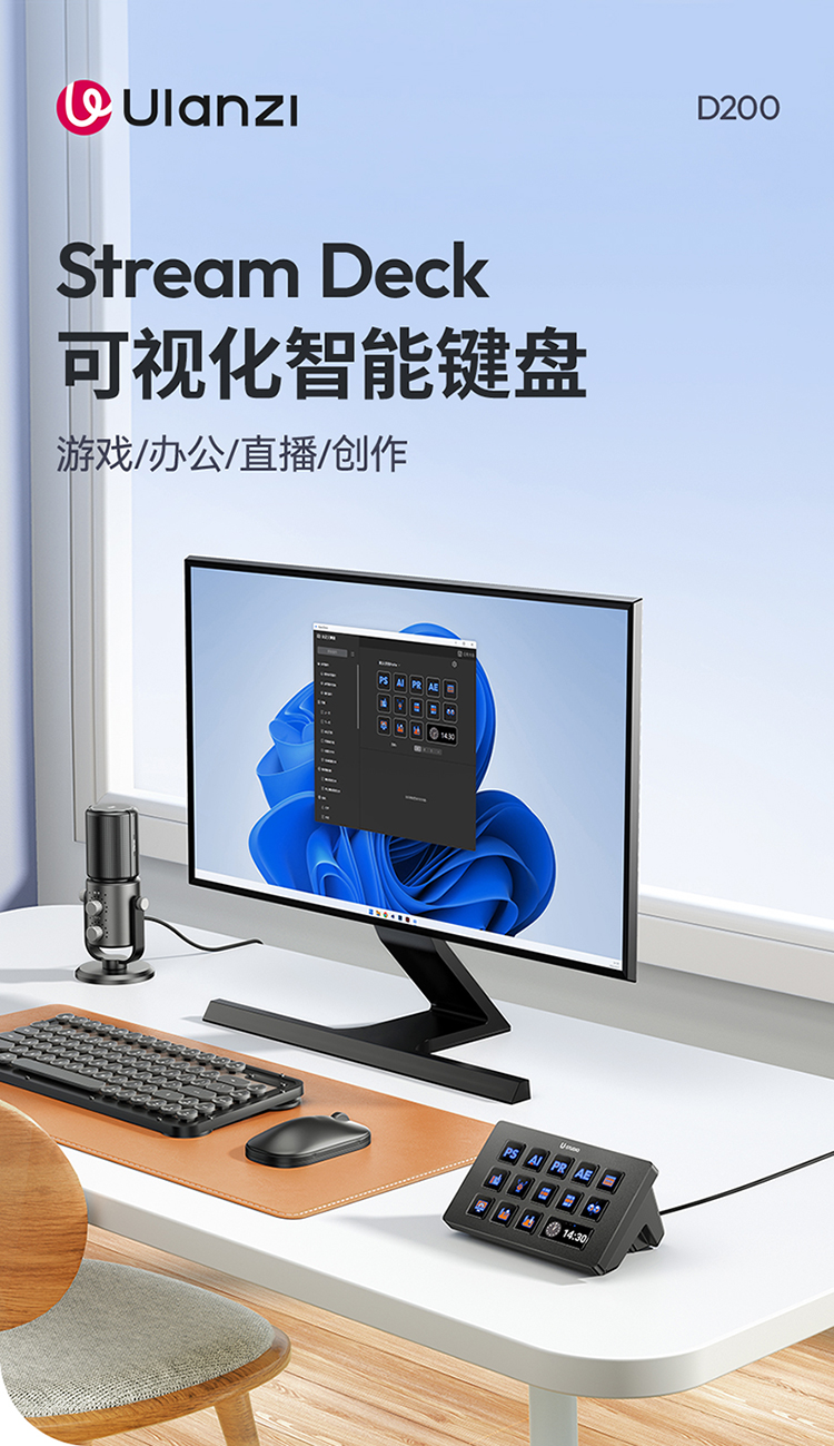 Ulanzi 优篮子D200智能键盘直播控制器可视化内容控制台可编程宏键盘