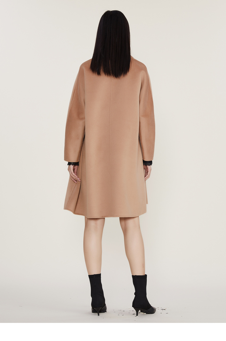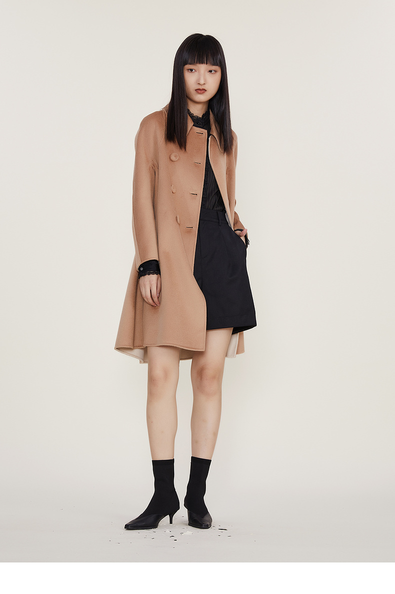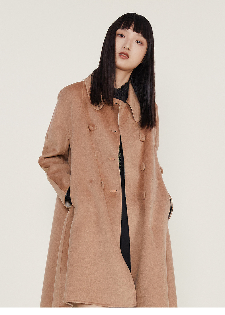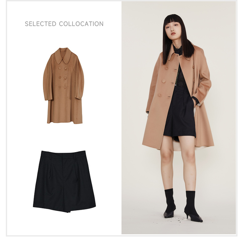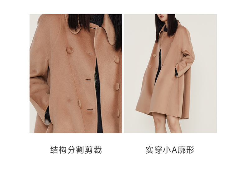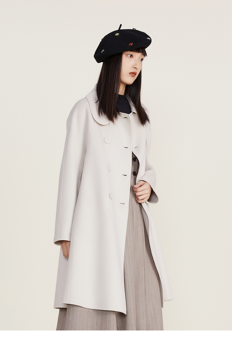 谜底22冬季新款毛呢大衣宽松A型双排扣中长款外套中长款224MD1526