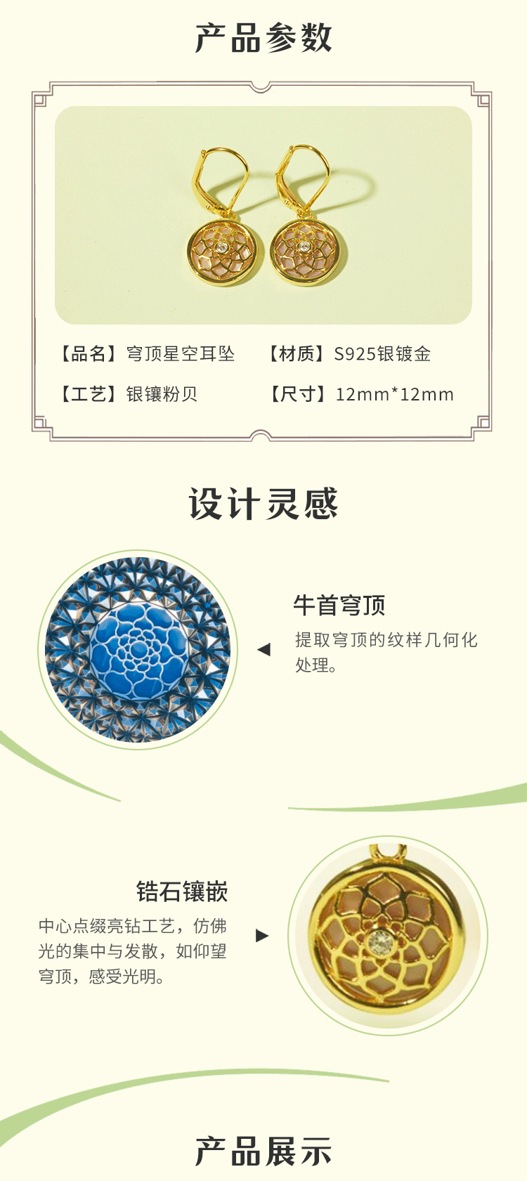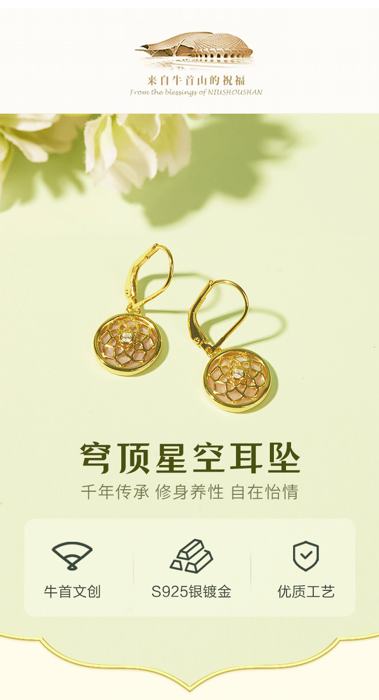 牛首山穹顶星空耳坠925纯银复古轻奢高级感镶锆石送女友闺蜜礼物