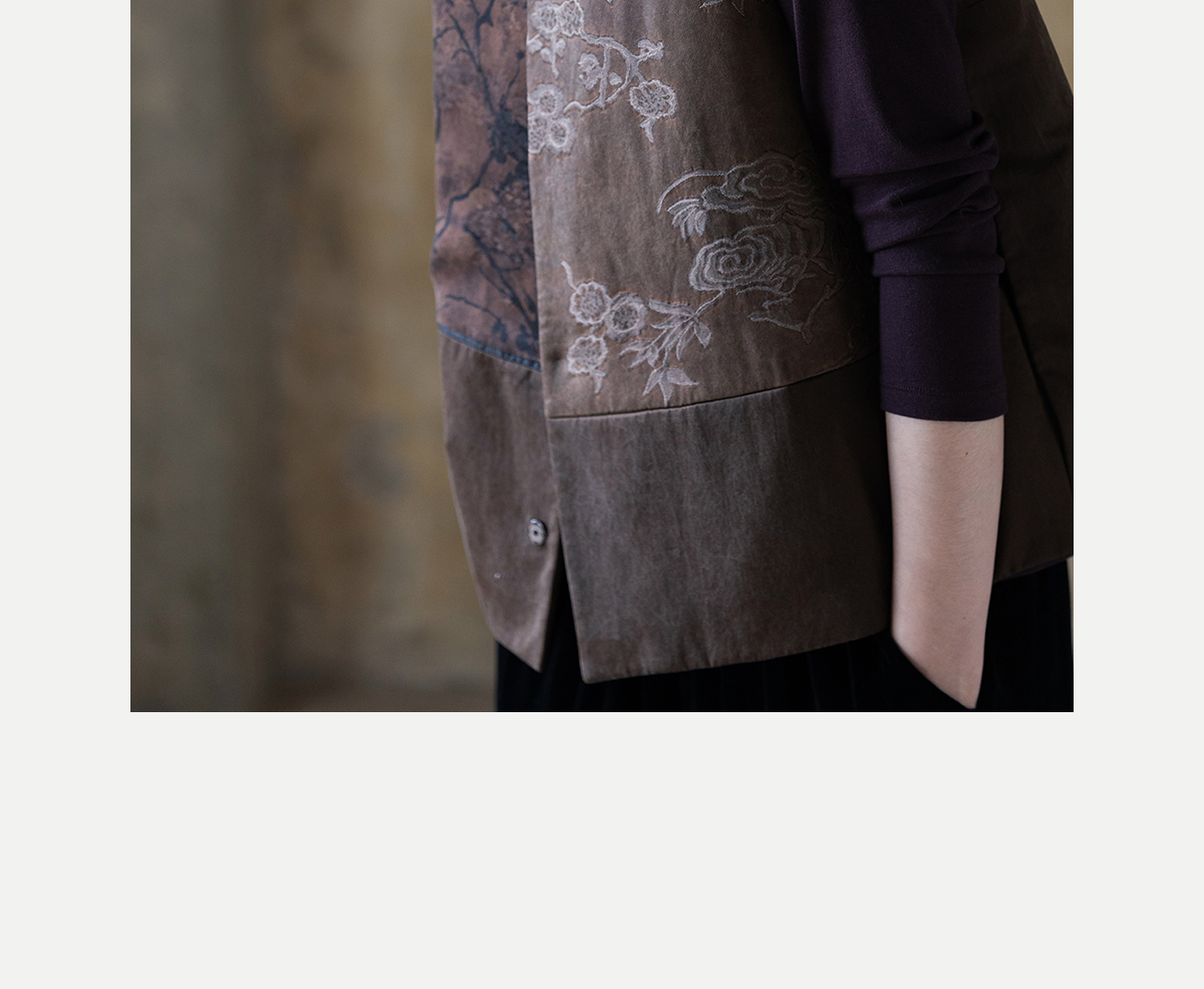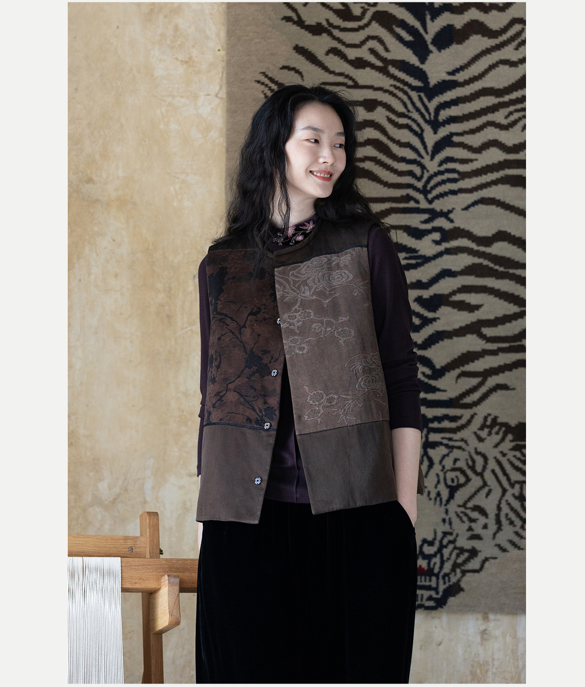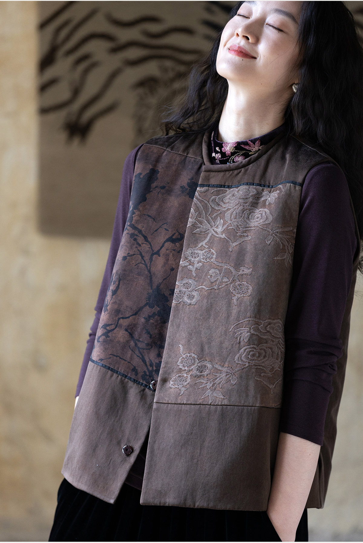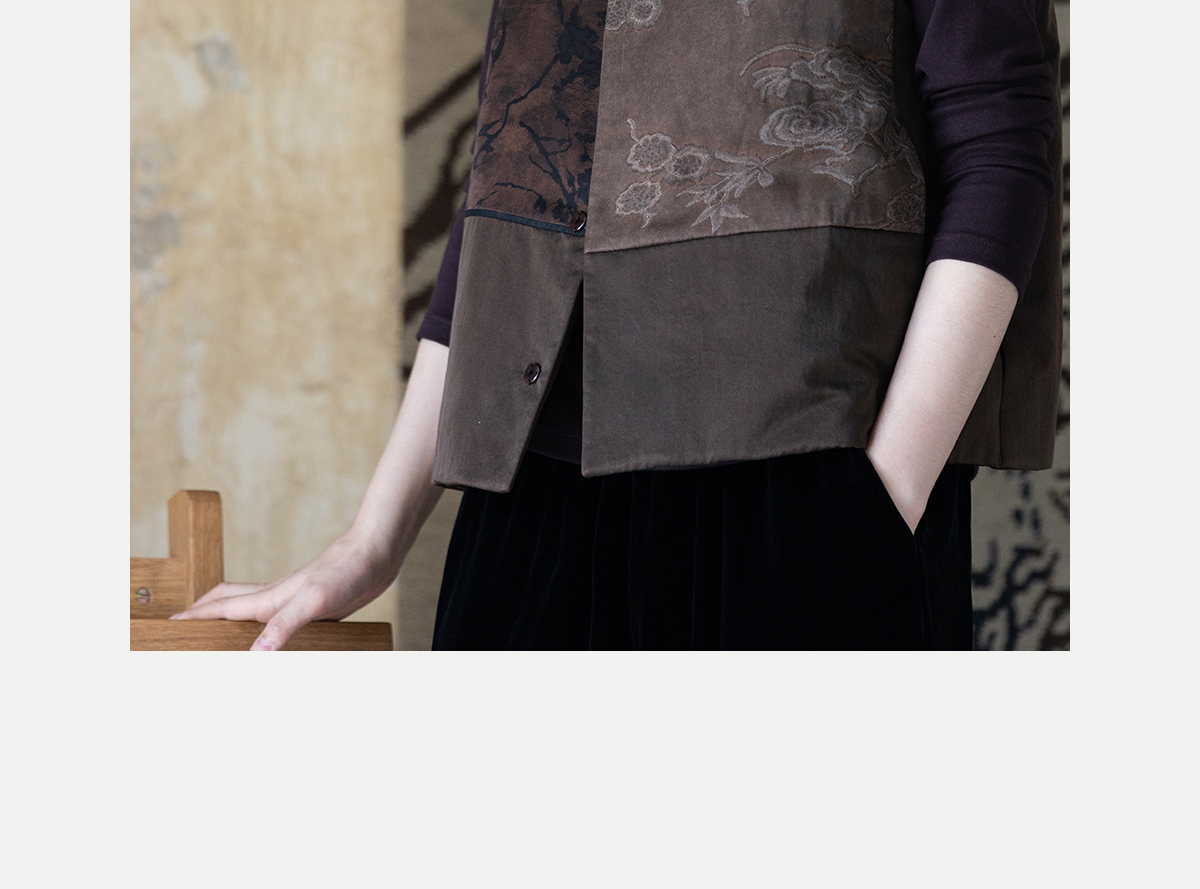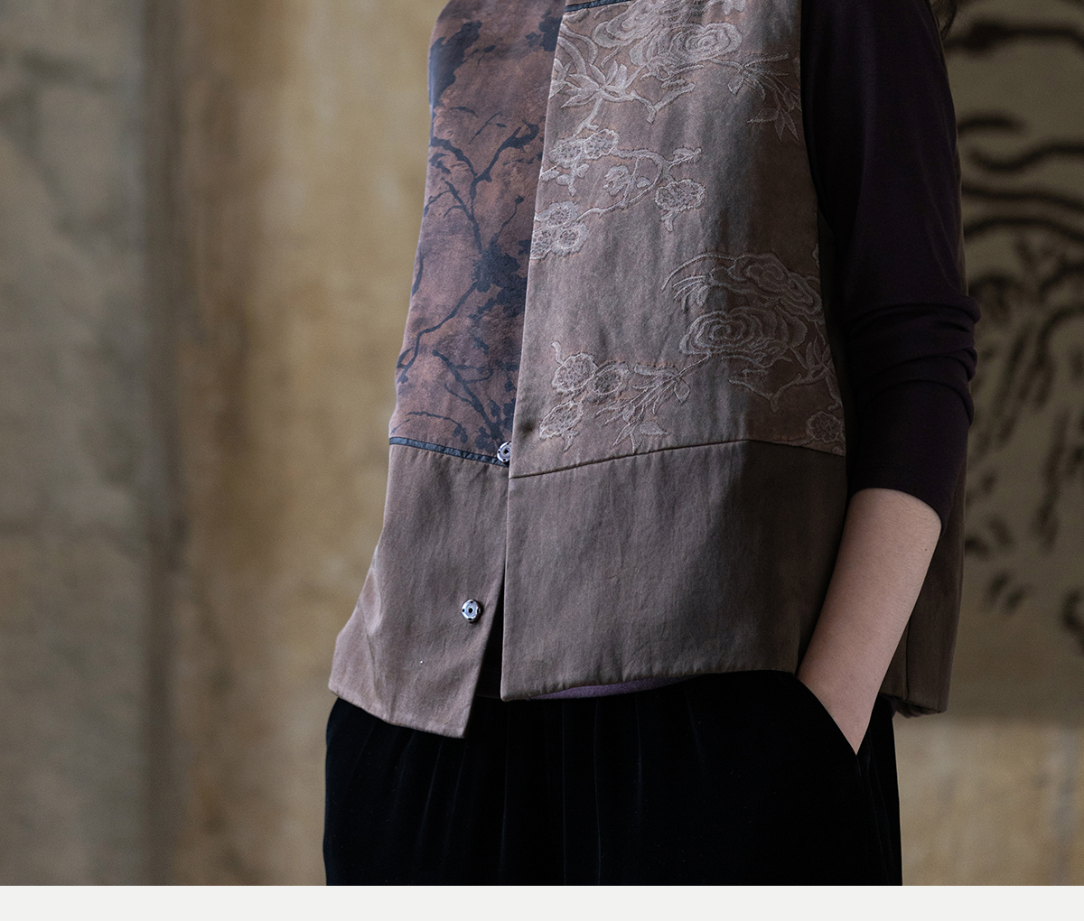 牧衣游原创 香云纱拼接夹棉马夹新款复古民族风新中式开衫 冬令时