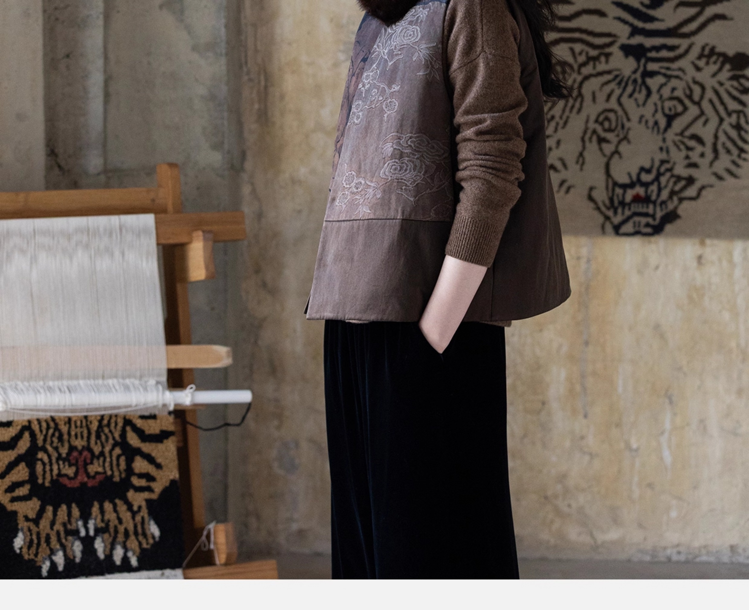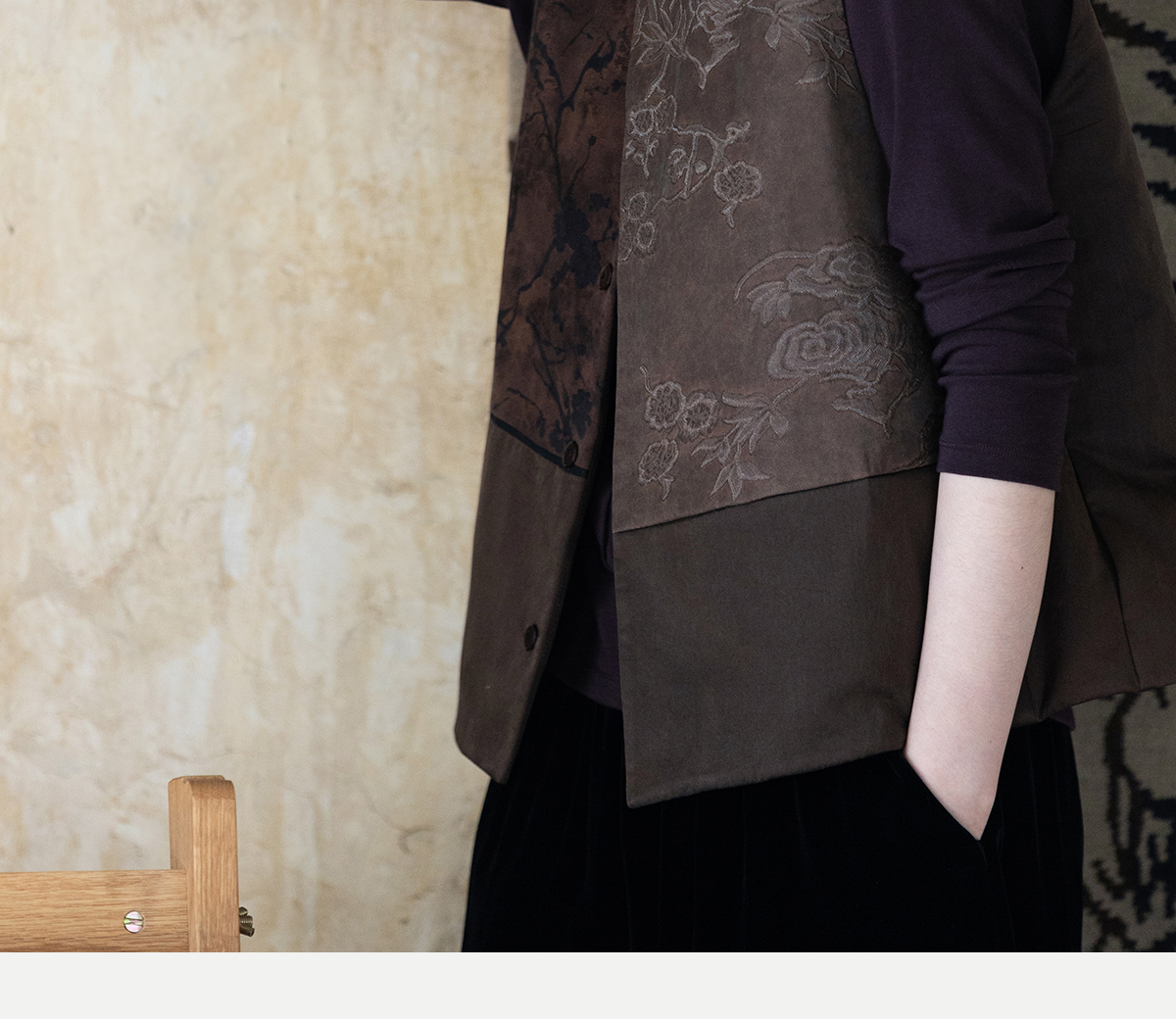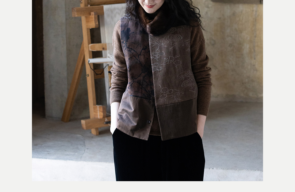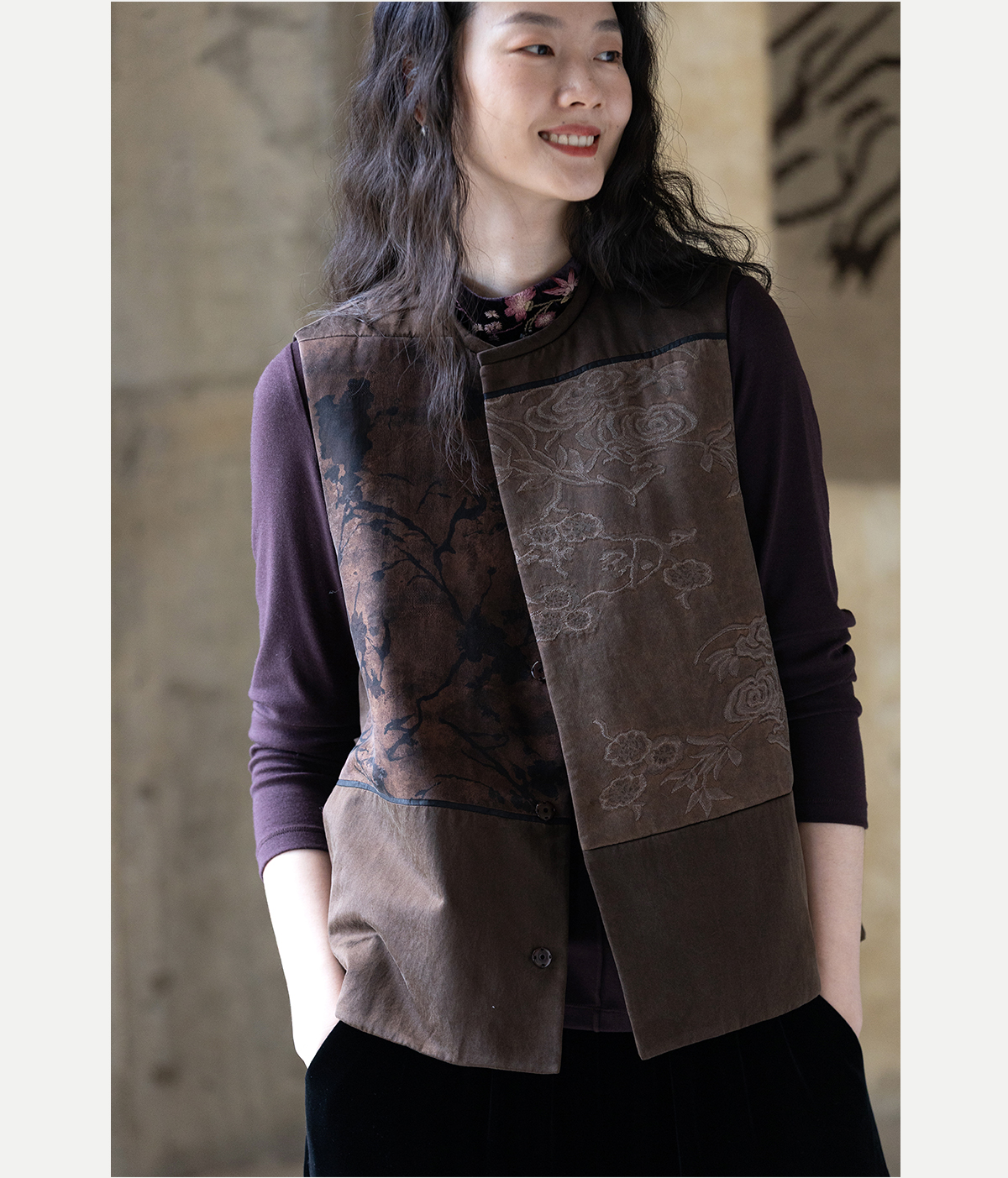 牧衣游原创 香云纱拼接夹棉马夹新款复古民族风新中式开衫 冬令时