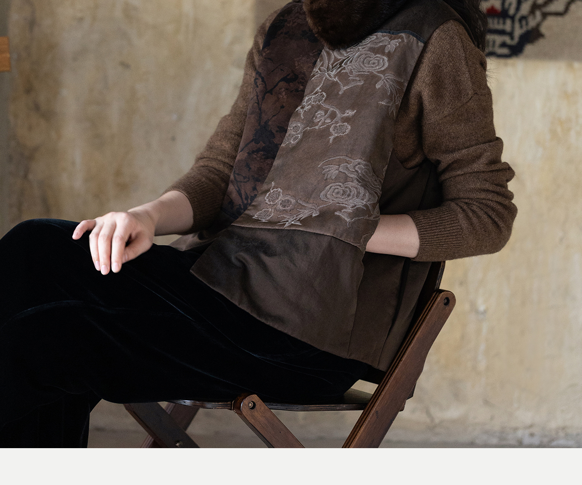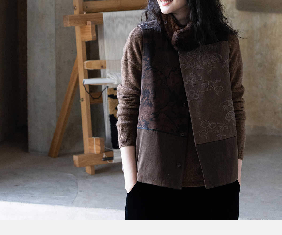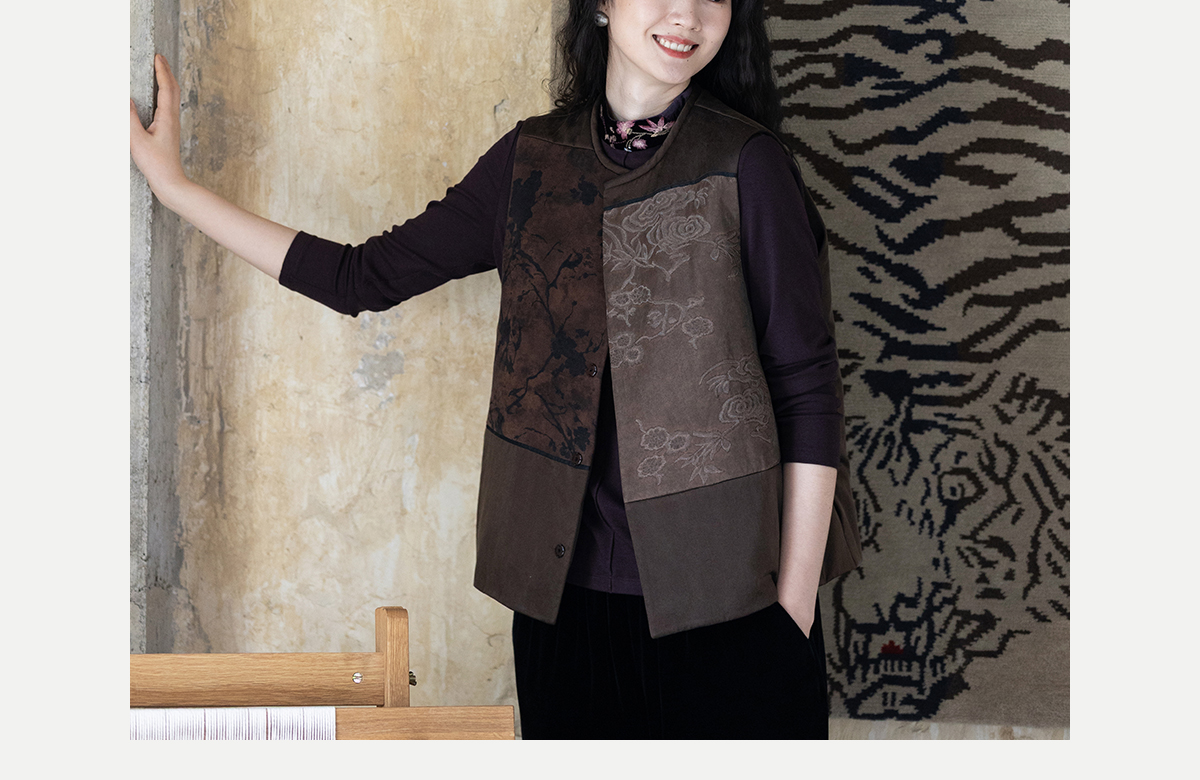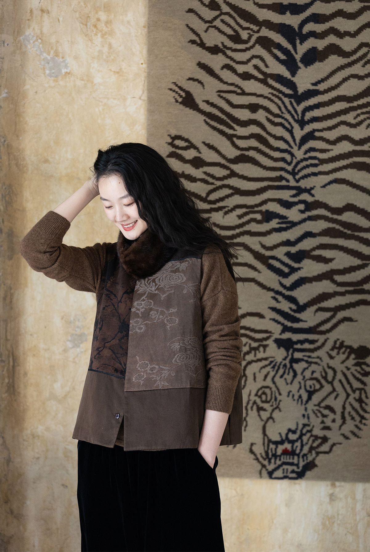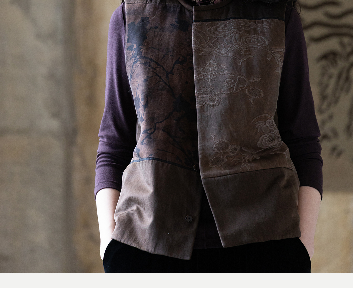 牧衣游原创 香云纱拼接夹棉马夹新款复古民族风新中式开衫 冬令时
