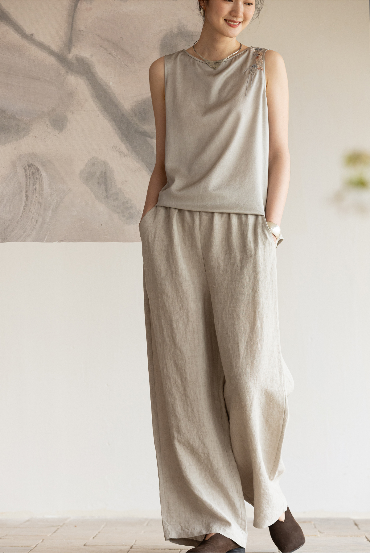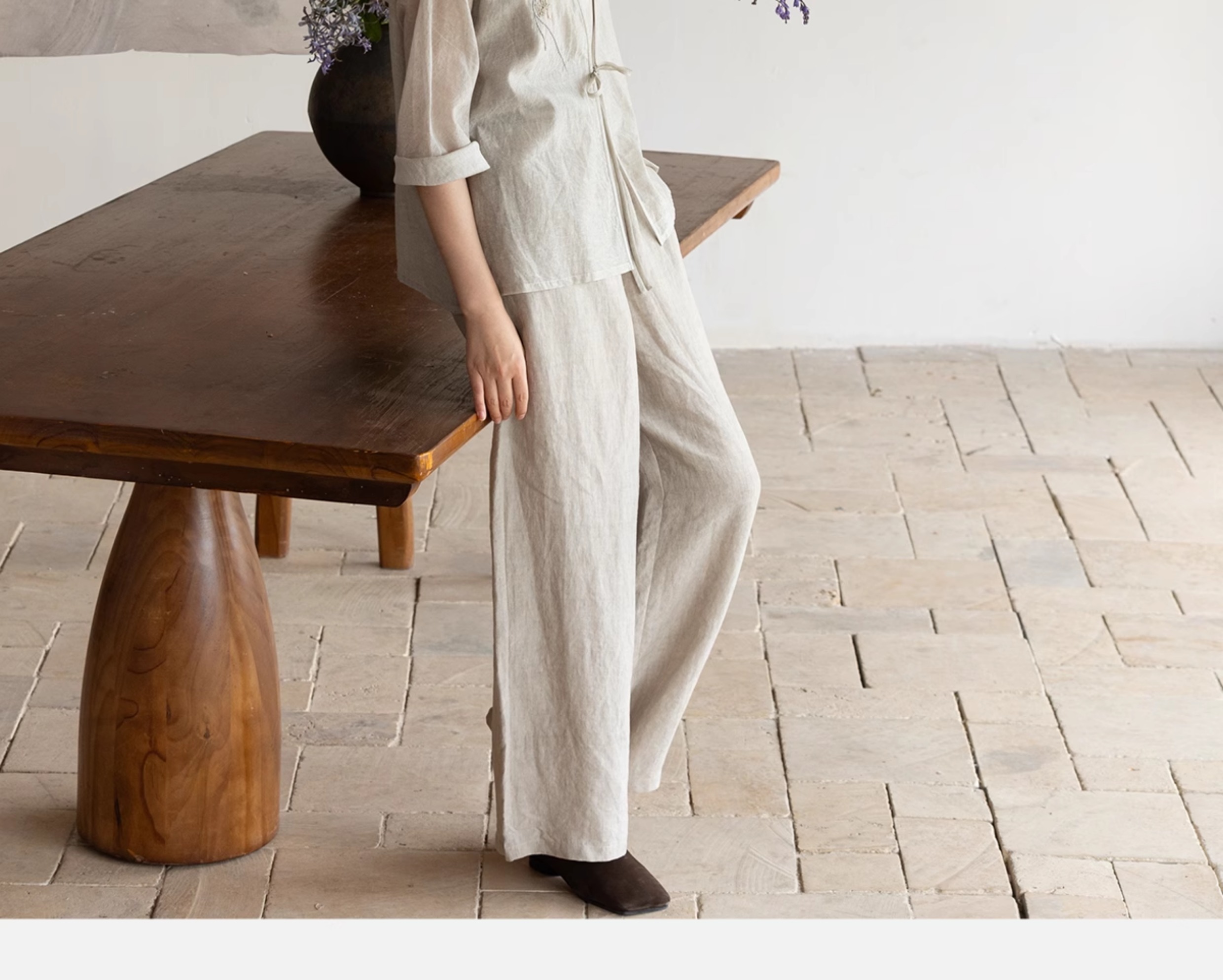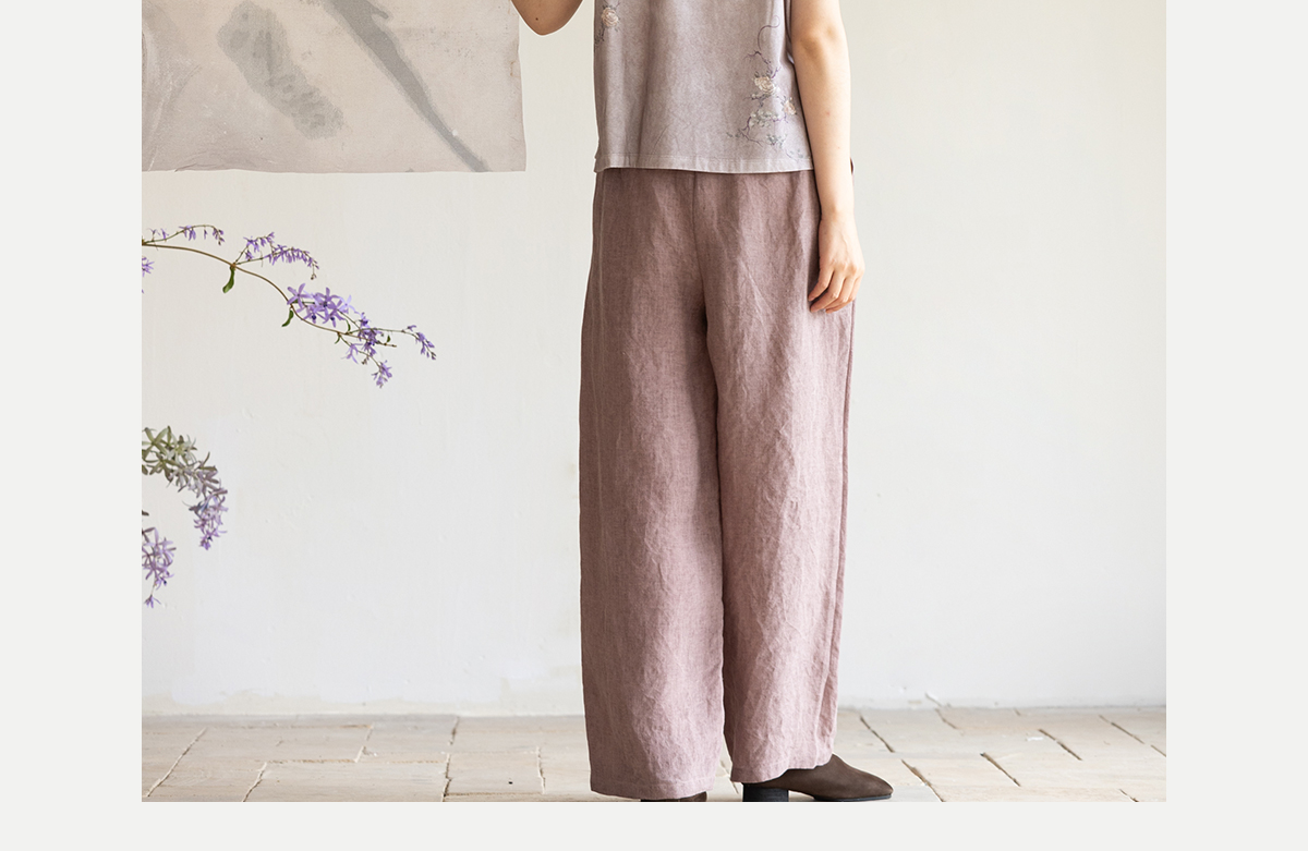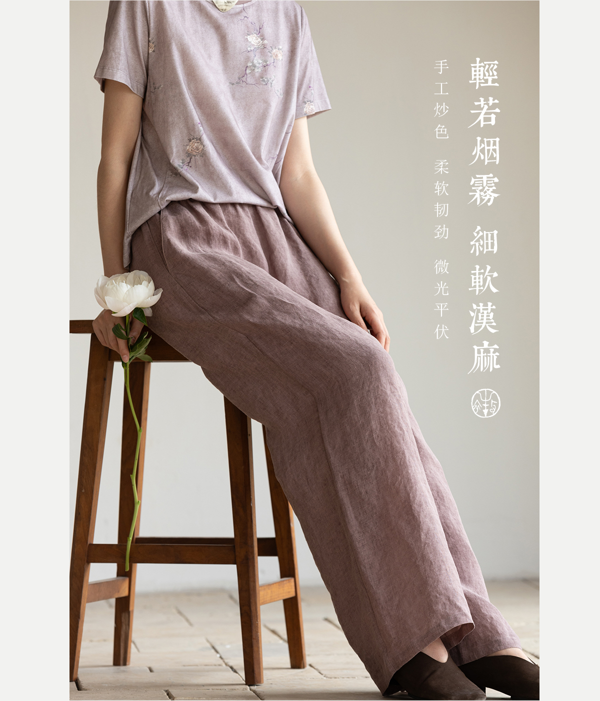 牧衣游原创 炒色汉麻裤子新品轻薄舒爽禅意质朴宽松休闲裤 十里桂