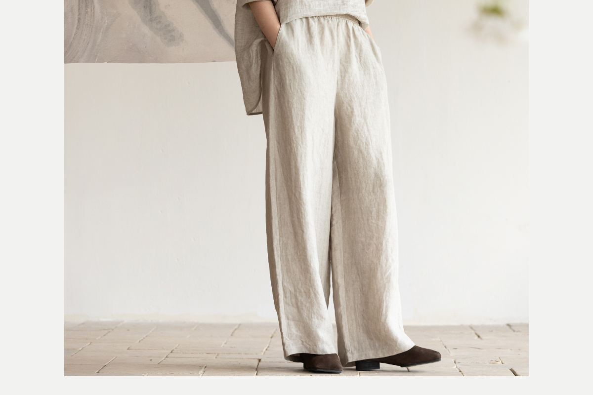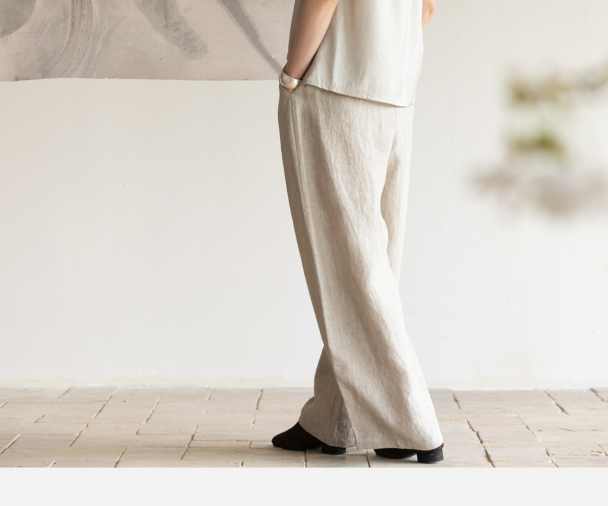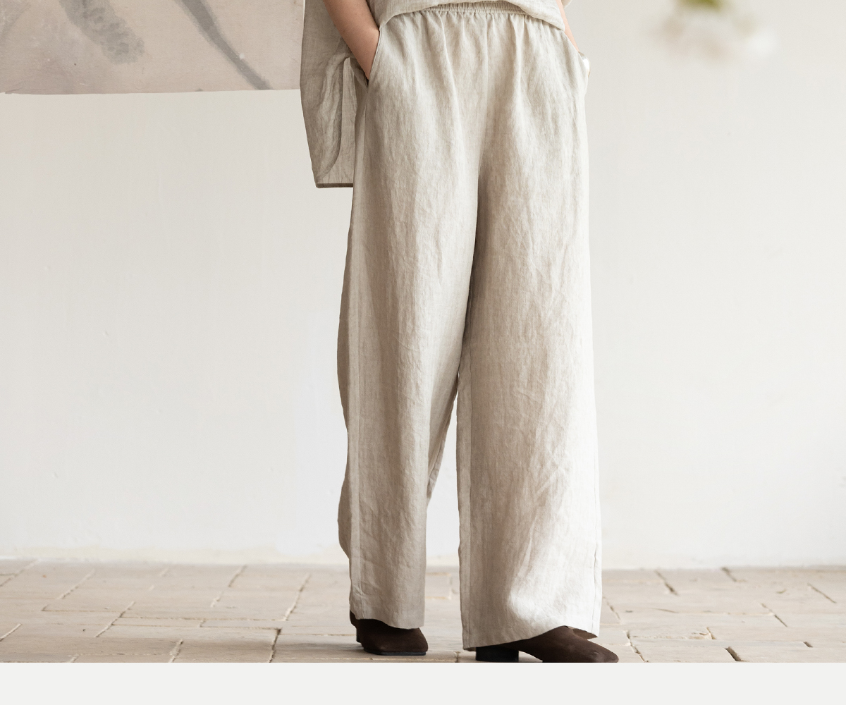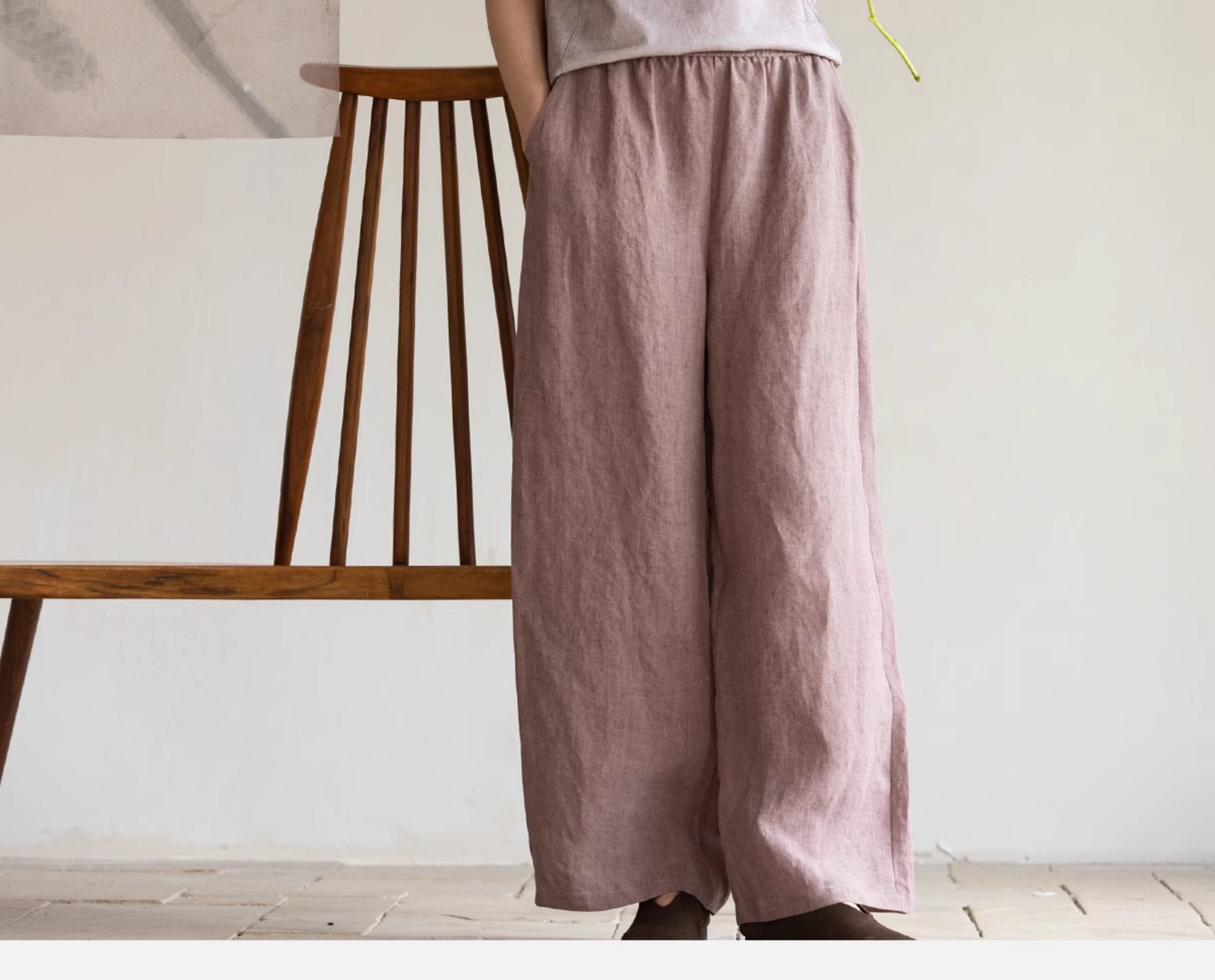 牧衣游原创 炒色汉麻裤子新品轻薄舒爽禅意质朴宽松休闲裤 十里桂