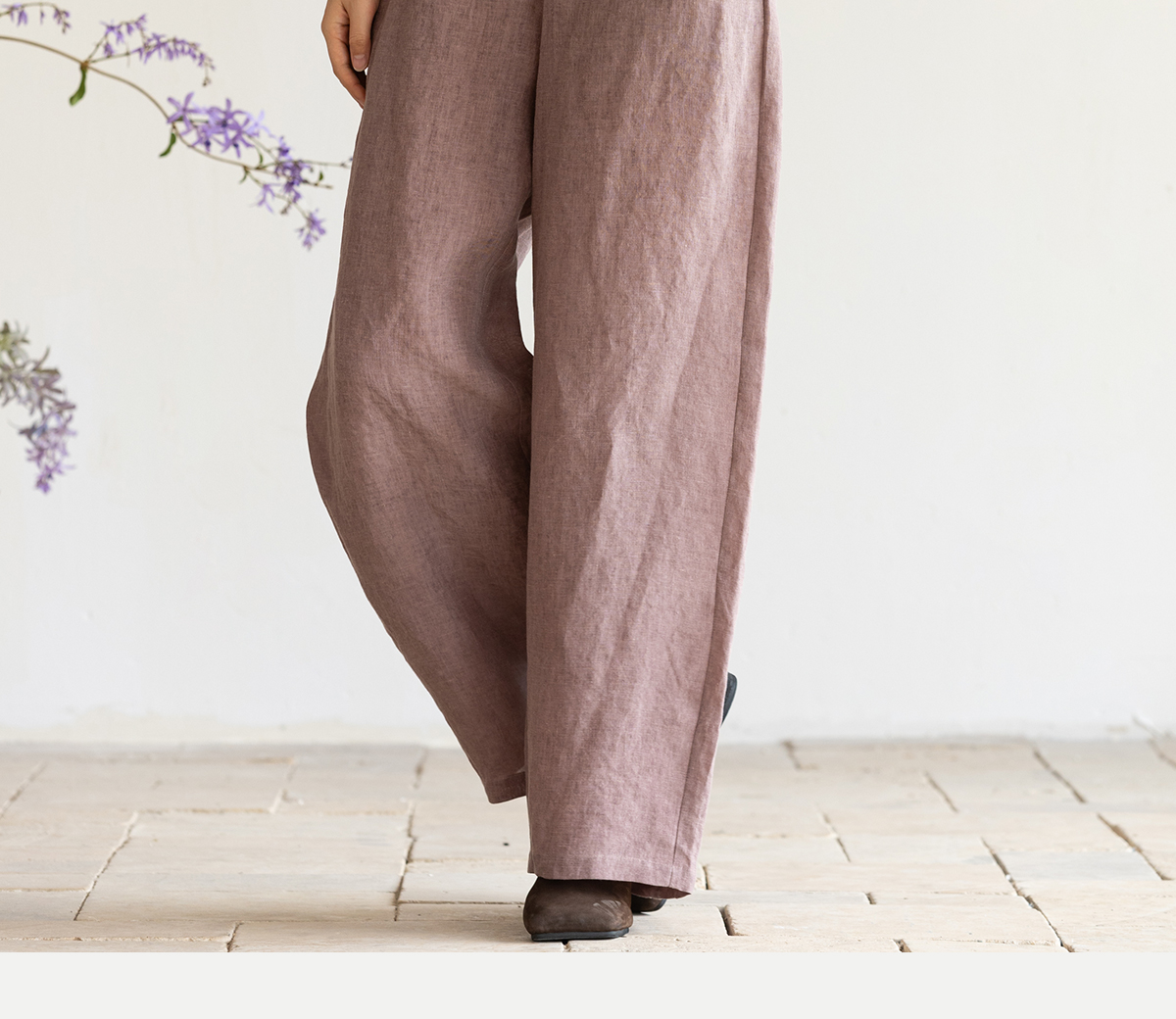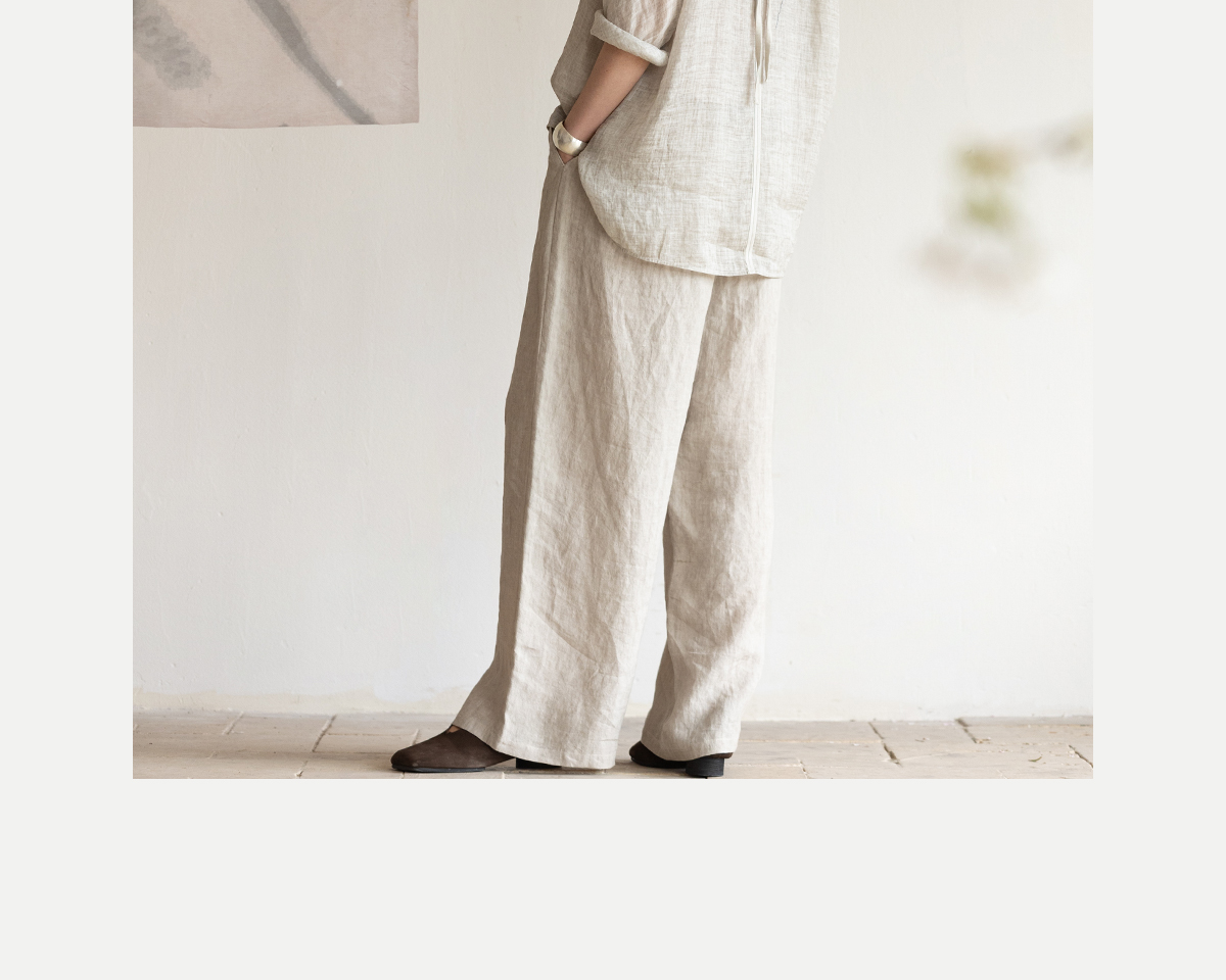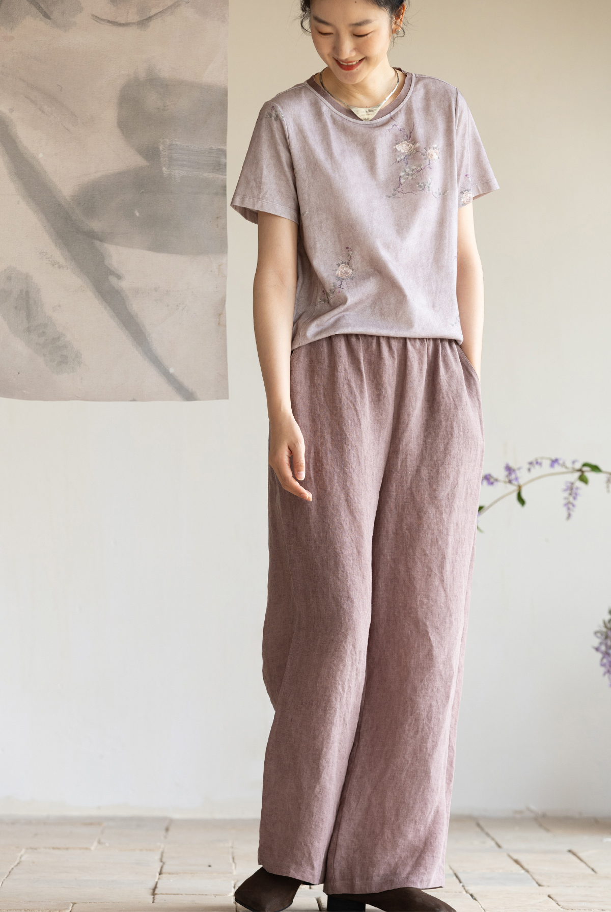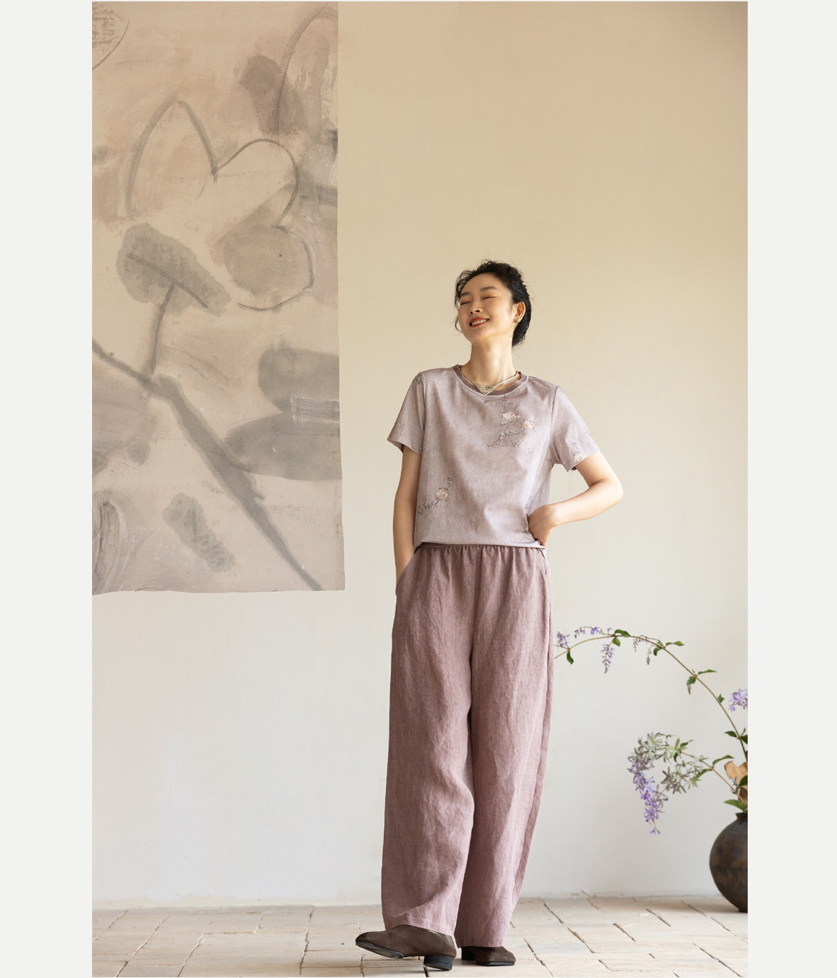 牧衣游原创 炒色汉麻裤子新品轻薄舒爽禅意质朴宽松休闲裤 十里桂