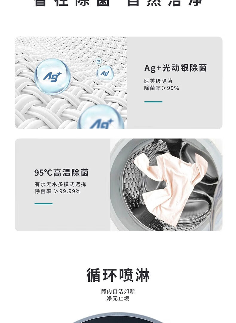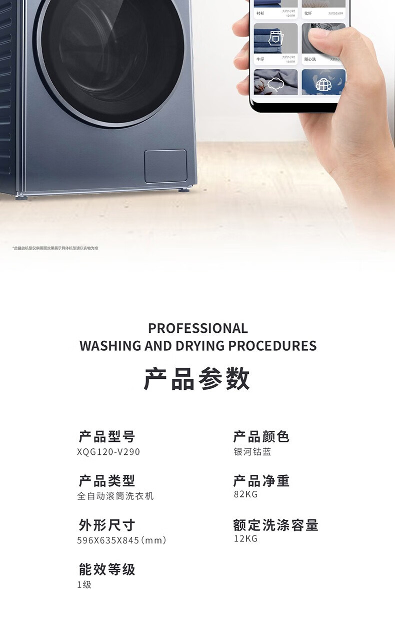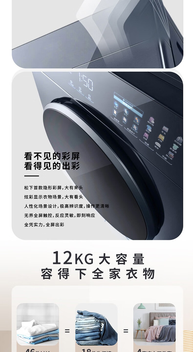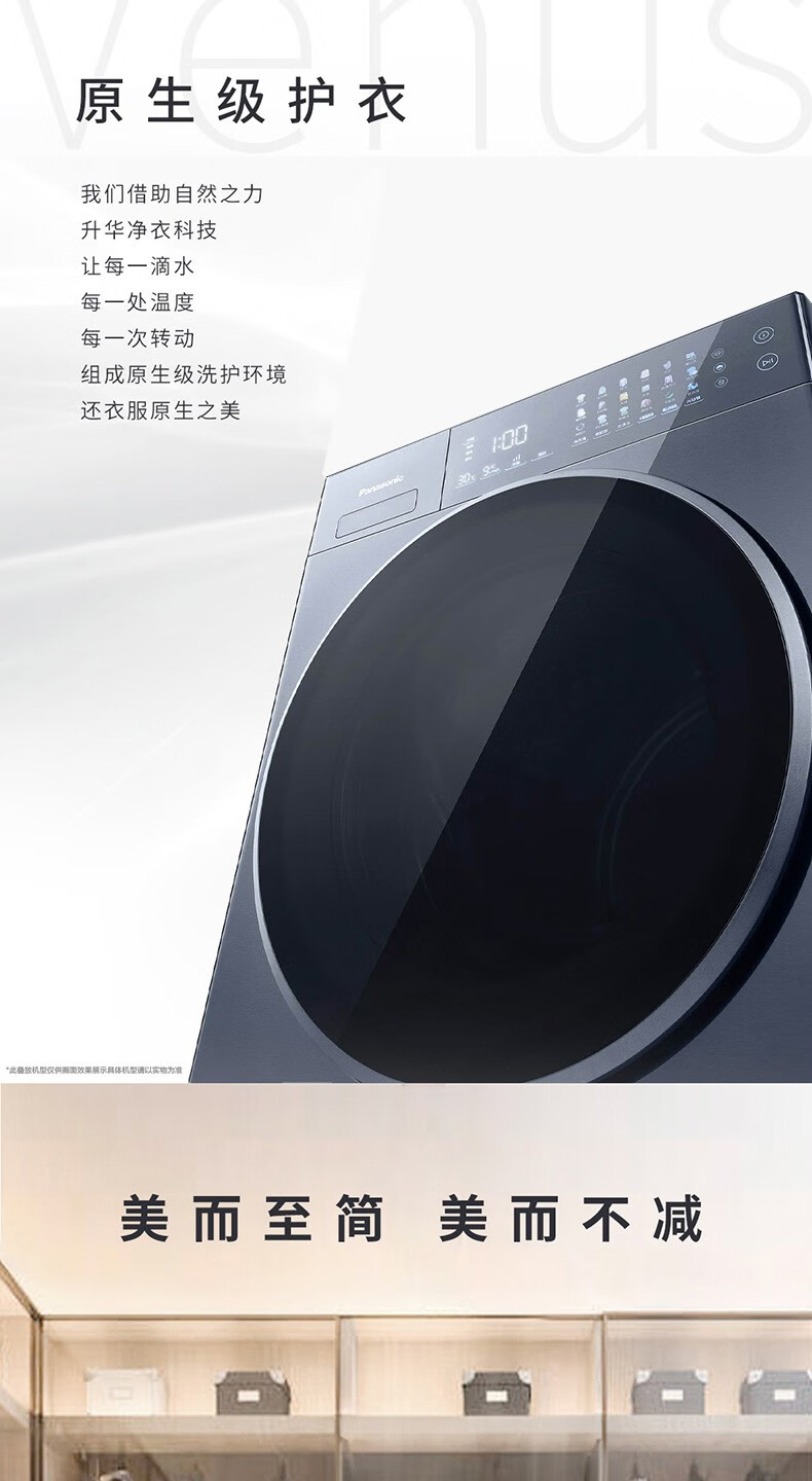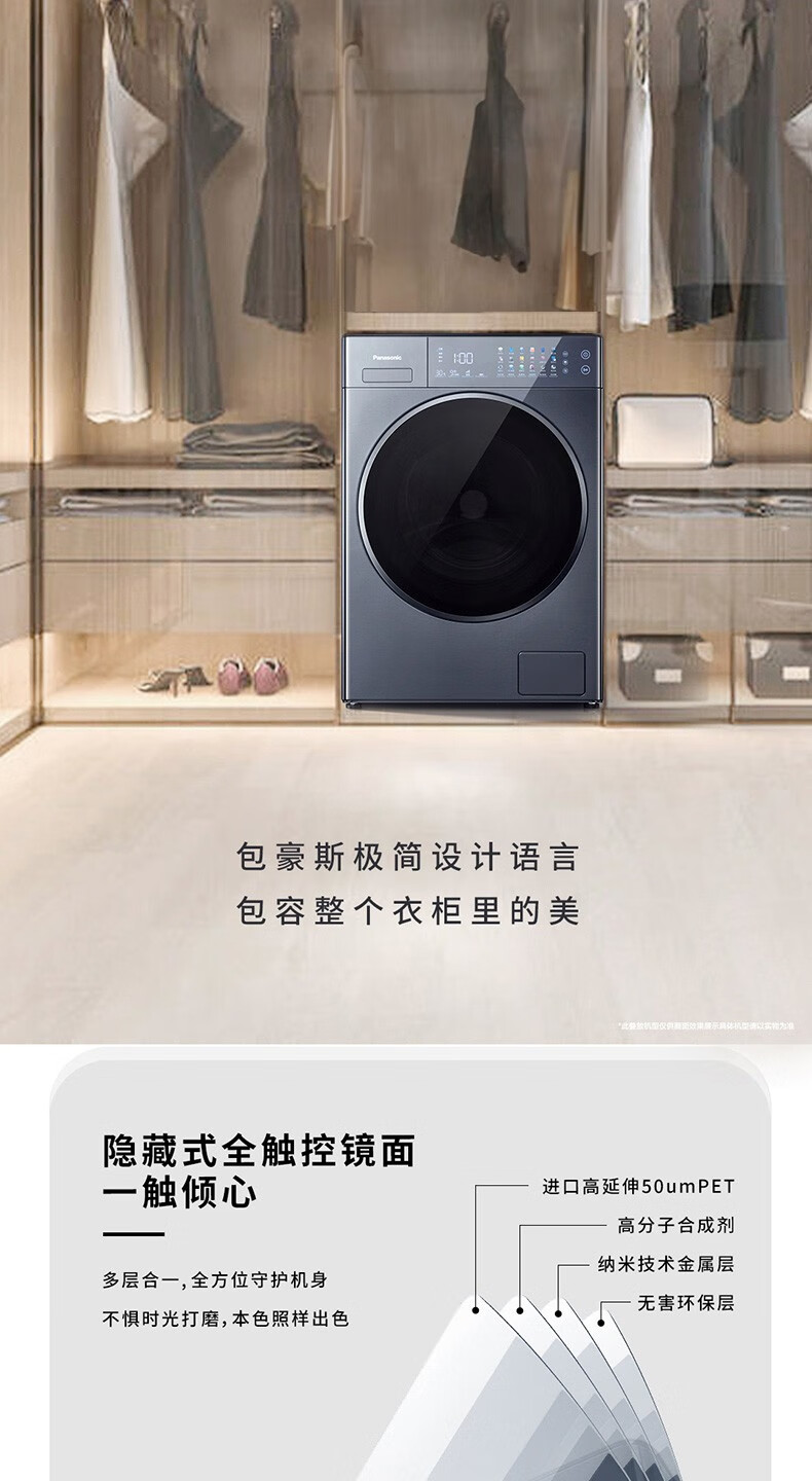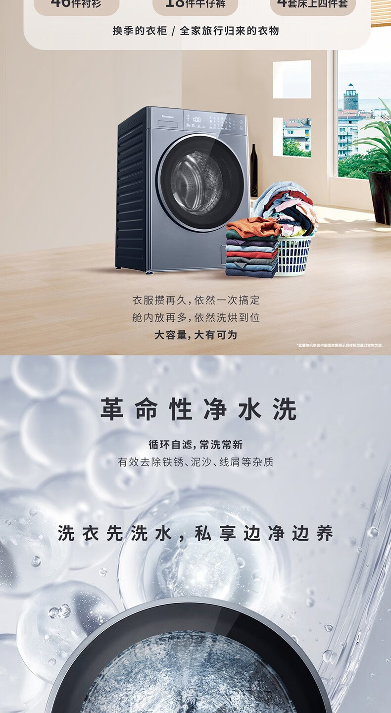 松下(Panasonic)纤镜12kg大容量净水洗智能投放水氧泡沫净光动银除菌触控镜面彩屏全自动变频滚筒洗衣机 银河钴蓝 XQG120-V290
