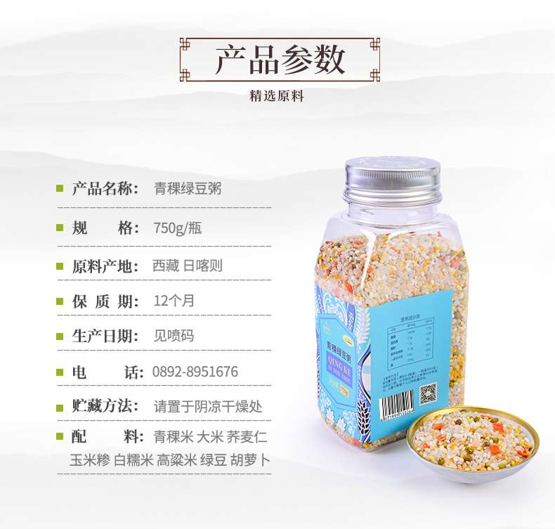 蓝天净土 青稞绿豆粥#750g/瓶*1
