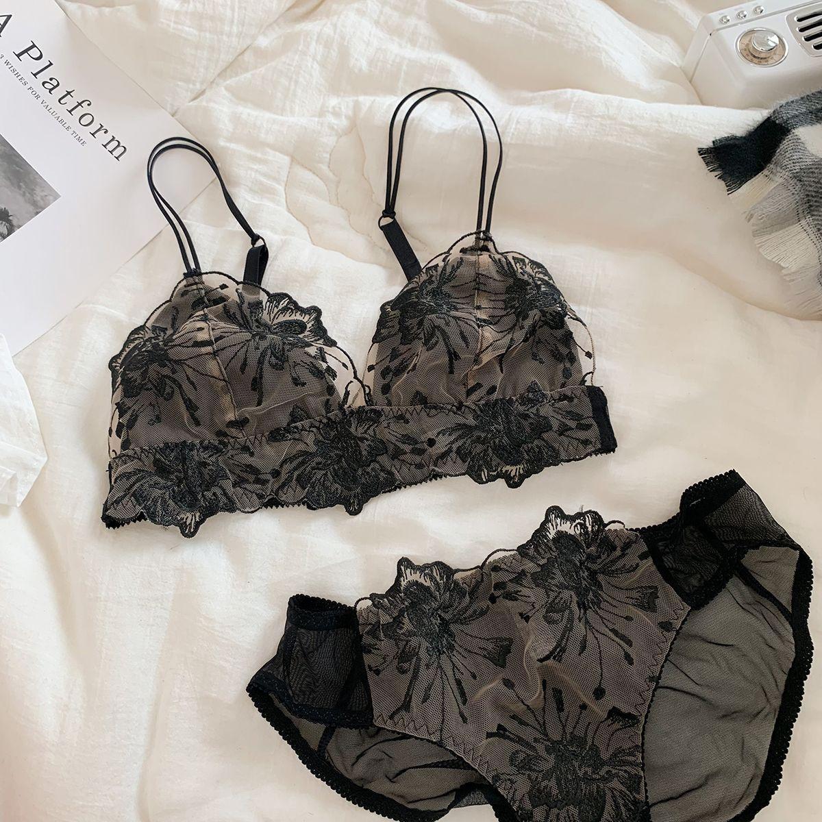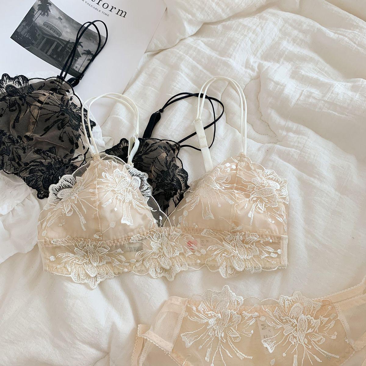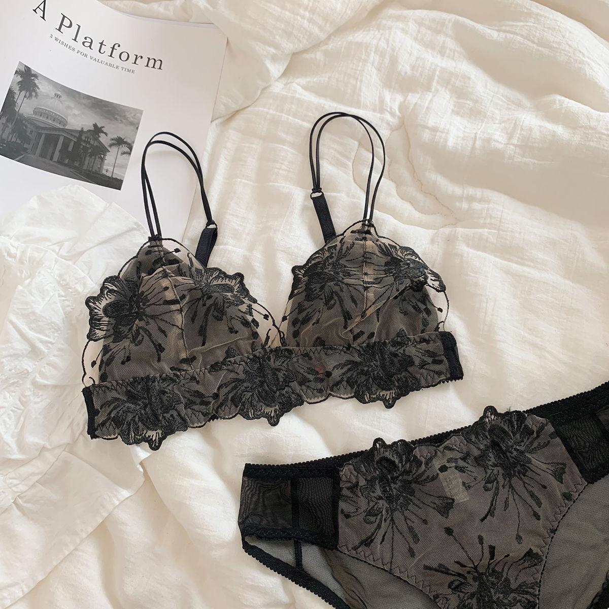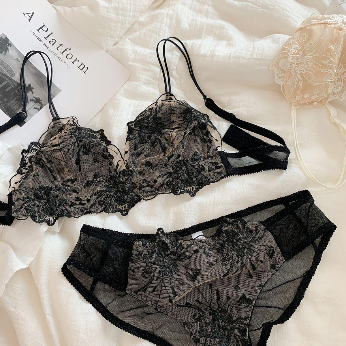 【纯欲法式💖轻薄聚拢】薄款蕾丝收副乳透气无钢圈法式聚拢内衣女士大胸显小胸纯欲文胸罩内裤套装,大胸显小的秘密武器!透气无钢圈,舒适一整天✨
