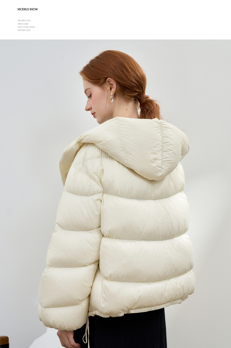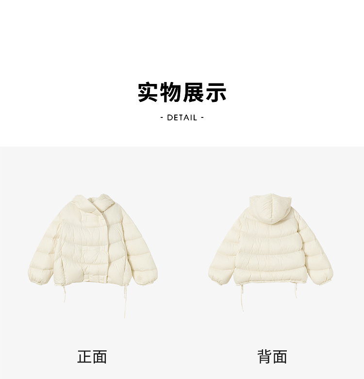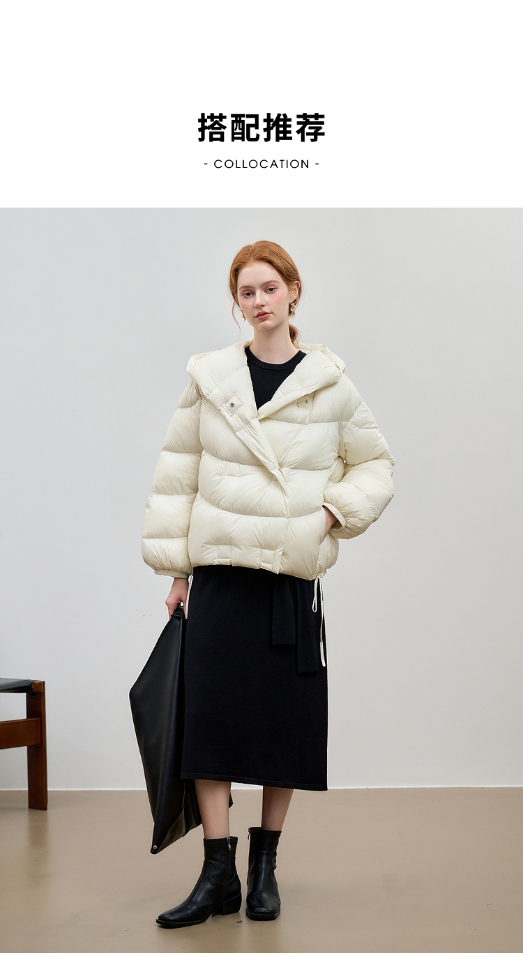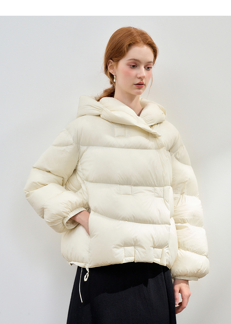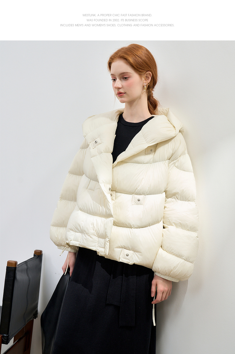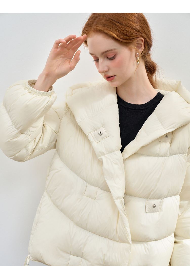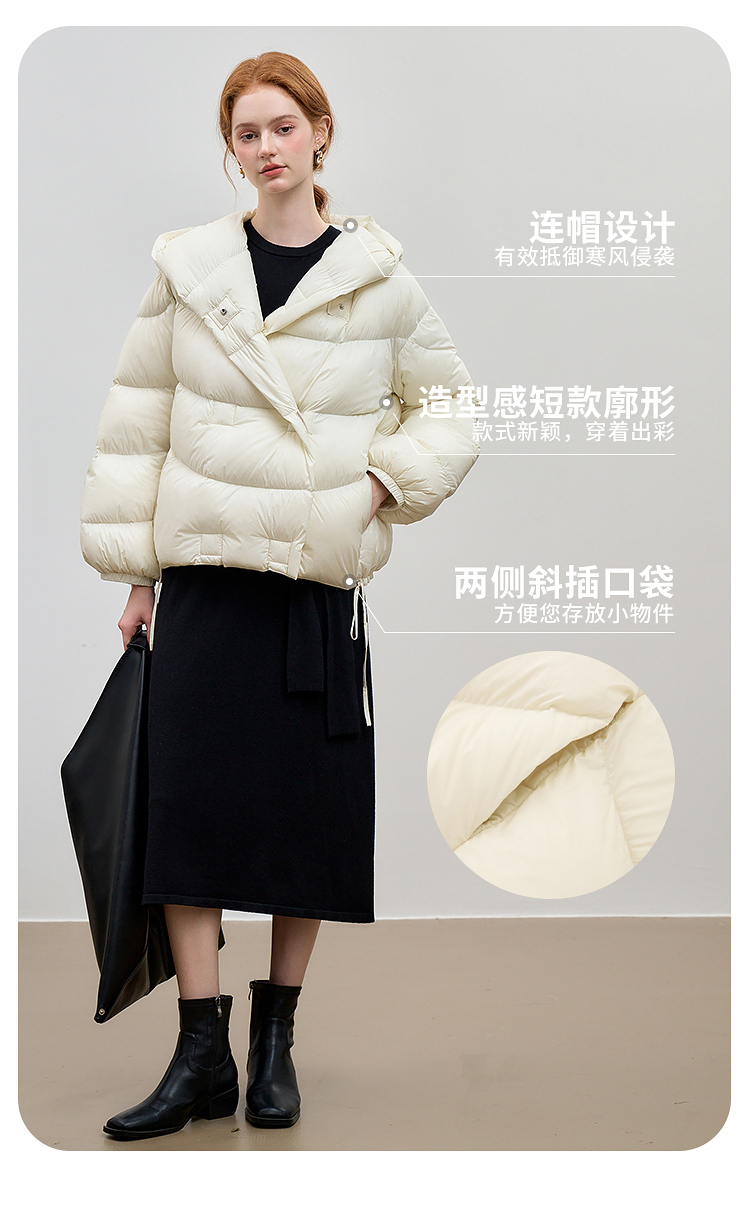 西遇时尚连帽保暖白色羽绒服女冬季小个子新款洋气短款面包服M0043054