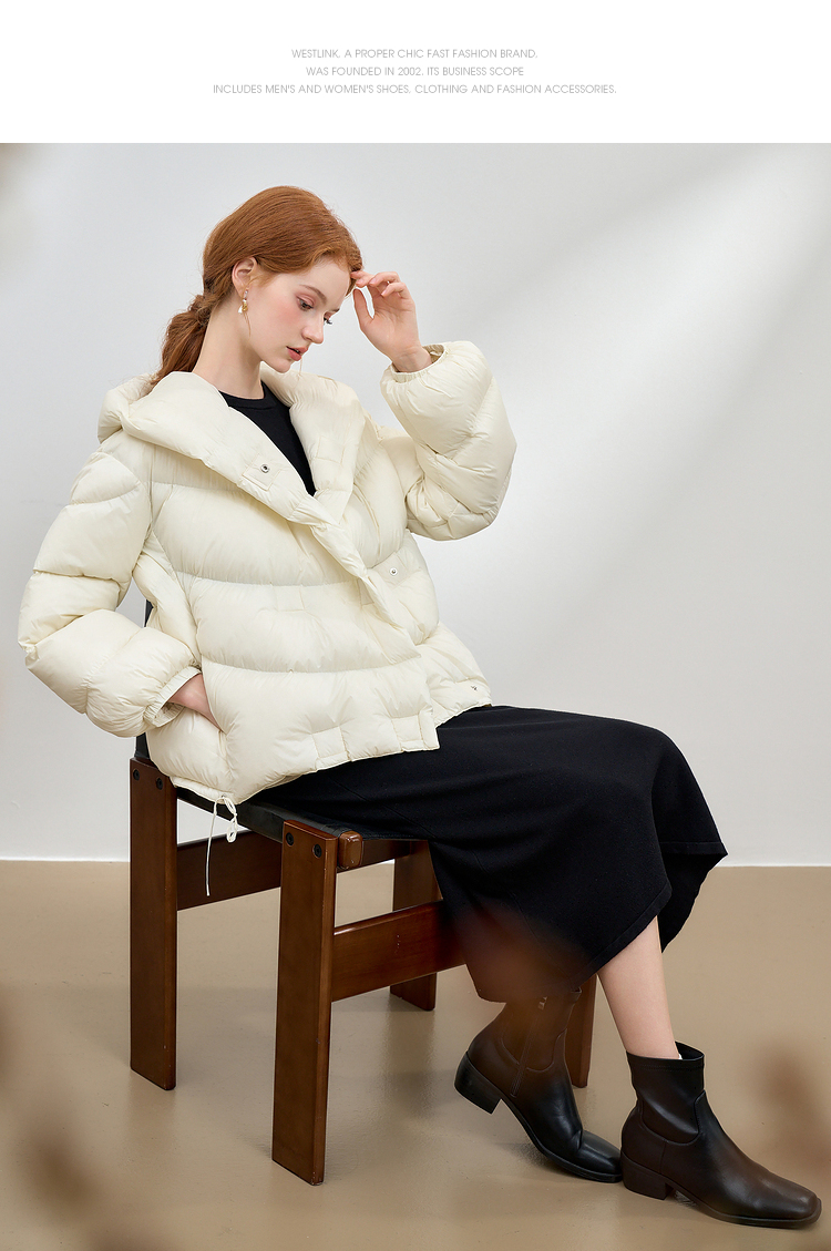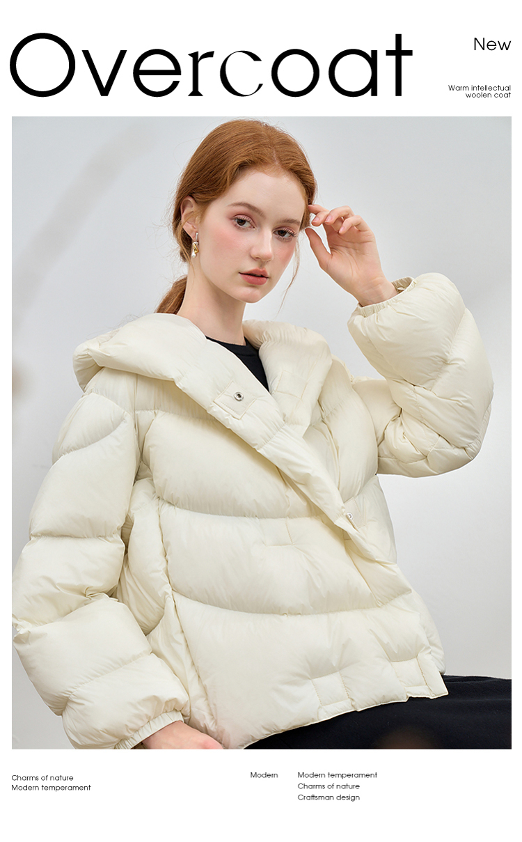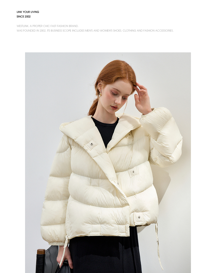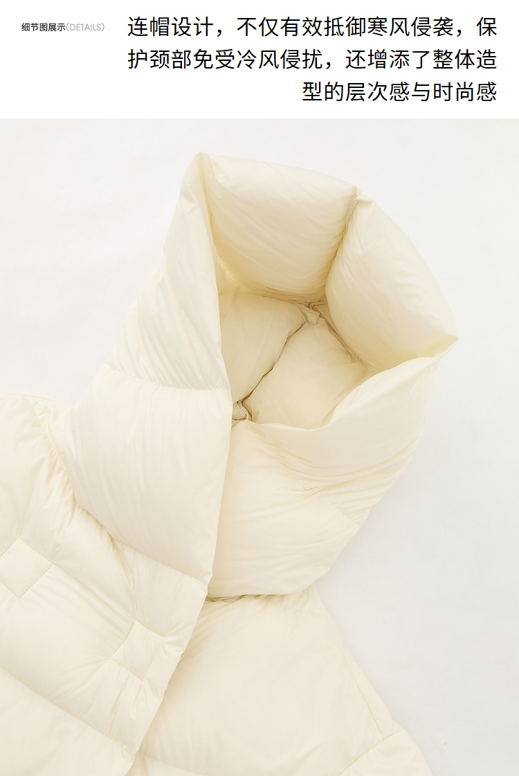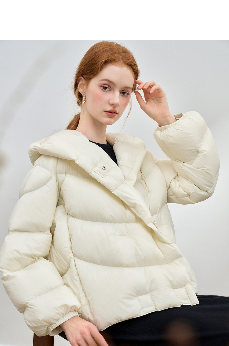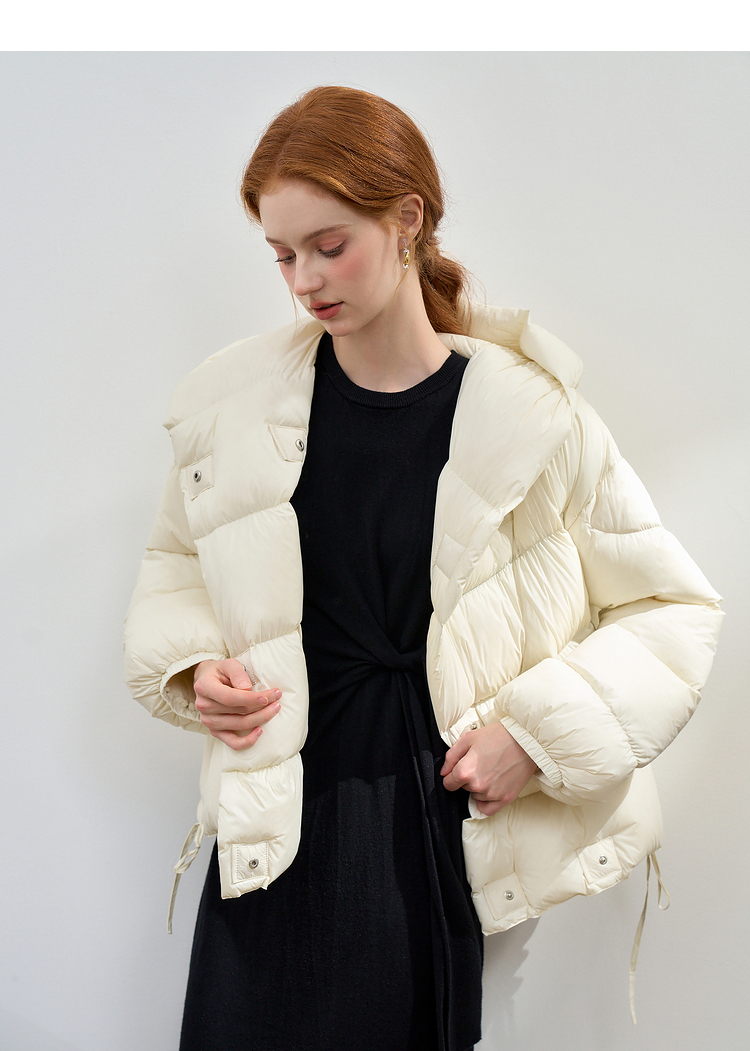 西遇时尚连帽保暖白色羽绒服女冬季小个子新款洋气短款面包服M0043054