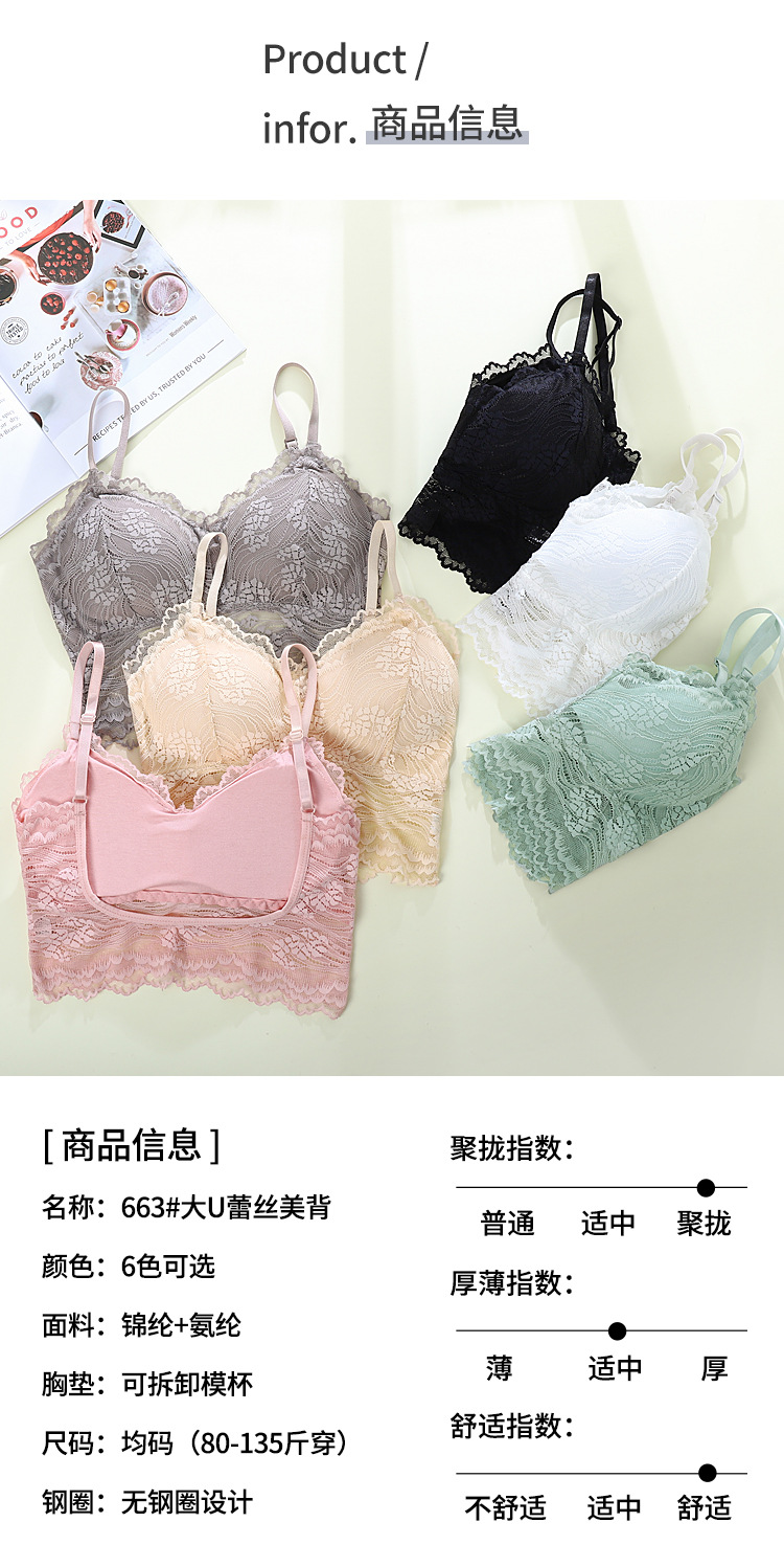 【U家同款!高弹美背内衣】仙美大u型美背蕾丝吊带 背心打底防走光 裹胸透气无痕 内搭聚拢性感抹胸