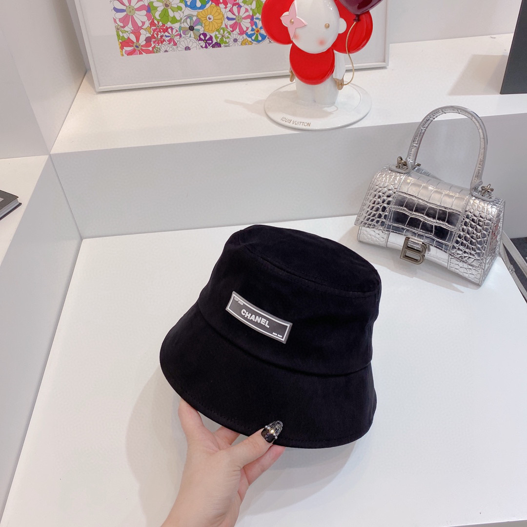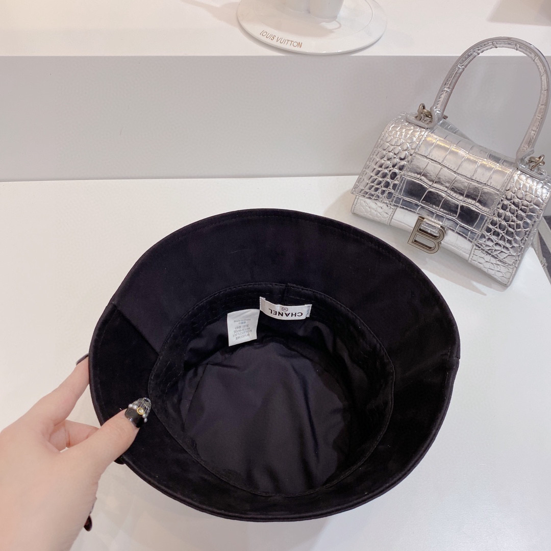 chanel小香shi家新款彩色纯棉渔夫🔝帽-黑色