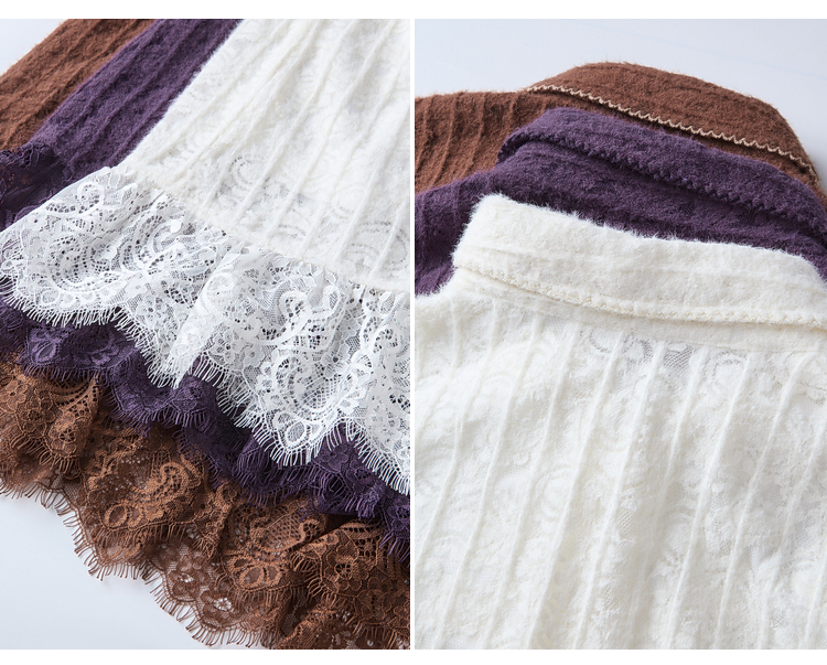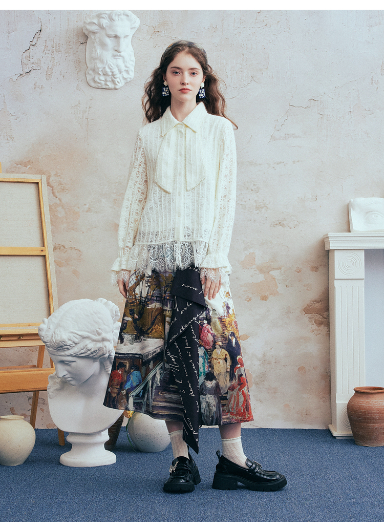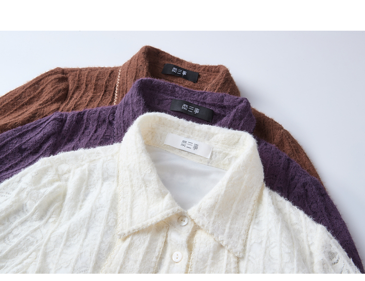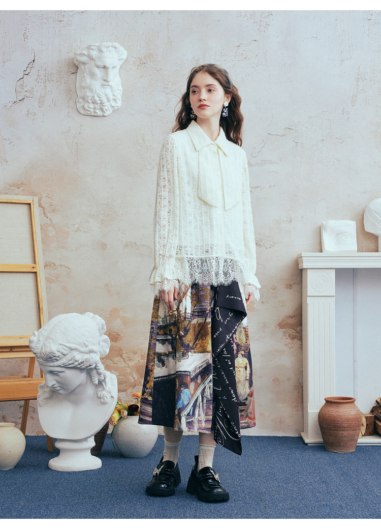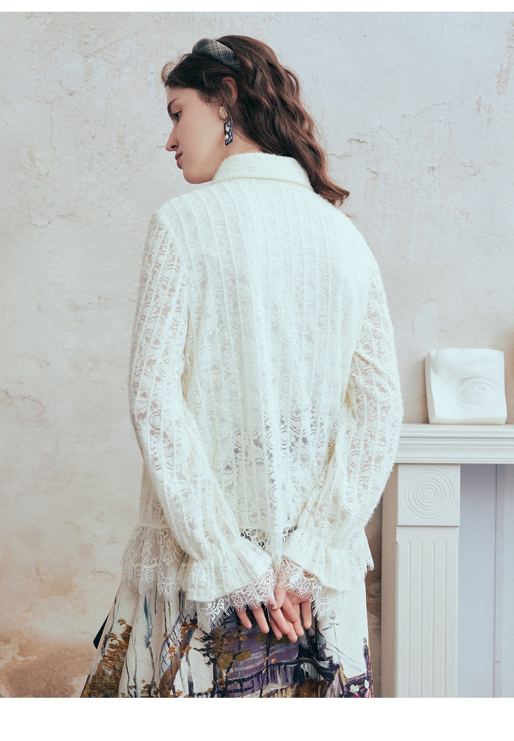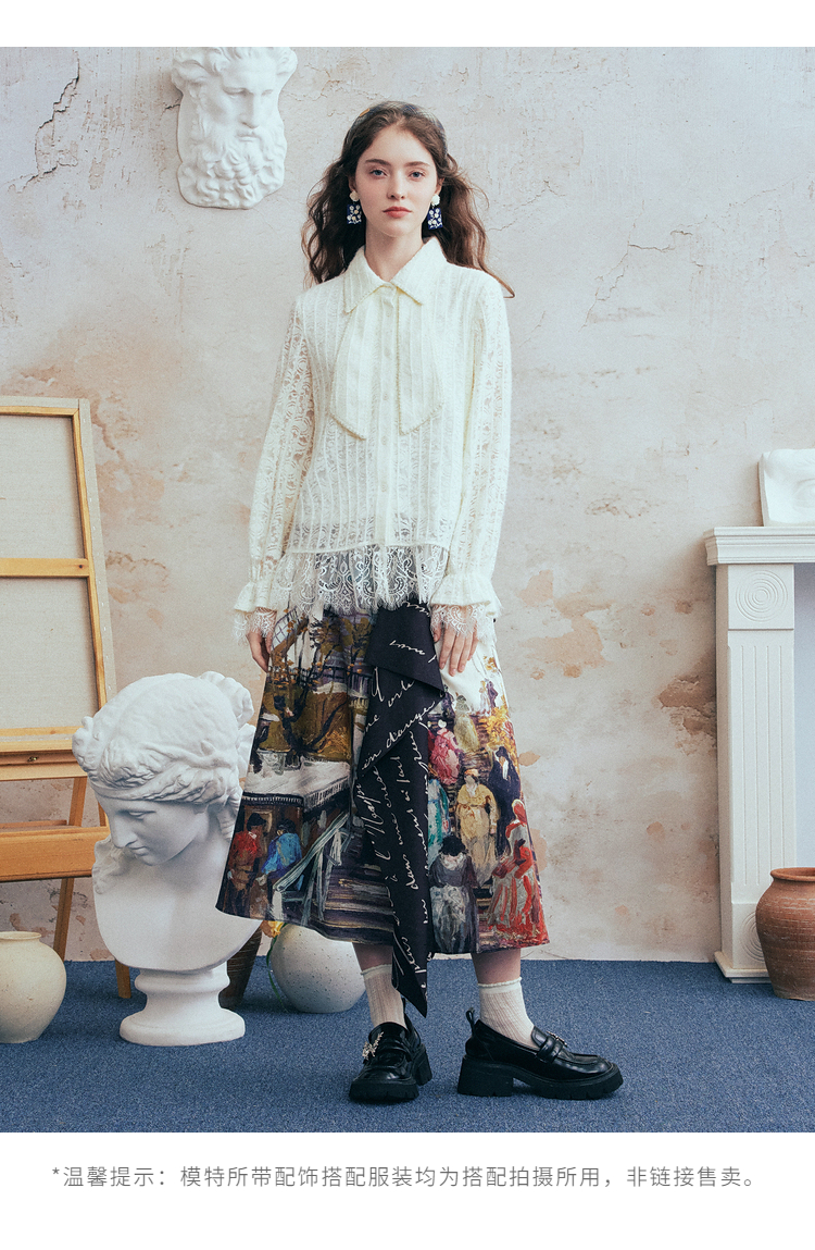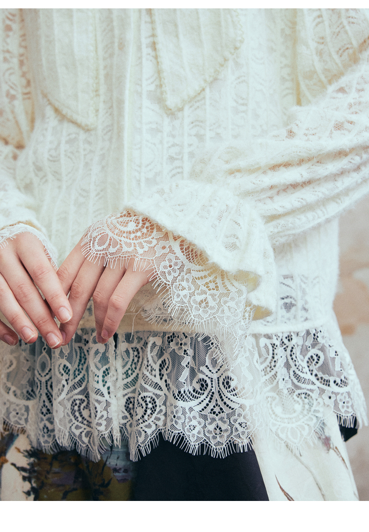 两三事 寂静云彩 2026春季新款复古蝴蝶结翻领镂空蕾丝长袖衬衫女