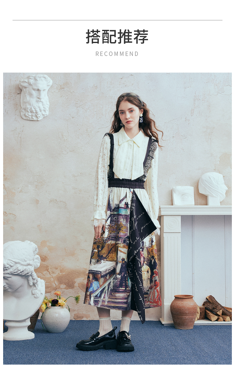 两三事梵高艺术花也谈情夏季压褶拼接印花两面穿雪纺衫女
