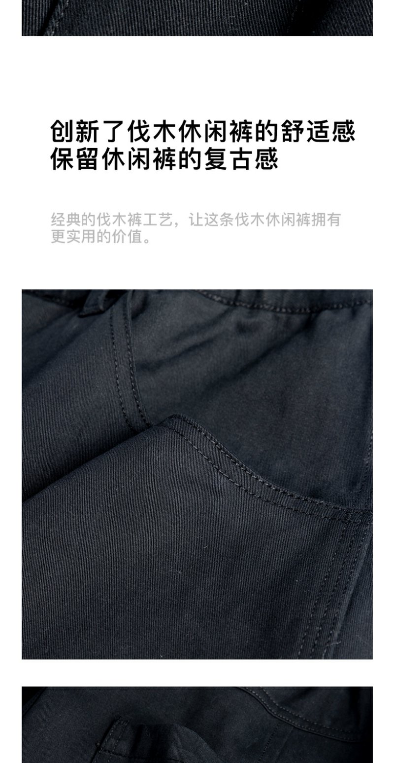 REDCHARCOAL 红炭黑色抽绳直筒伐木休闲裤男新款宽松百搭男士裤子 商品图2