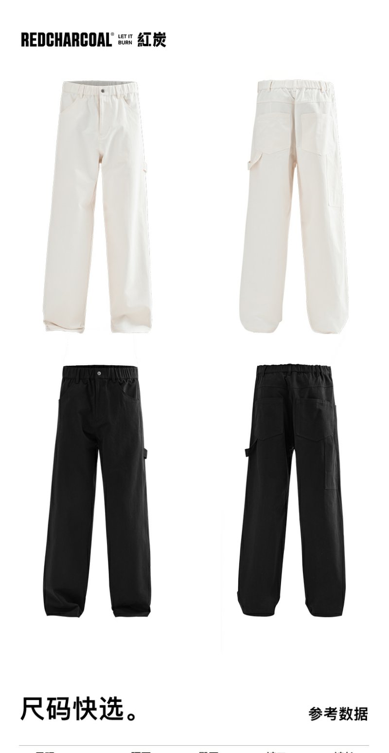 REDCHARCOAL 红炭黑色抽绳直筒伐木休闲裤男新款宽松百搭男士裤子 商品图1