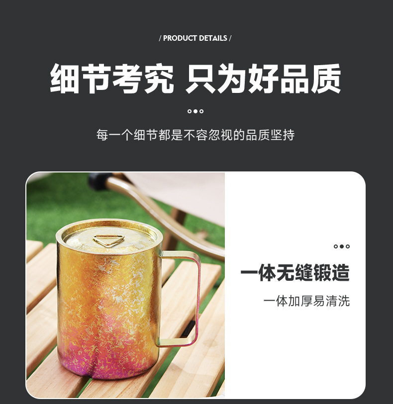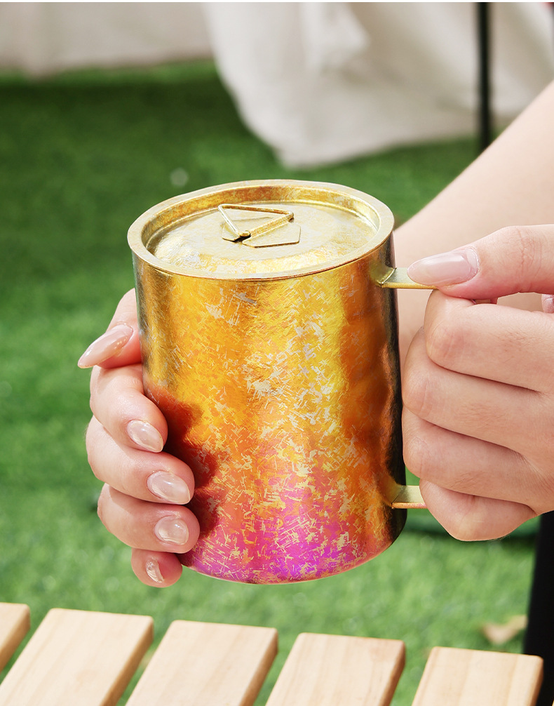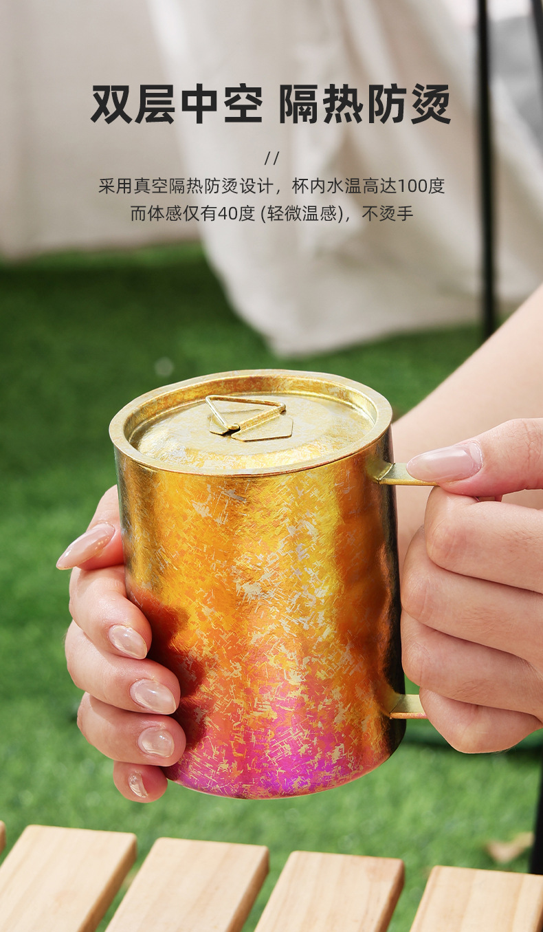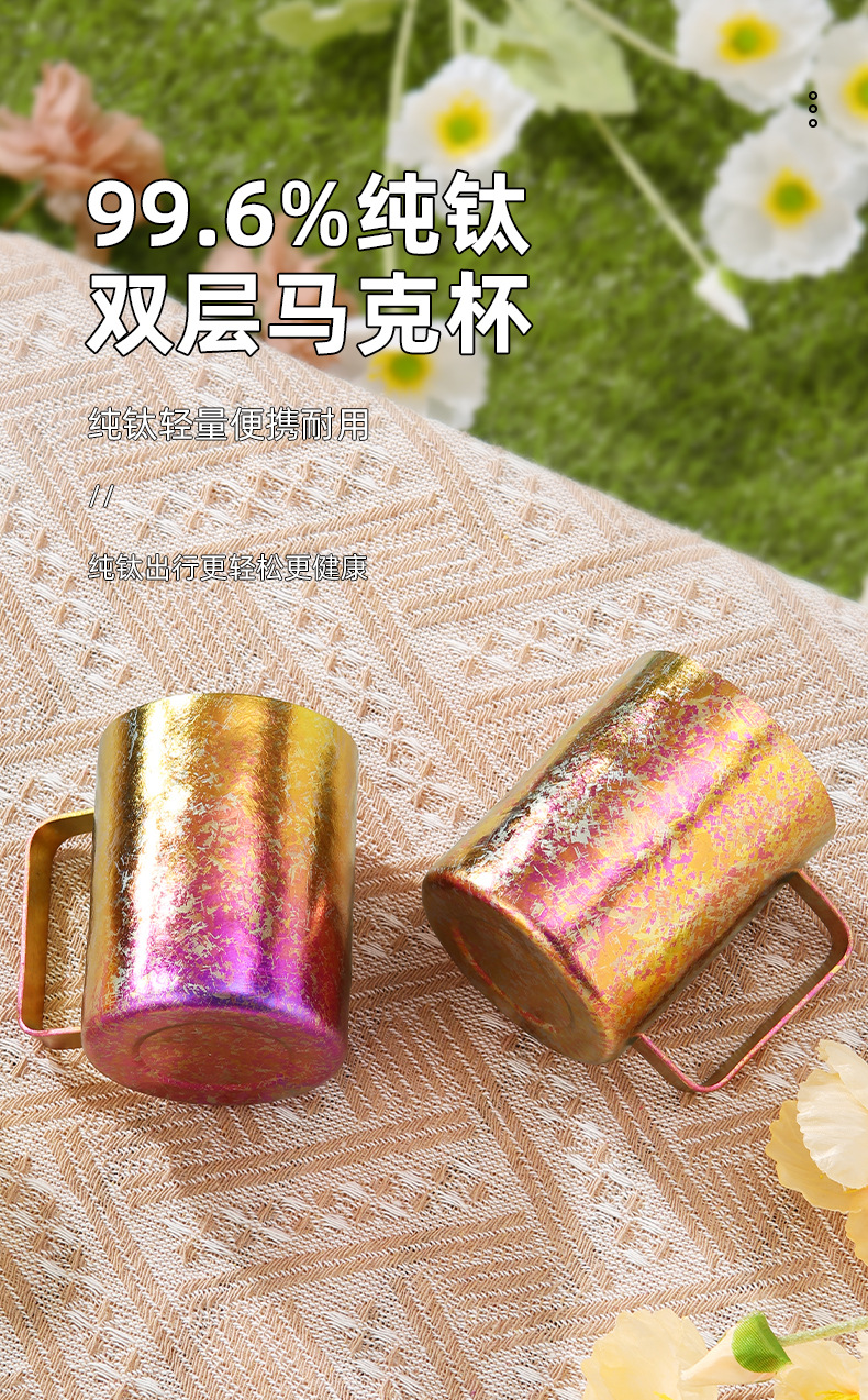 【纯钛双层马克杯】纯钛马克杯双层隔热咖啡杯高端带手把保温杯办公桌面杯高颜值水杯