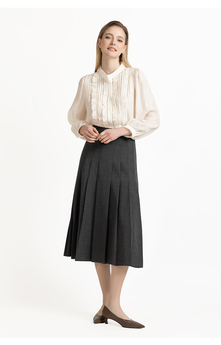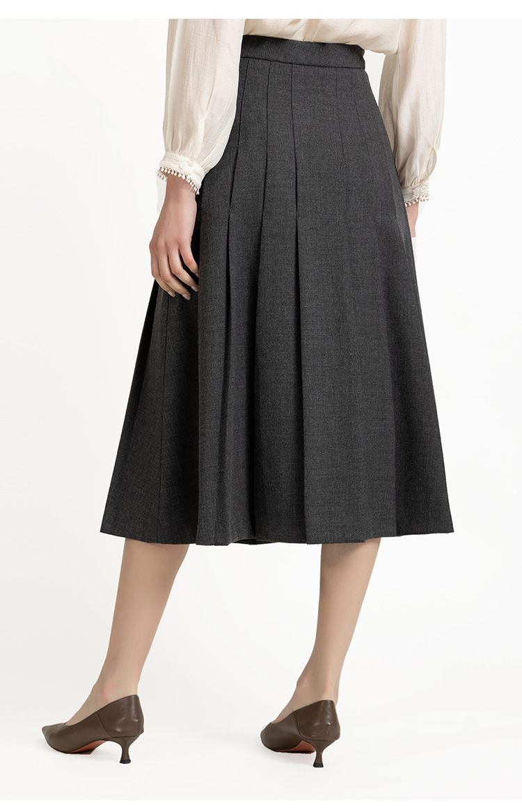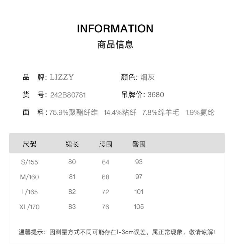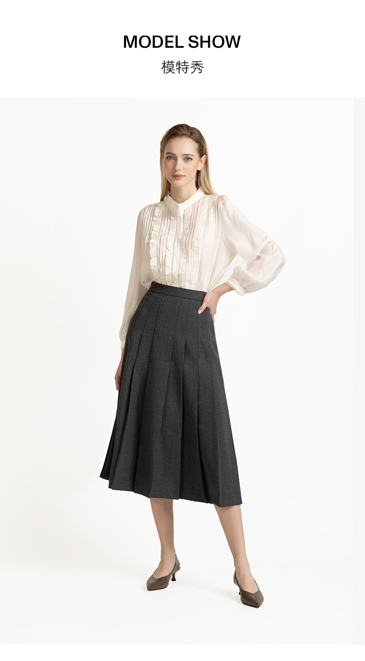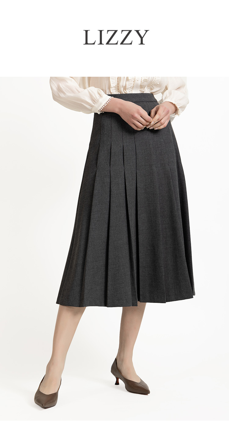 LIZZY早秋优雅简约风高腰百搭A字百褶通勤气质显瘦半身裙8078