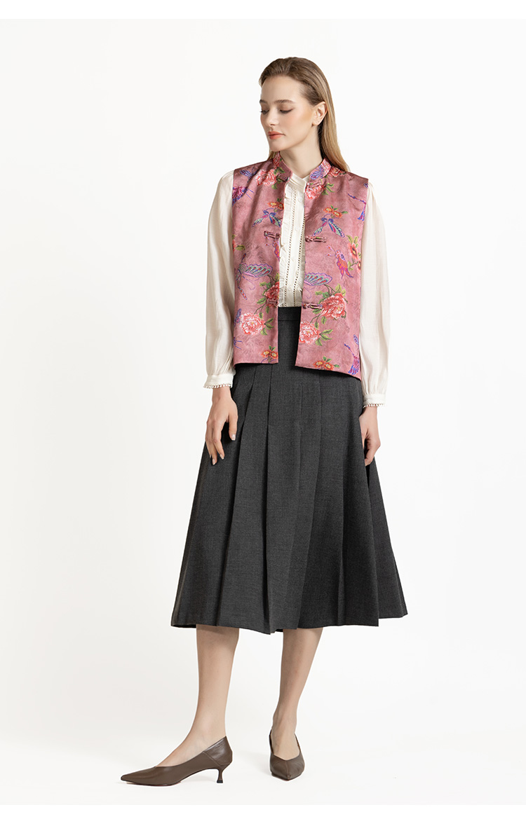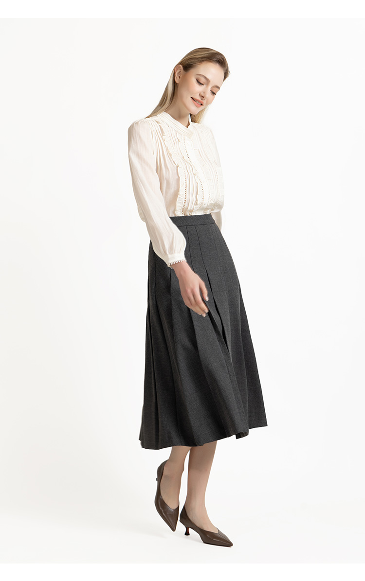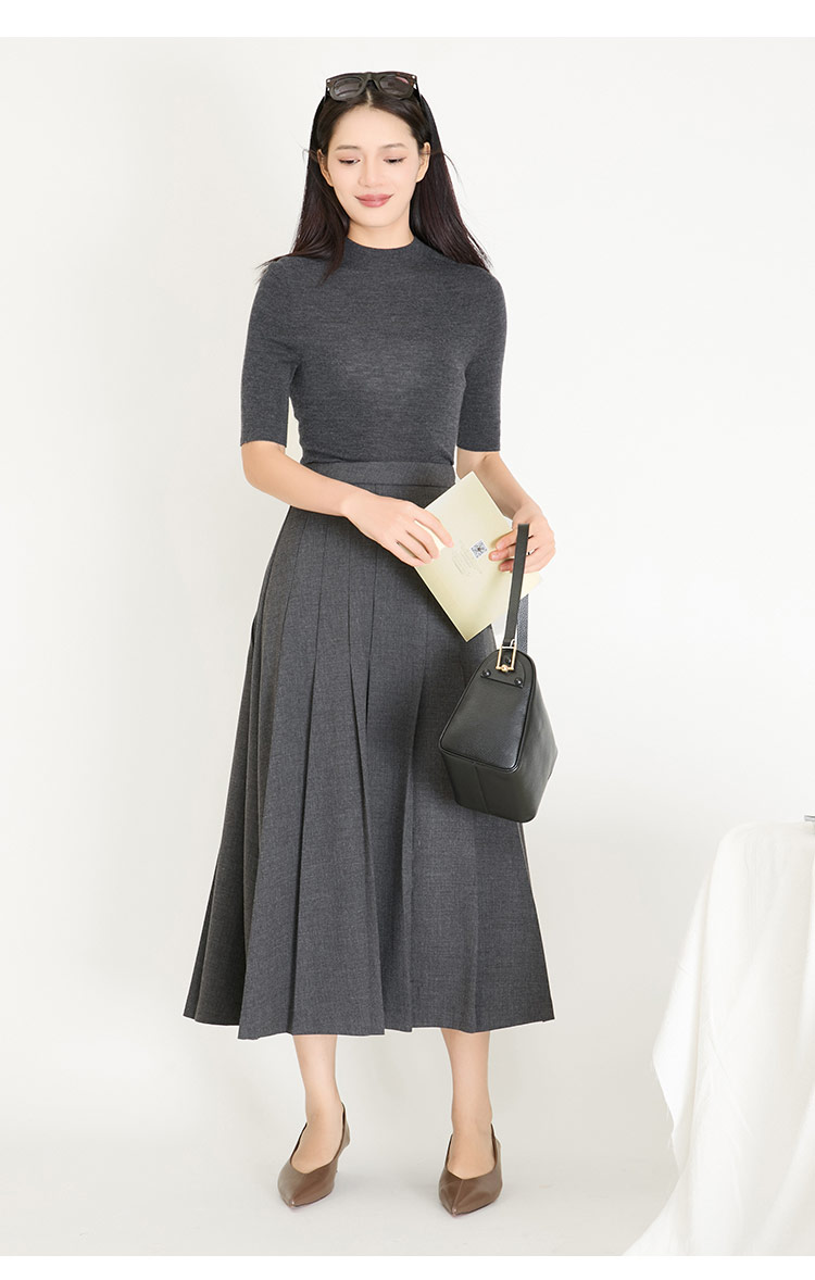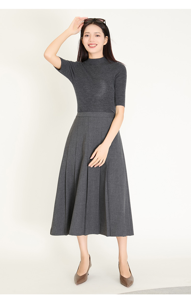LIZZY早秋优雅简约风高腰百搭A字百褶通勤气质显瘦半身裙8078