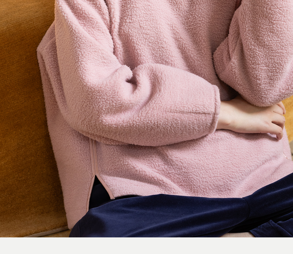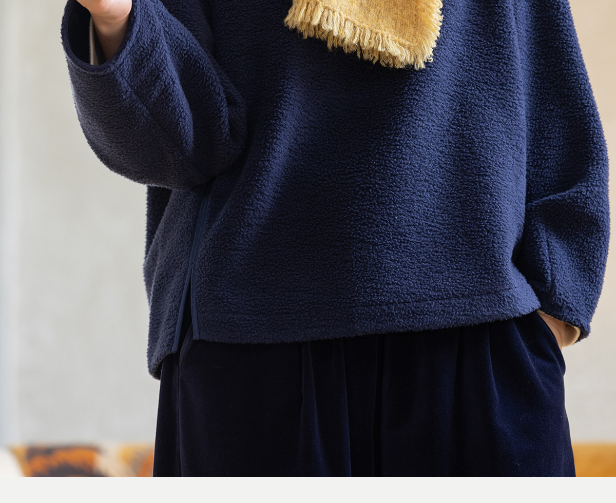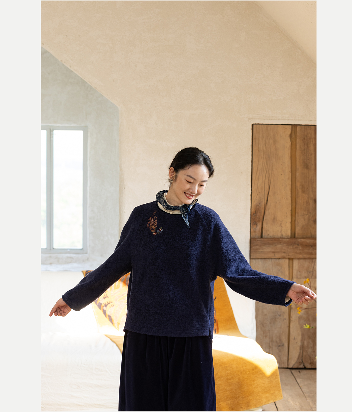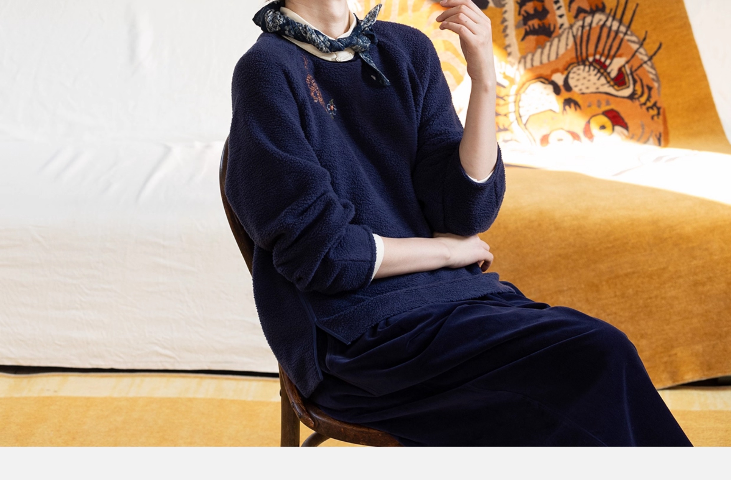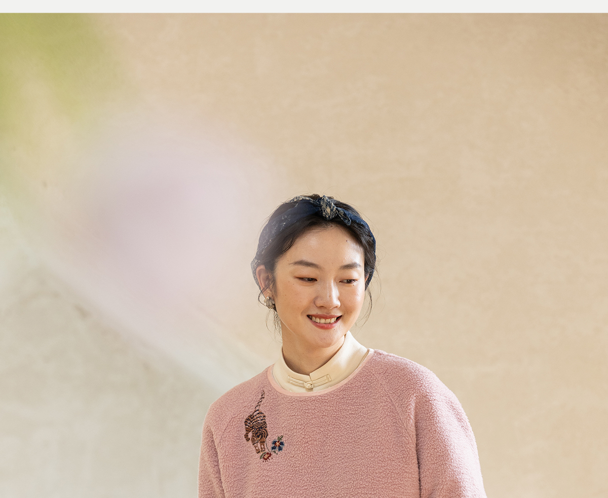 牧衣游原创 老虎与花手工刺绣卫衣冬舒适圆领宽松保暖上衣 松木白