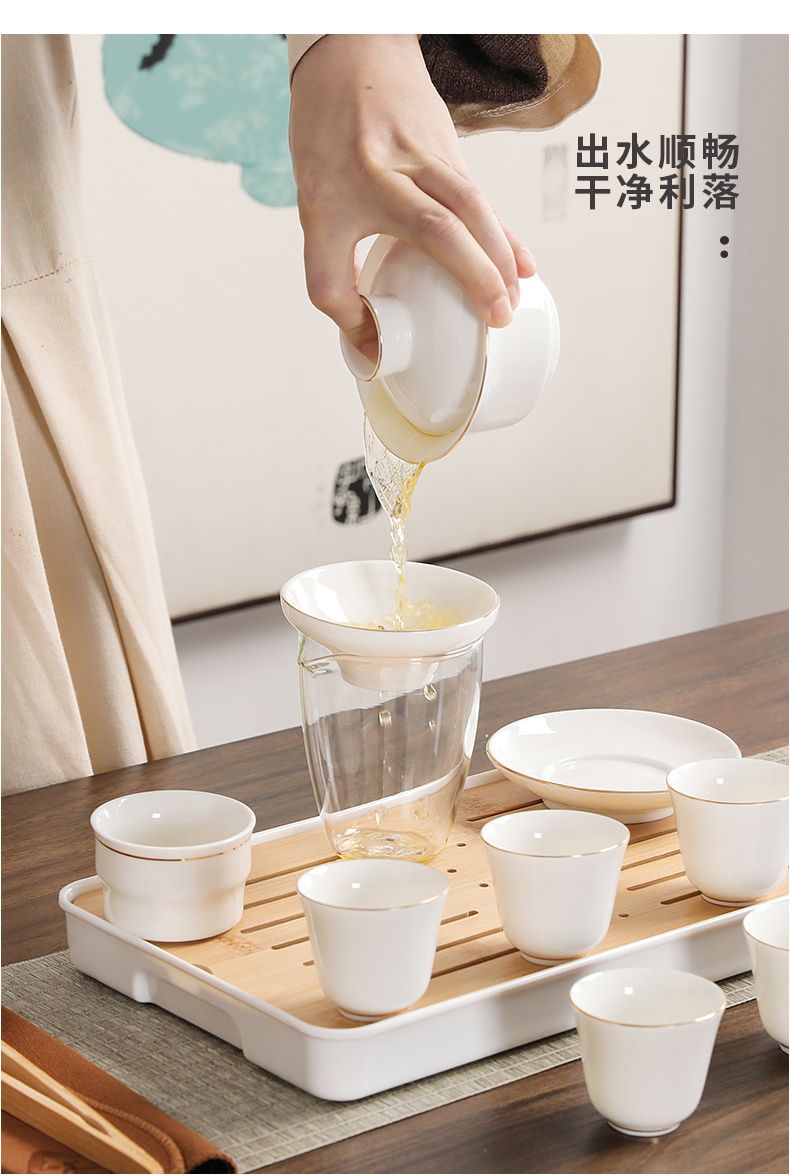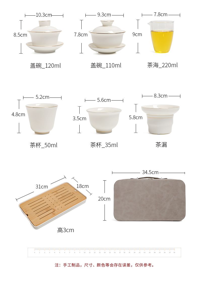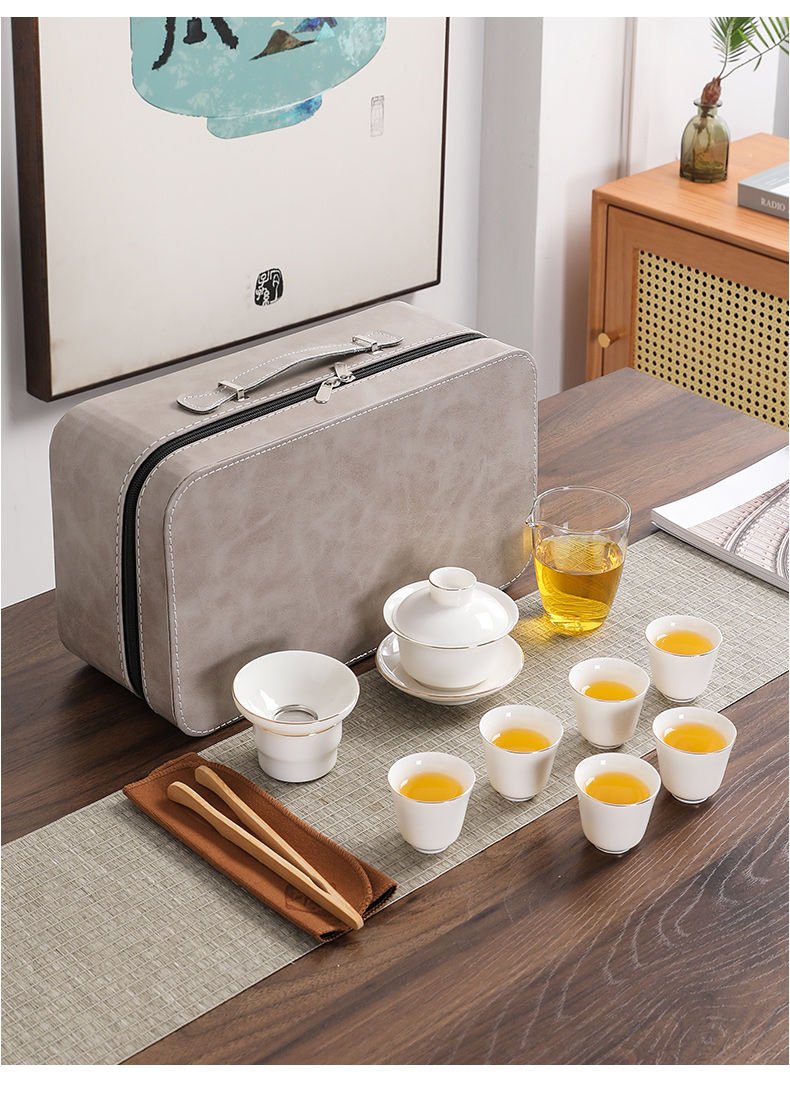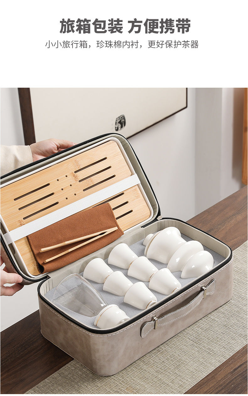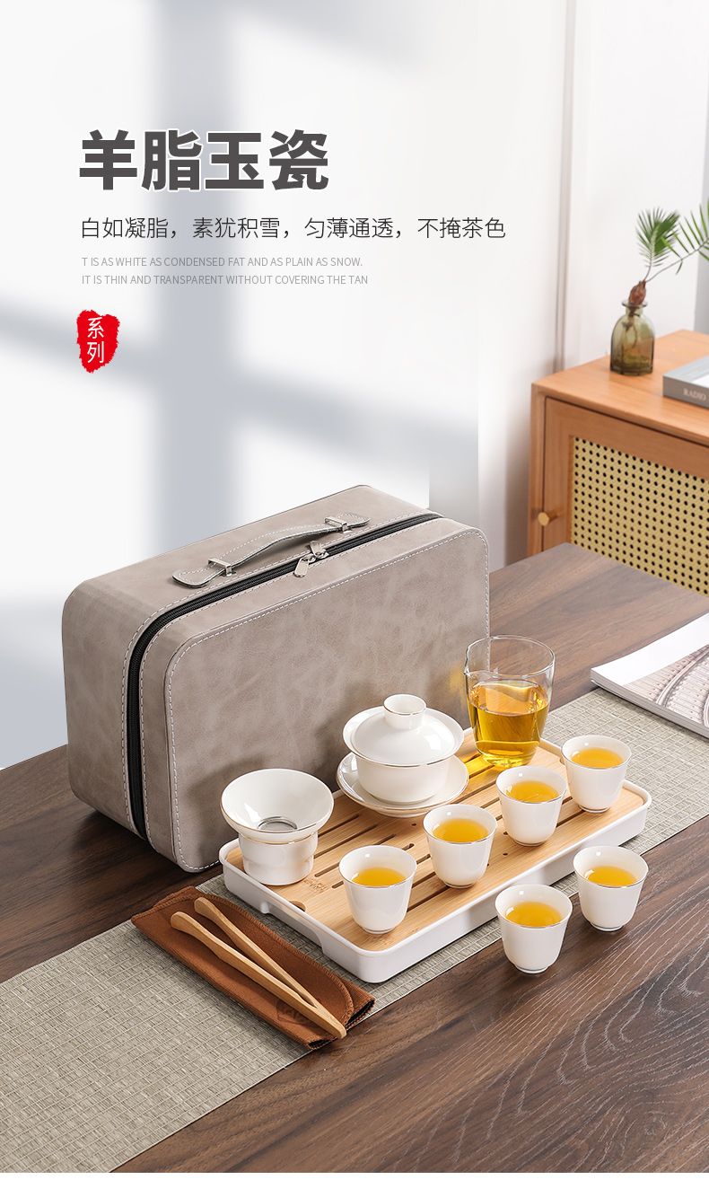 旅行茶具套装羊脂玉家用户外便携式收纳泡茶杯露营功夫茶具高档白