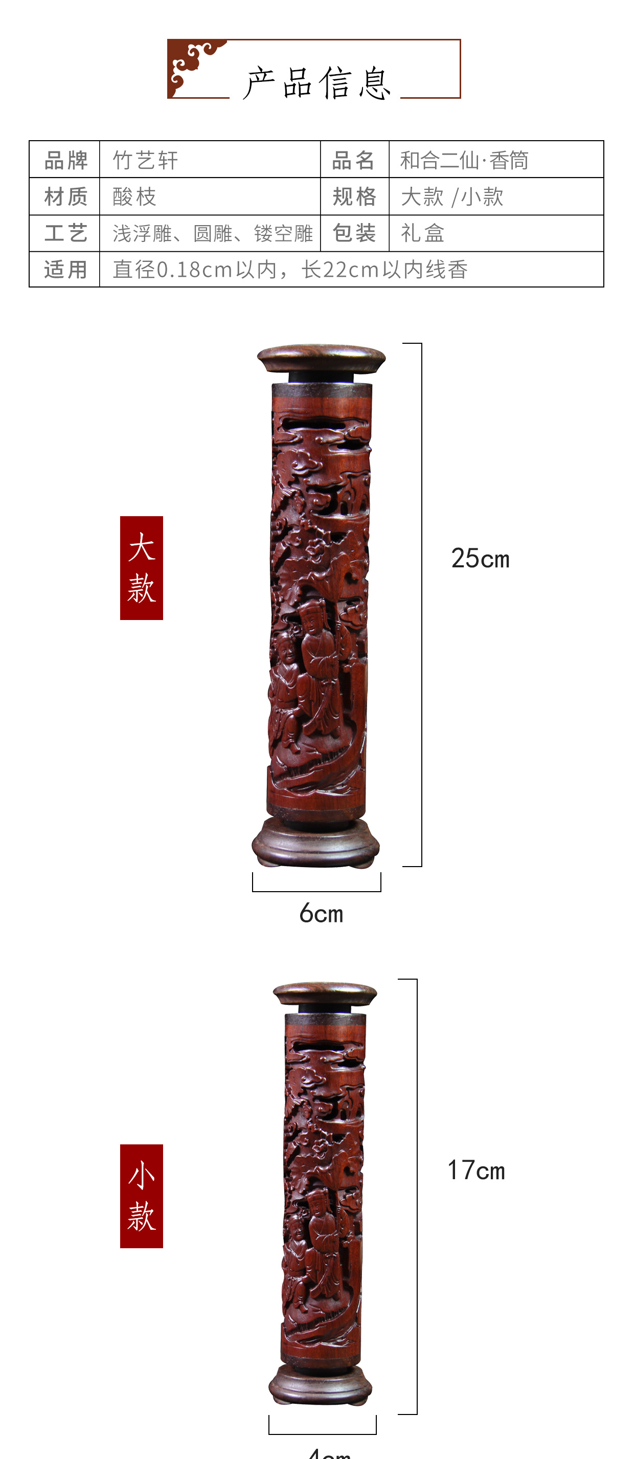 和合二仙°大&小款酸枝香筒