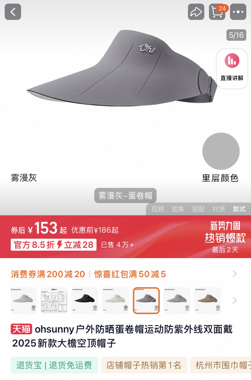 💰79元包邮, 【没有吊牌,其他一致】,保真,oh sunny防晒空顶帽