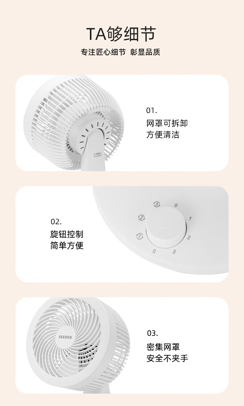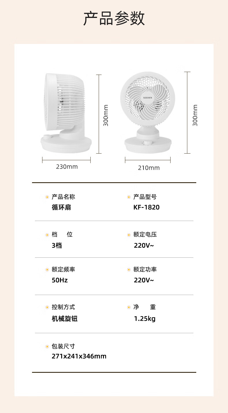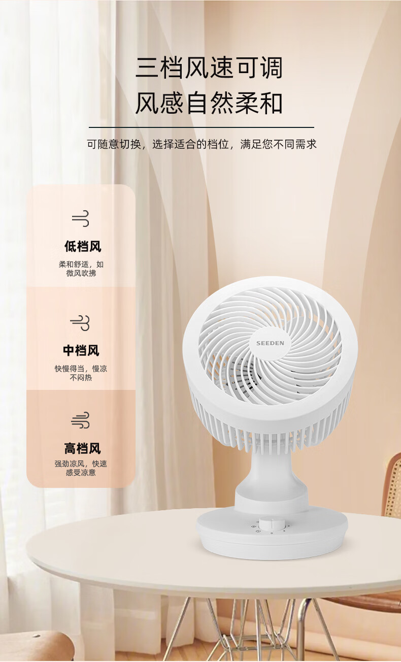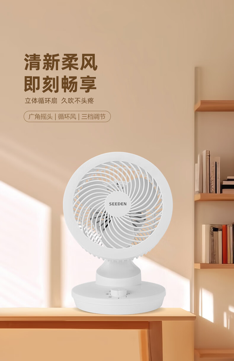 SEEDEN西点 空气循环扇家用台式电风扇桌面轻音小风扇台扇电风扇 KF-1820