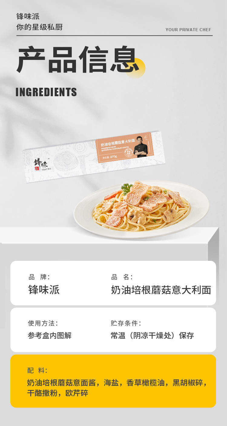 锋味 奶油培根蘑菇意大利面*3盒