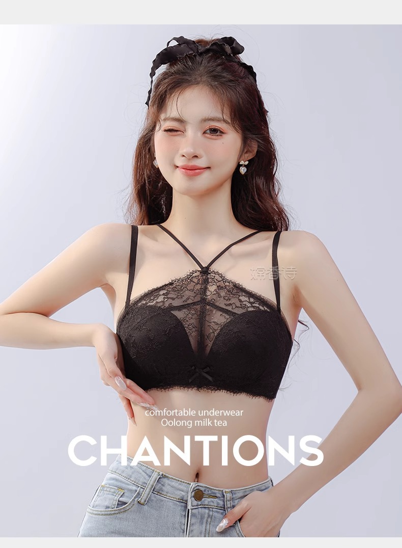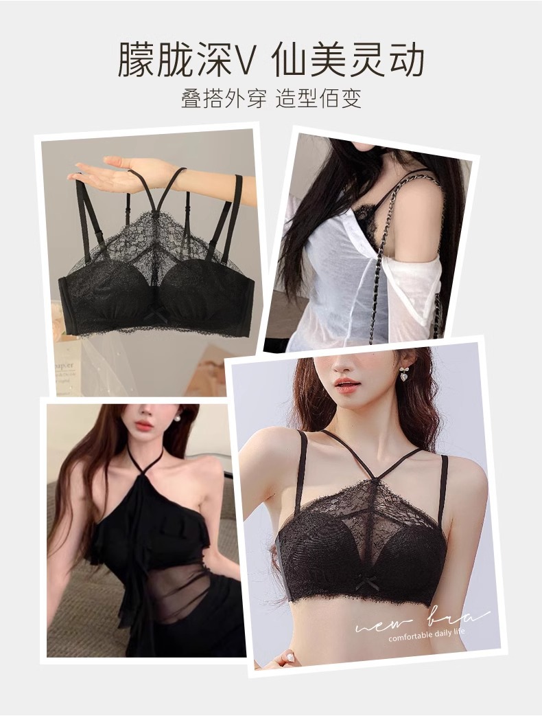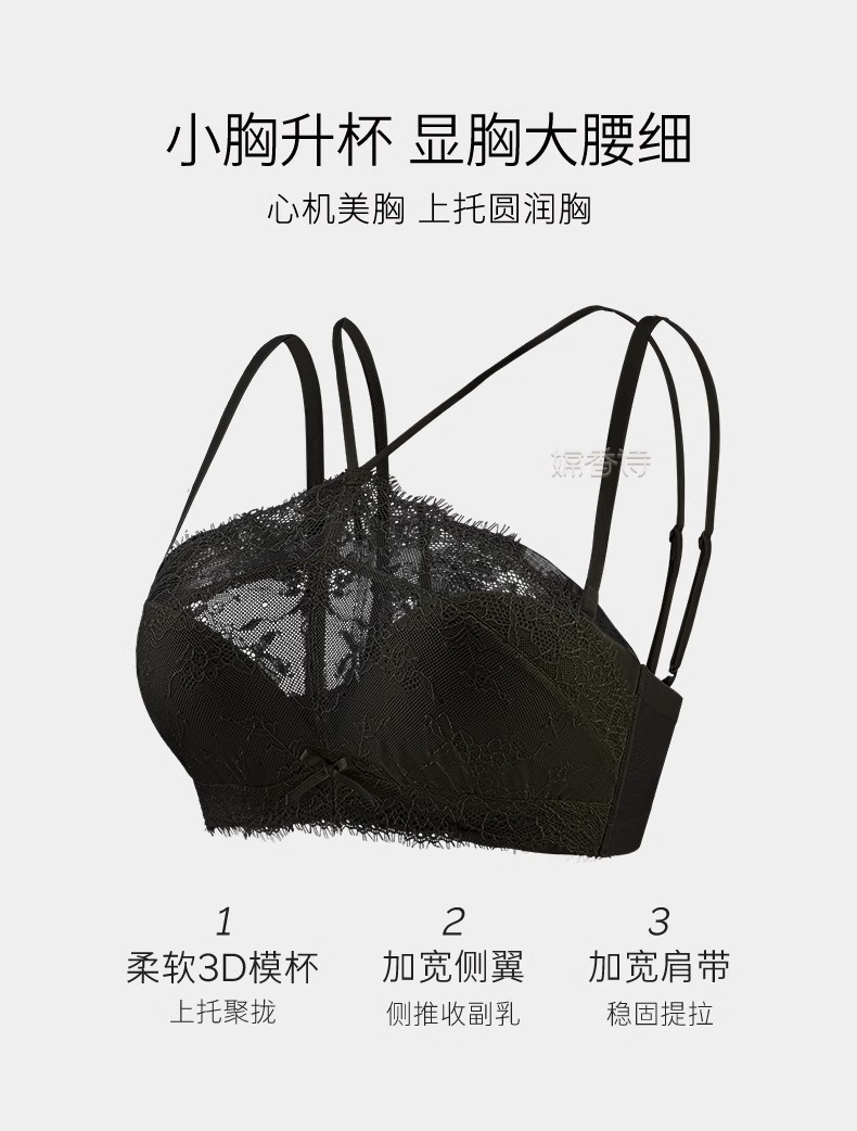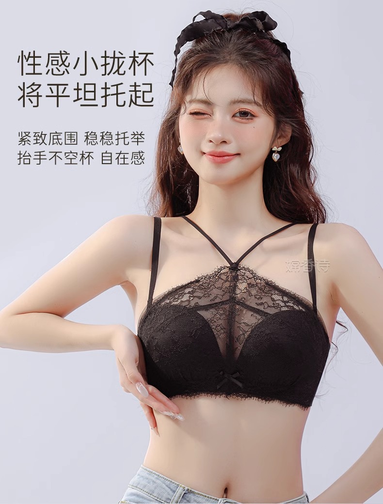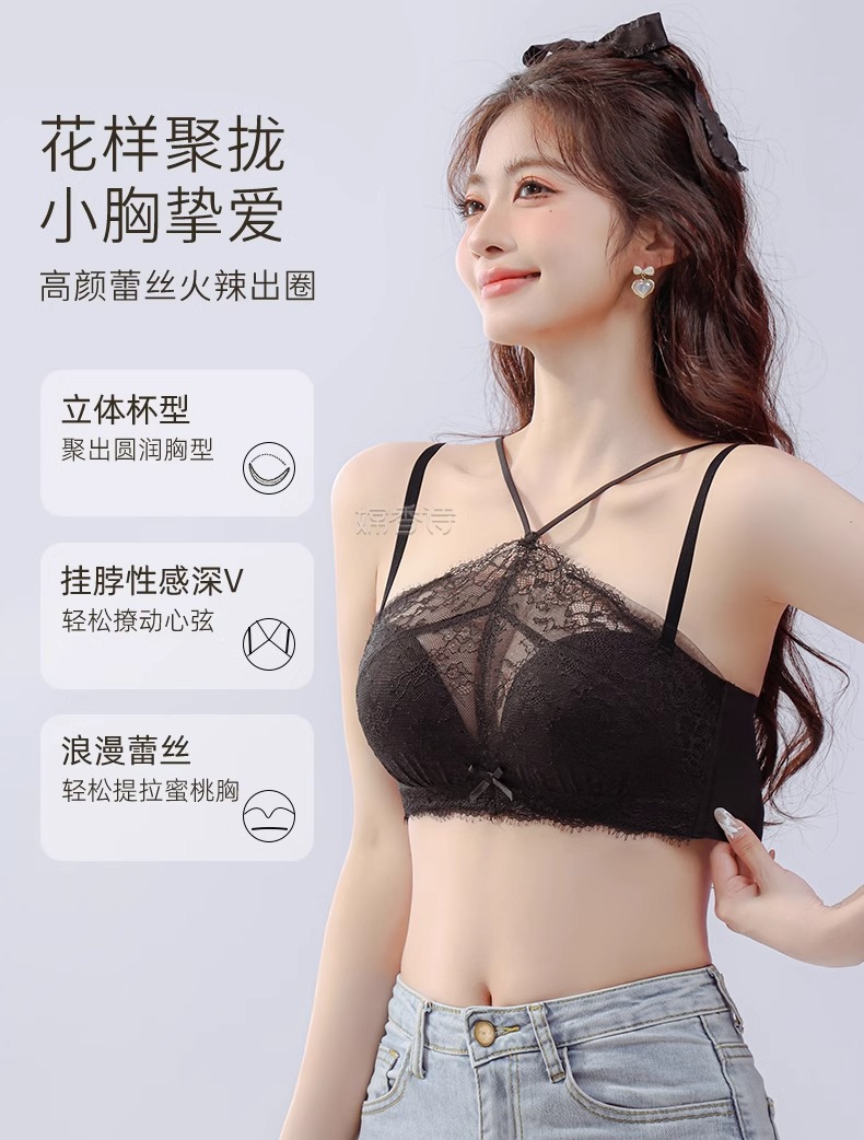 挂脖抹胸式无肩带内衣女 学生内衣小红书推荐爆款 聚拢防滑小胸显大性感蕾丝防走光文胸罩夏