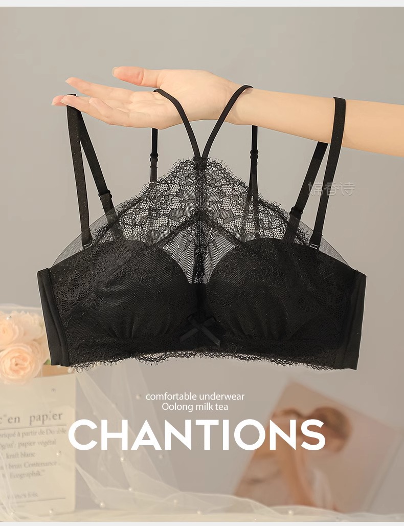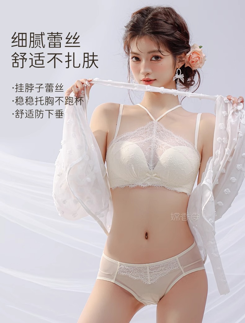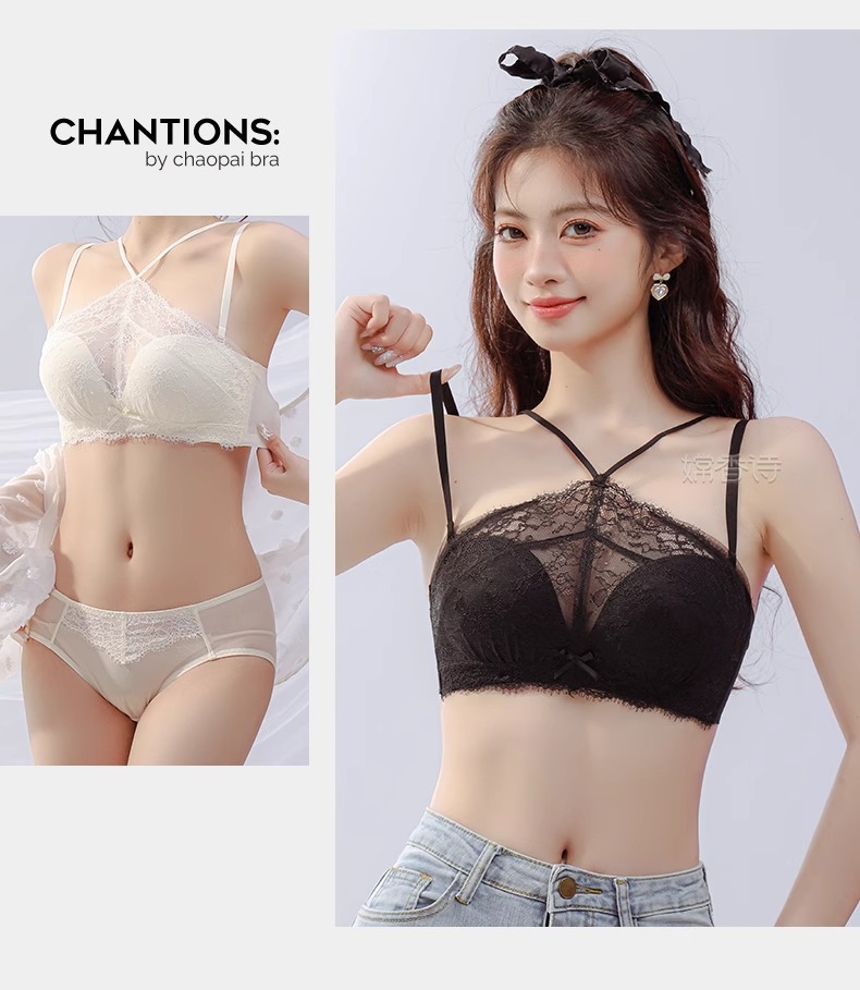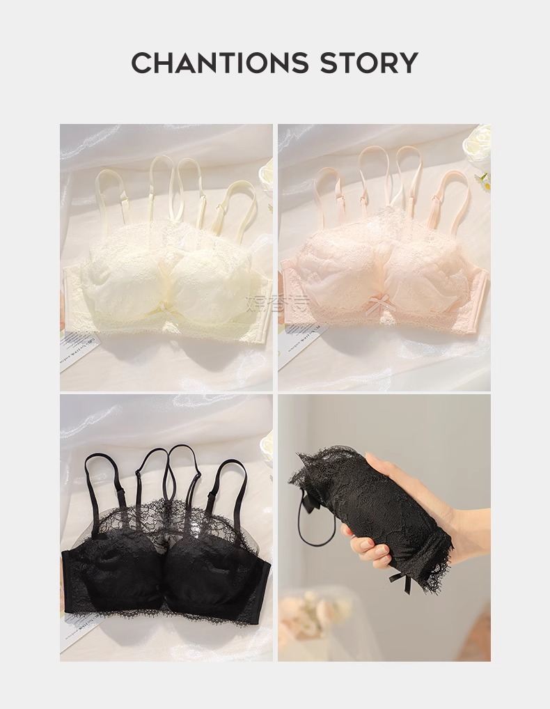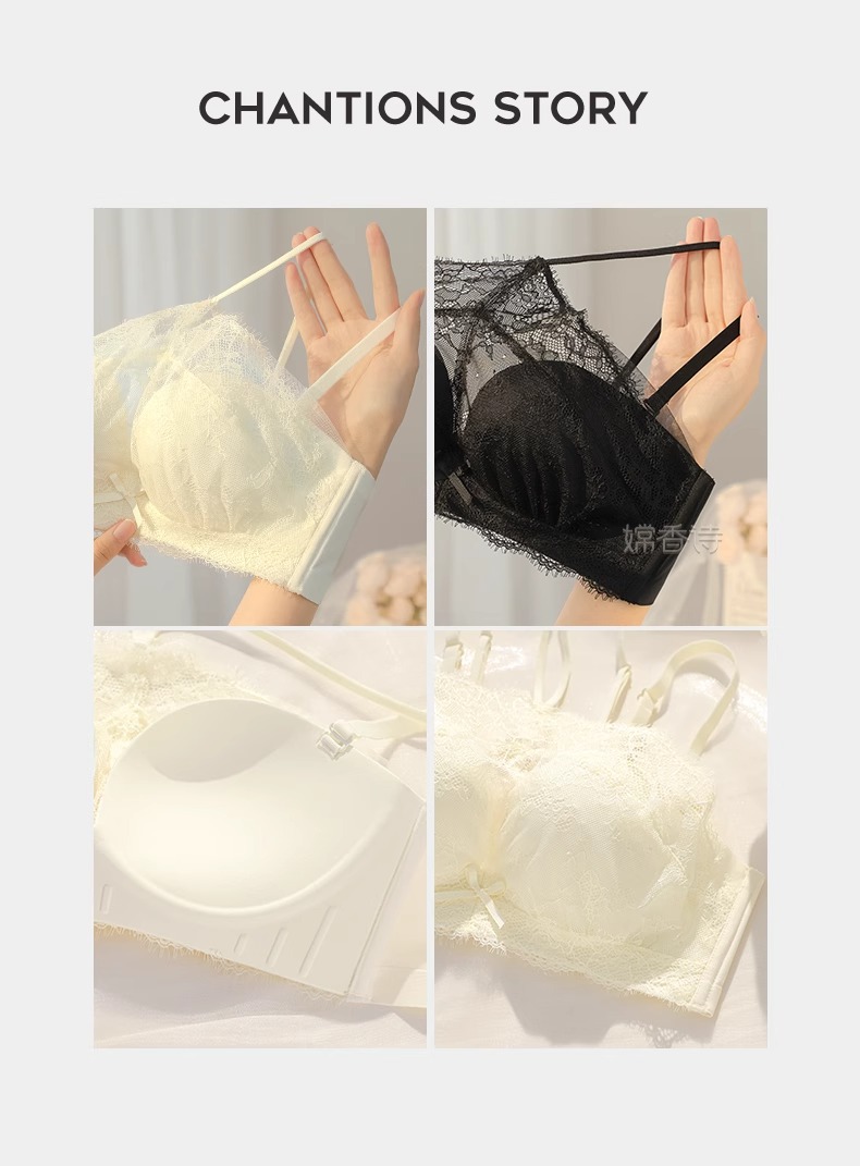 挂脖抹胸式无肩带内衣女 学生内衣小红书推荐爆款 聚拢防滑小胸显大性感蕾丝防走光文胸罩夏