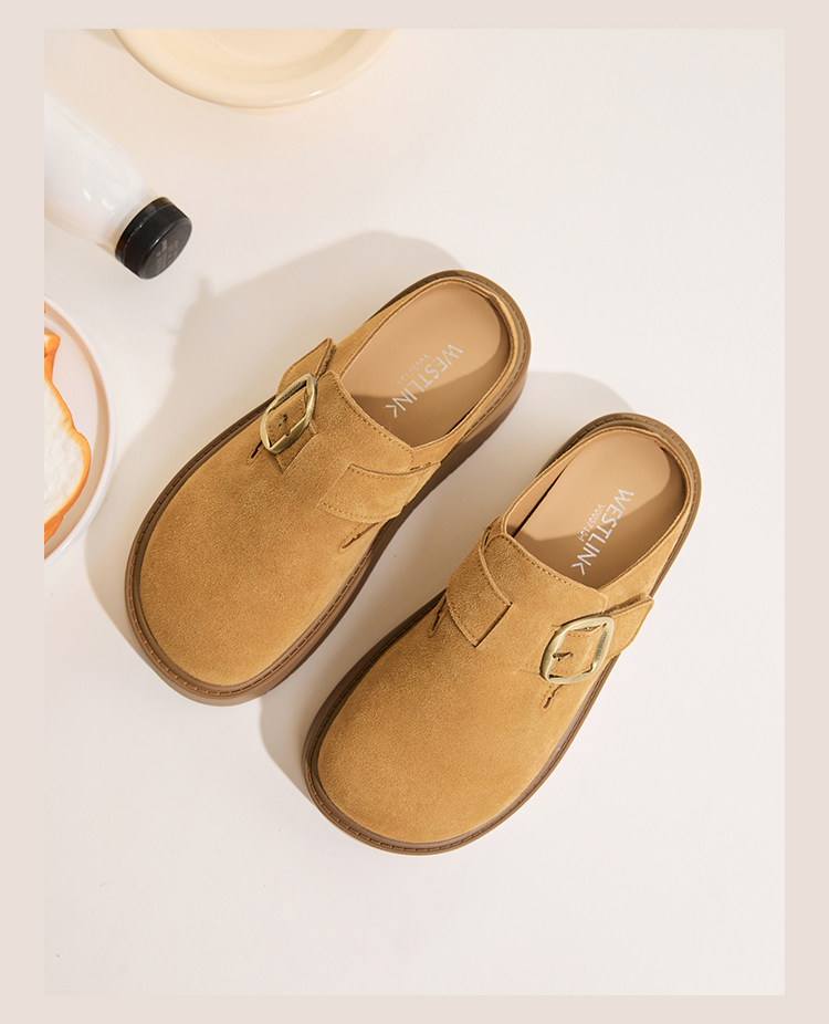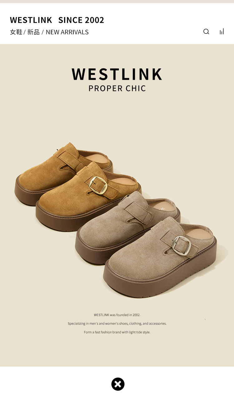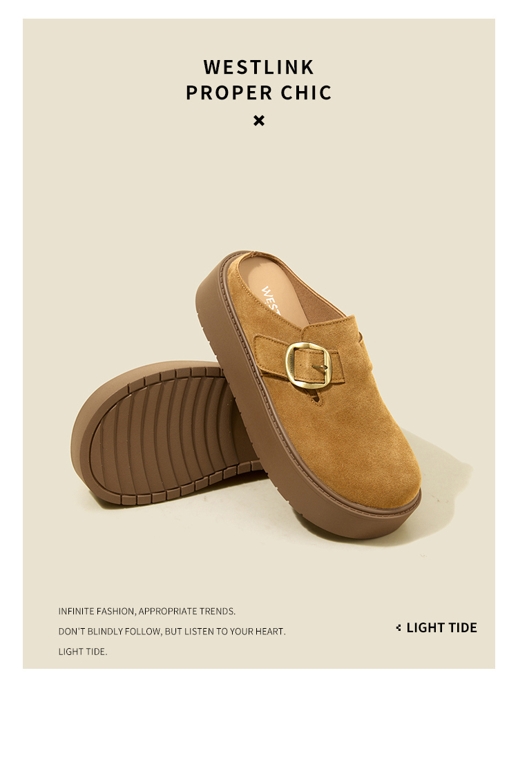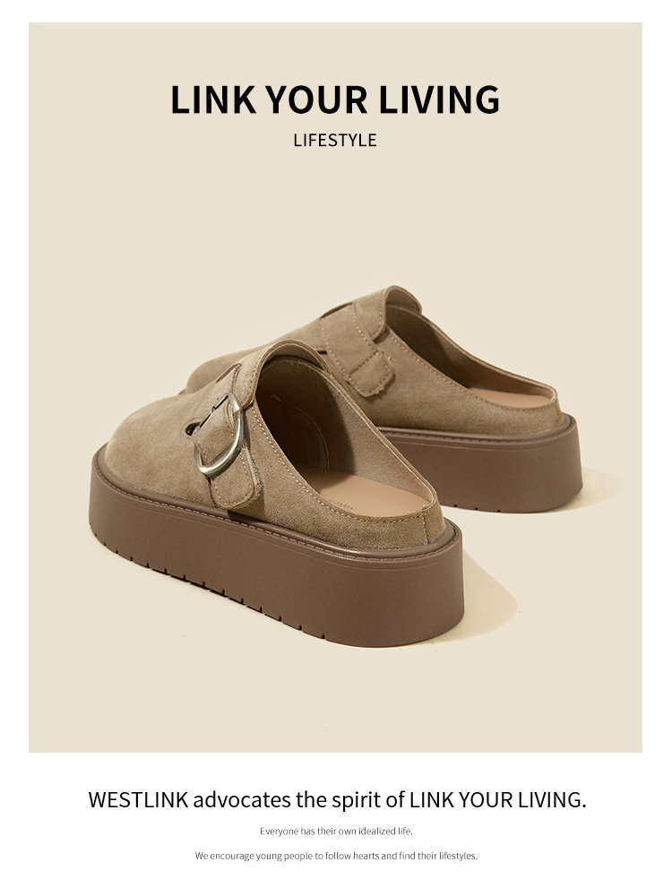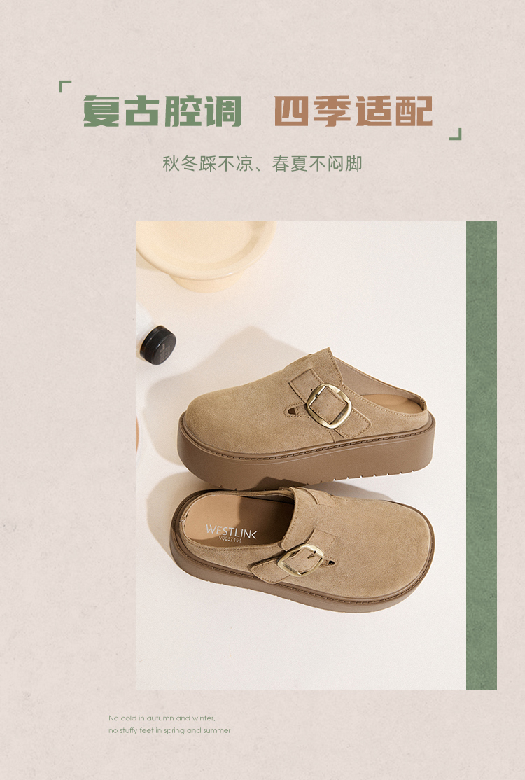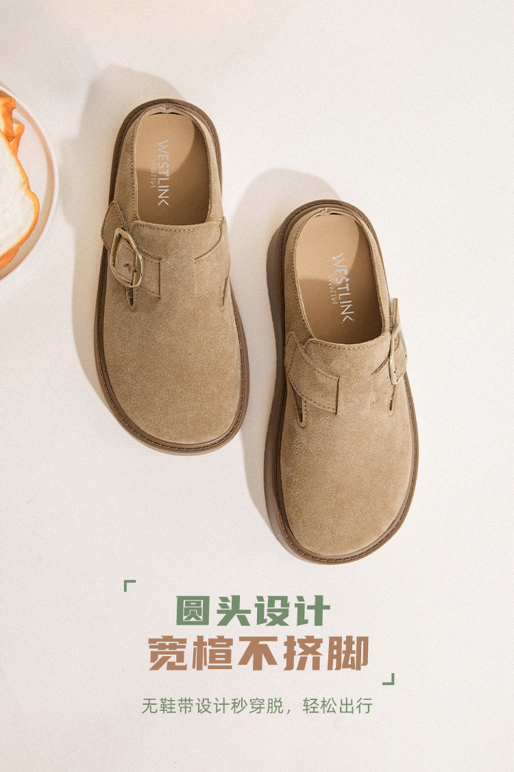【限时秒杀】西遇包头勃肯鞋半拖女新款秋季一脚蹬圆头松糕厚底鞋外穿拖鞋V0057154