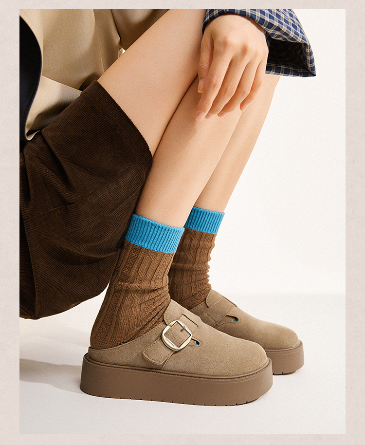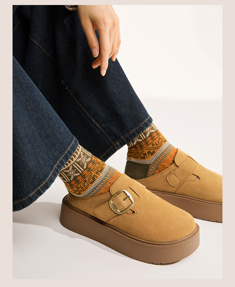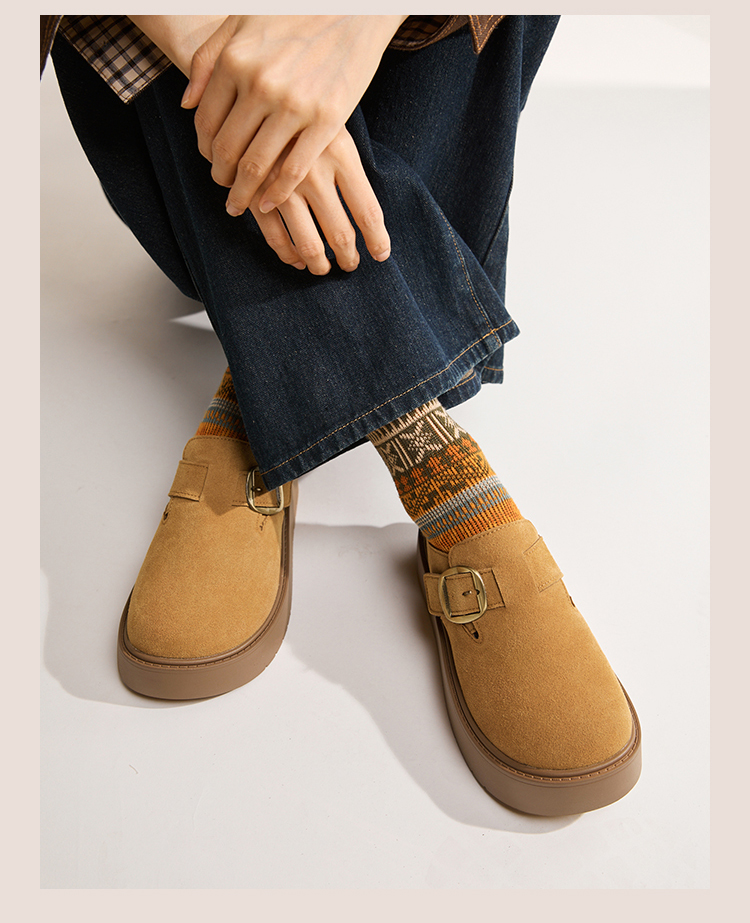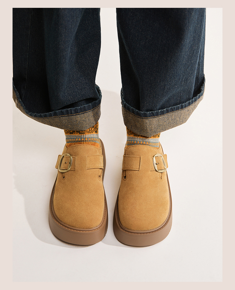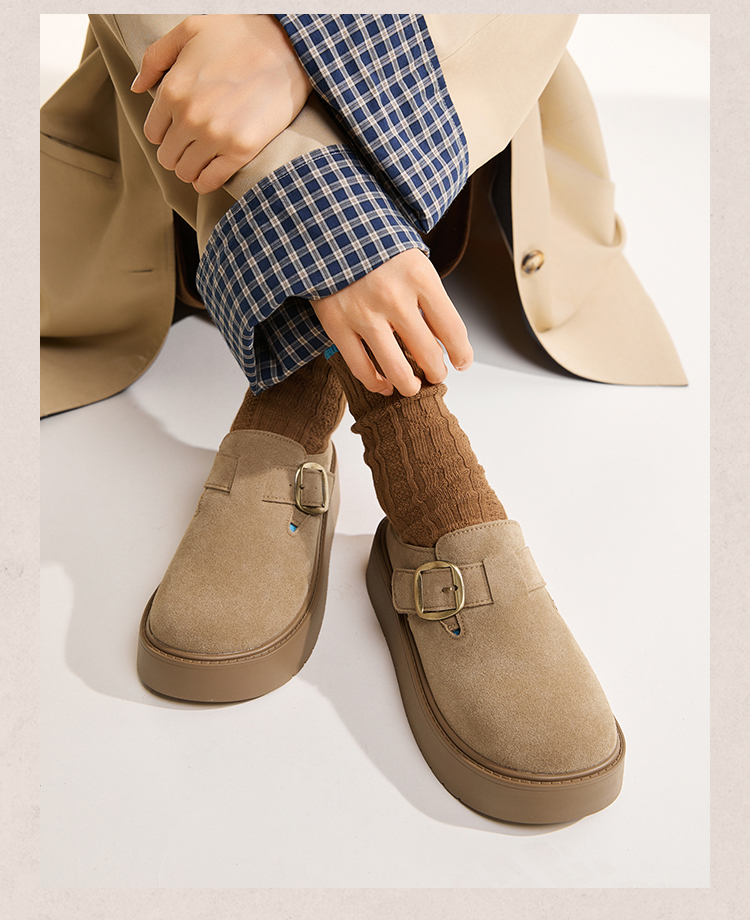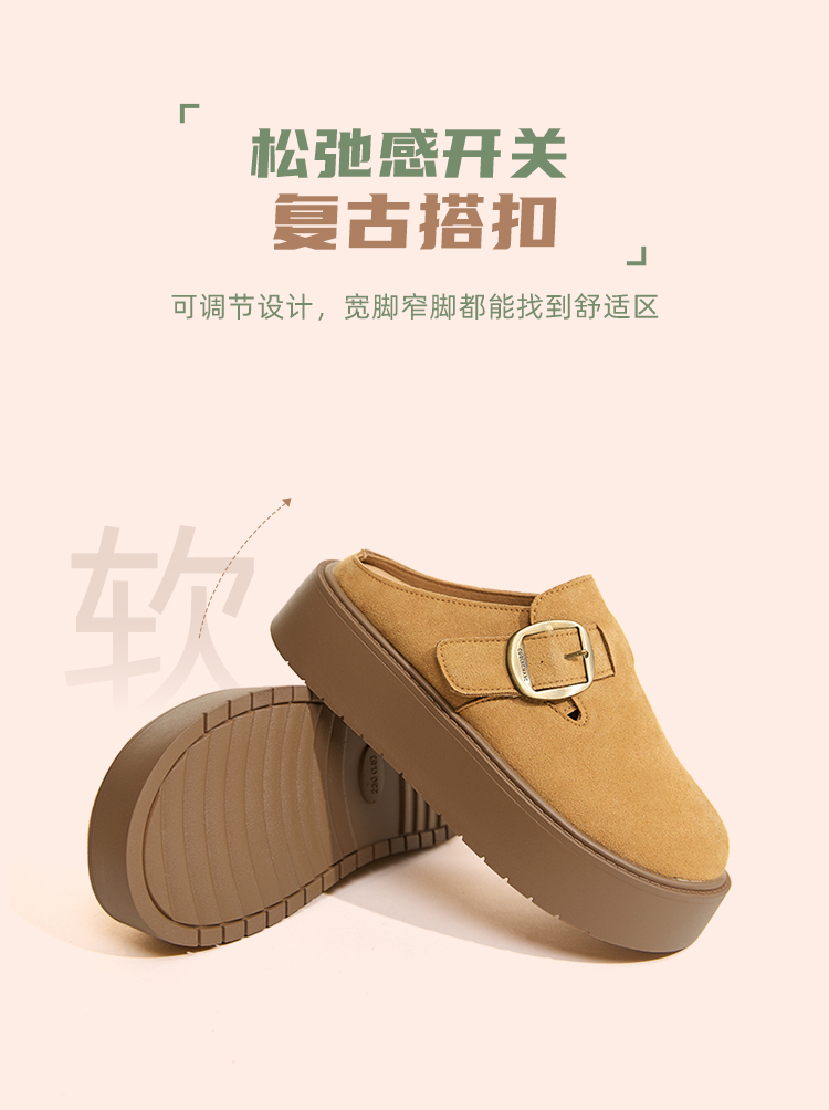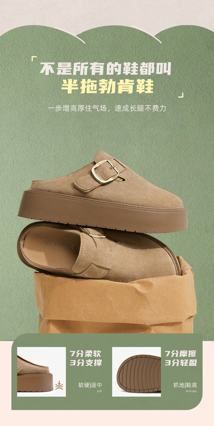 【限时秒杀】西遇包头勃肯鞋半拖女新款秋季一脚蹬圆头松糕厚底鞋外穿拖鞋V0057154
